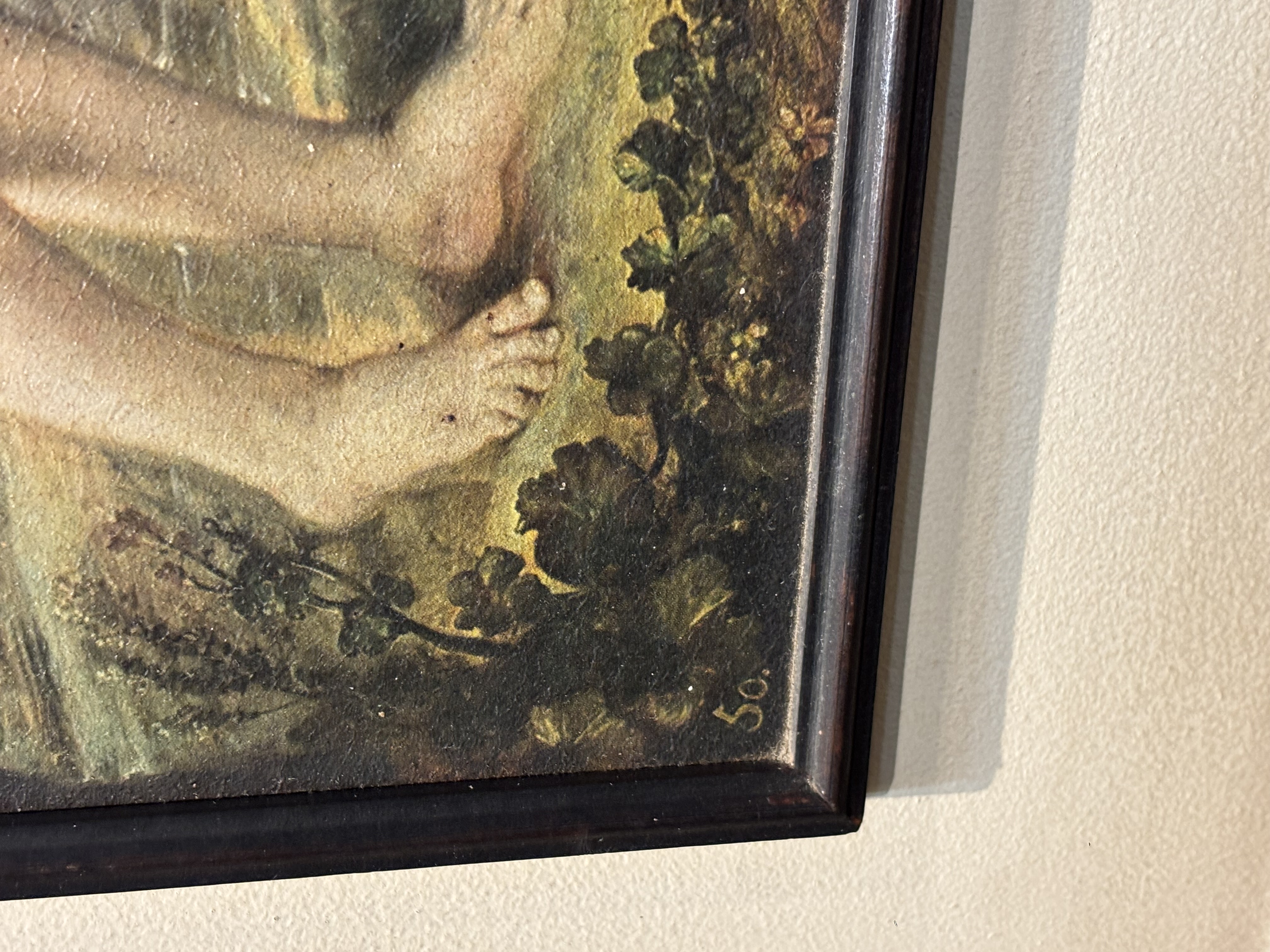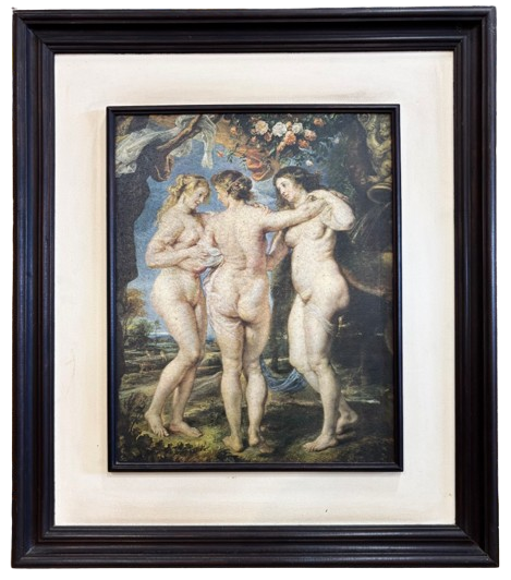 Antiga impressão com moldura de madeira.“As Três Graças”