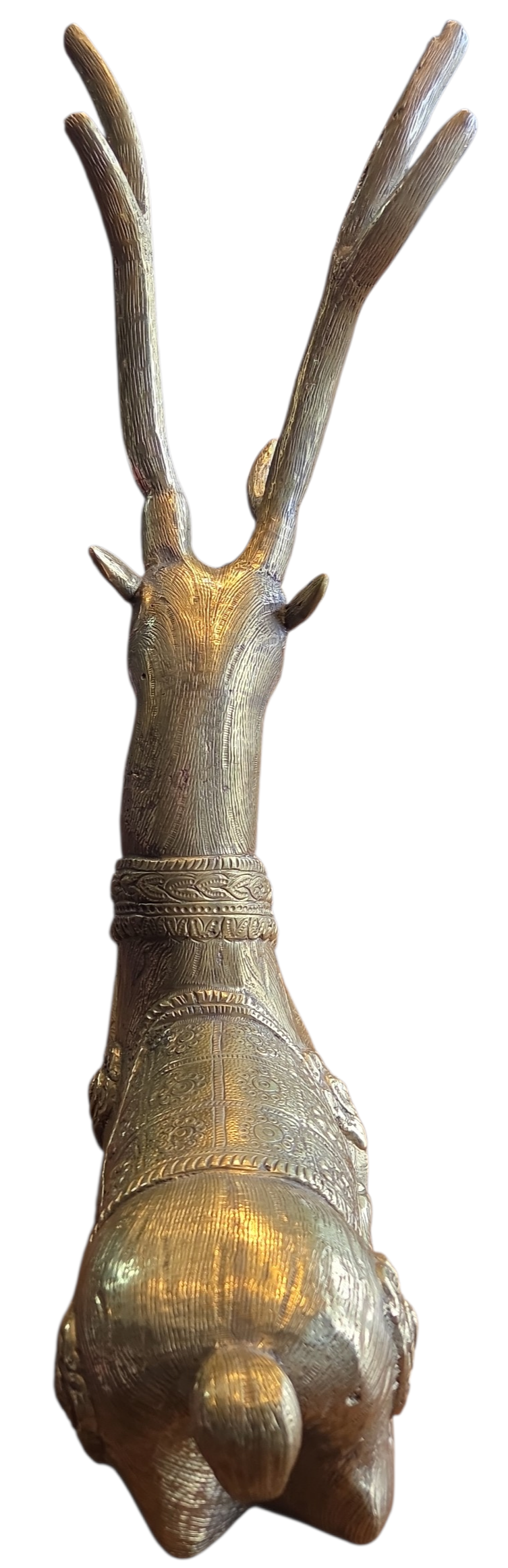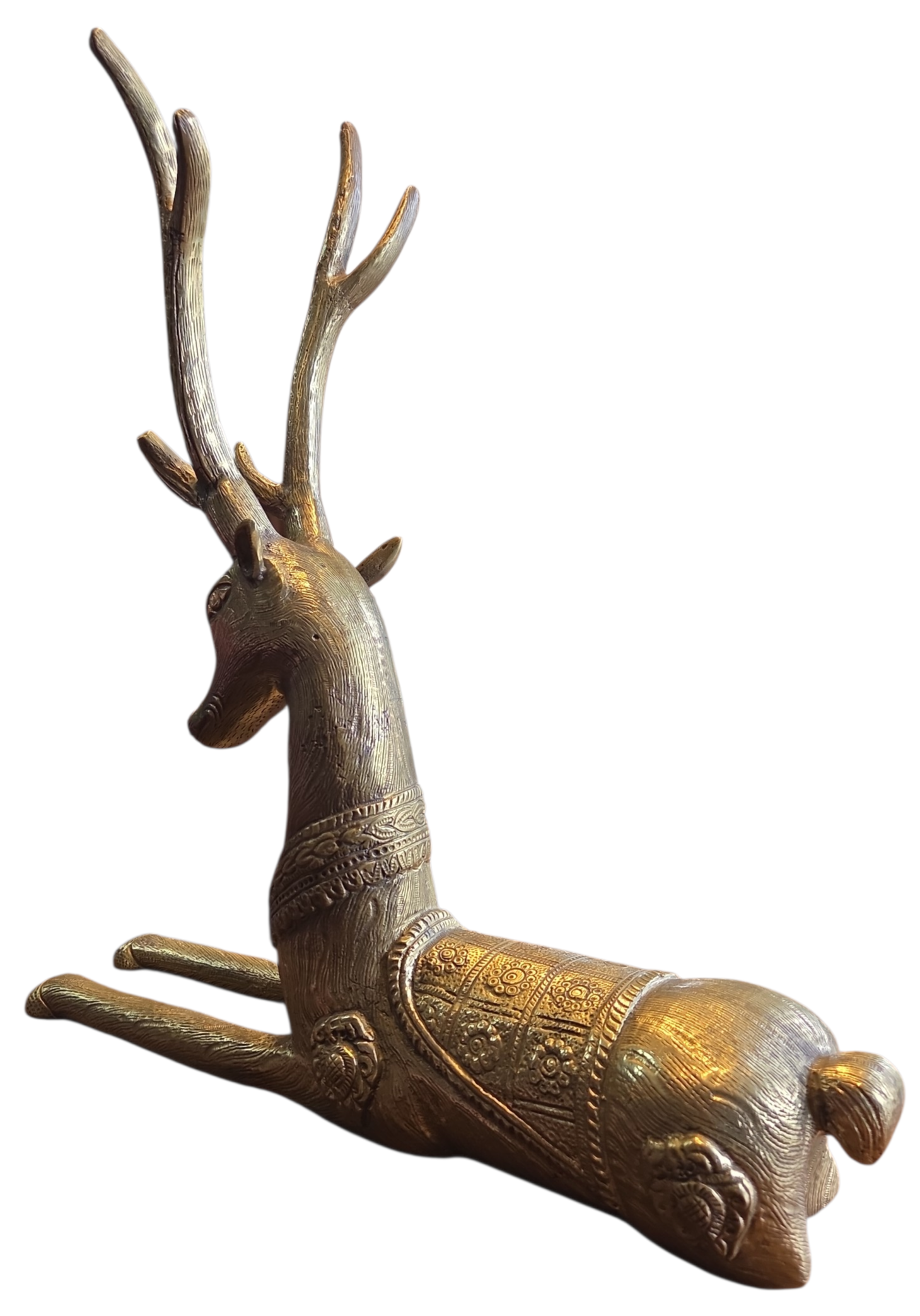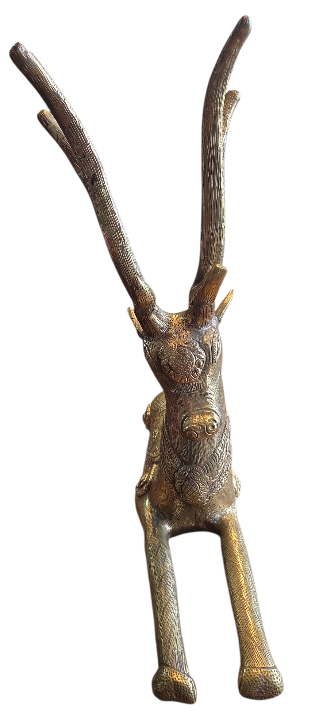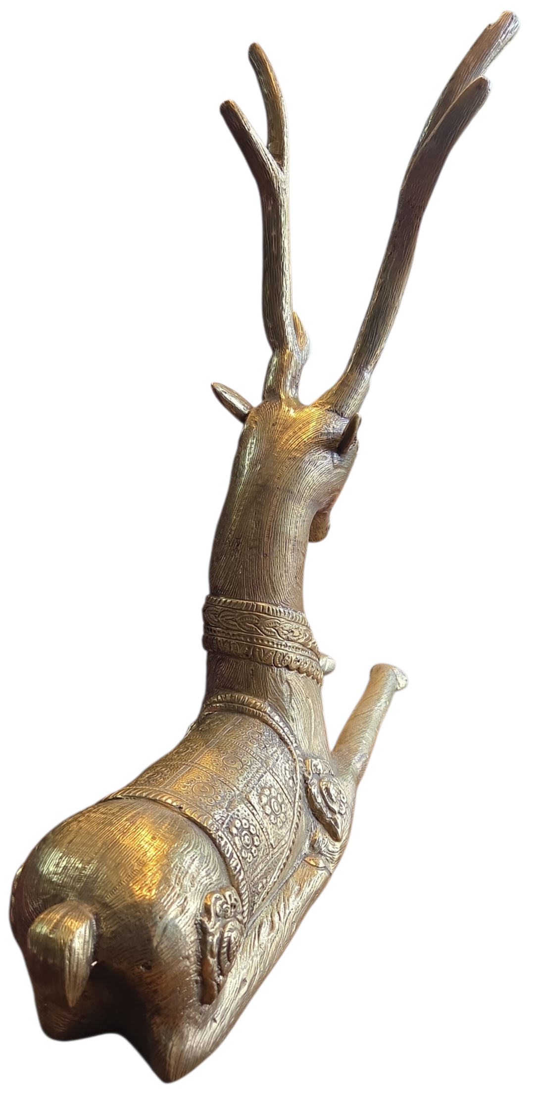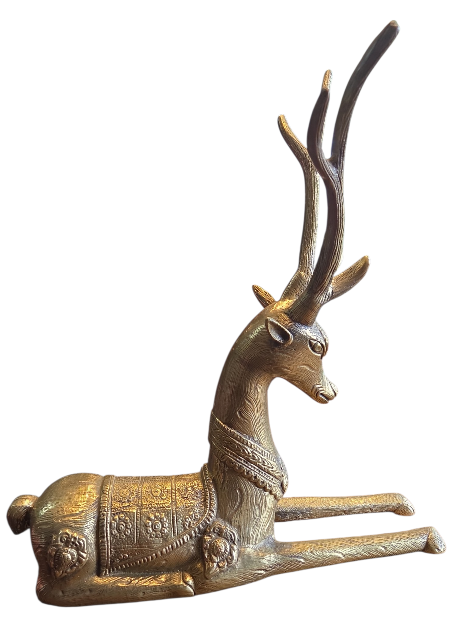 Esta escultura captura a essência da vida selvagem com um realismo impressionante. Fundida em bronze de alta qualidade, a peça apresenta detalhes minuciosos na textura da pelagem e na estrutura das galhadas. O acabamento em pátina escura confere uma profundidade atemporal, tornando-a uma peça de destaque para escritórios, bibliotecas ou salas de estar refinadas. Uma celebração da força e da elegância da natureza.