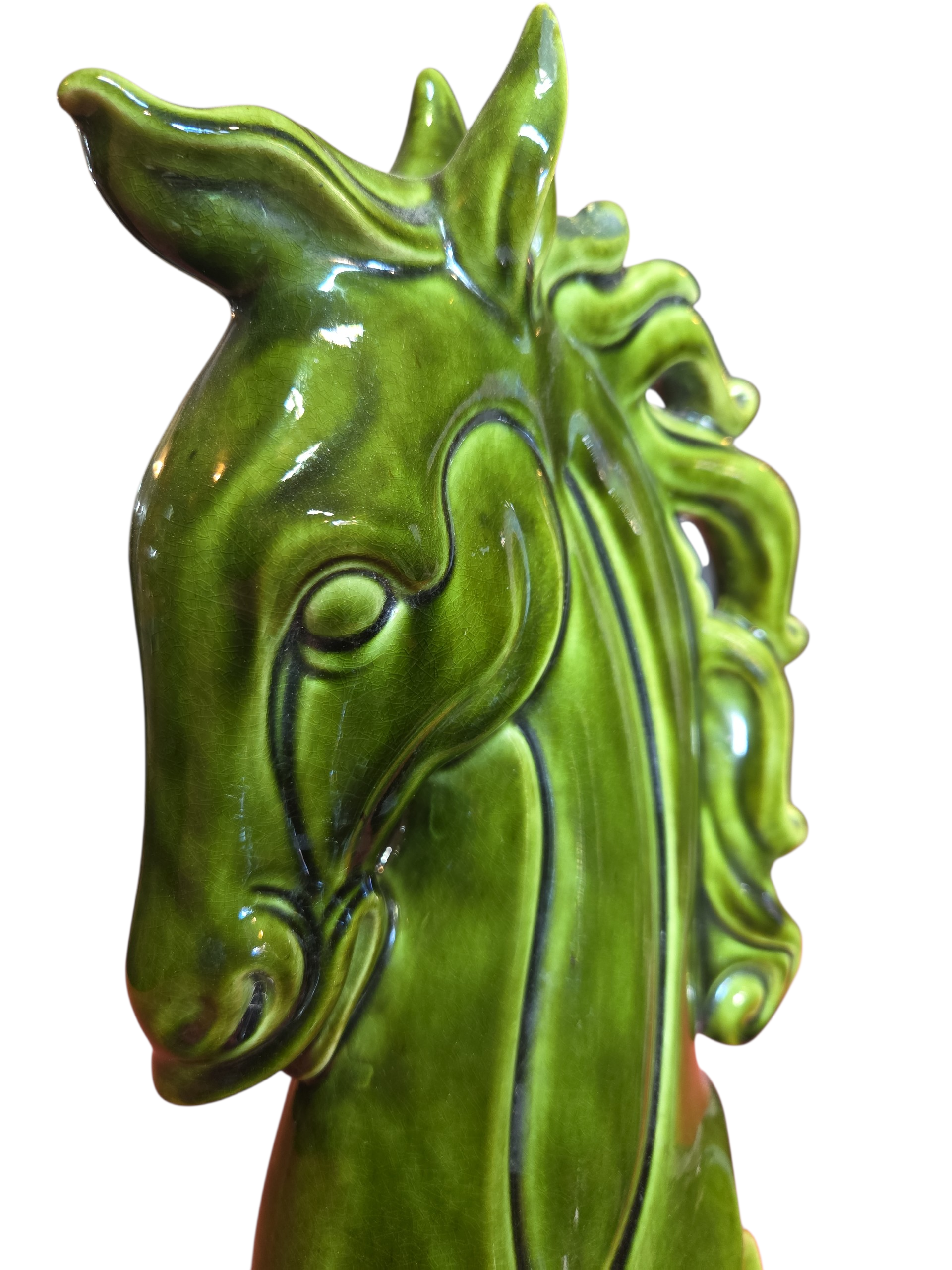 Uma interpretação moderna que explora o contraste entre a força do animal e a fragilidade da cerâmica fina. Esta escultura foca na musculatura tensa e na postura vigorosa do cavalo, utilizando o acabamento liso da porcelana para criar uma silhueta quase líquida. Sem excesso de ornamentos, a peça aposta no design orgânico e na perfeição da forma. Ideal para interiores contemporâneos que buscam um ponto focal que transmita energia e, ao mesmo tempo, serenidade.