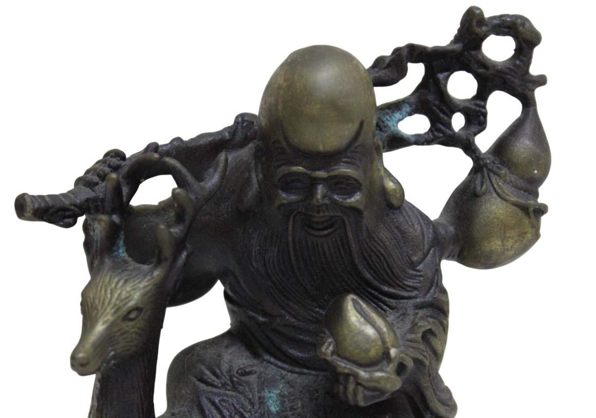 Escultura em bronze representando SHOU XING OU SHOU LAU, o deus taoísta chinês da longevidade.
