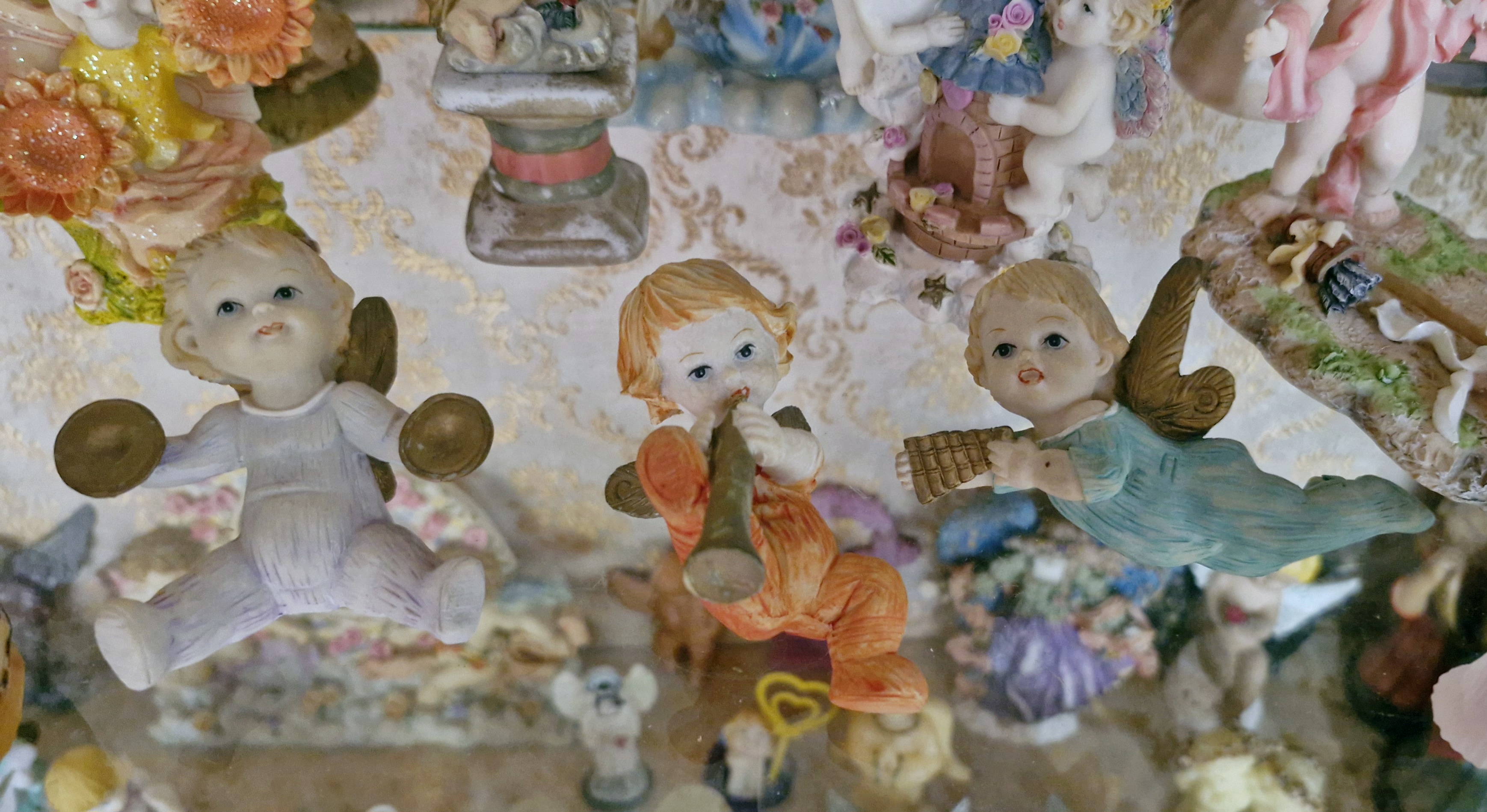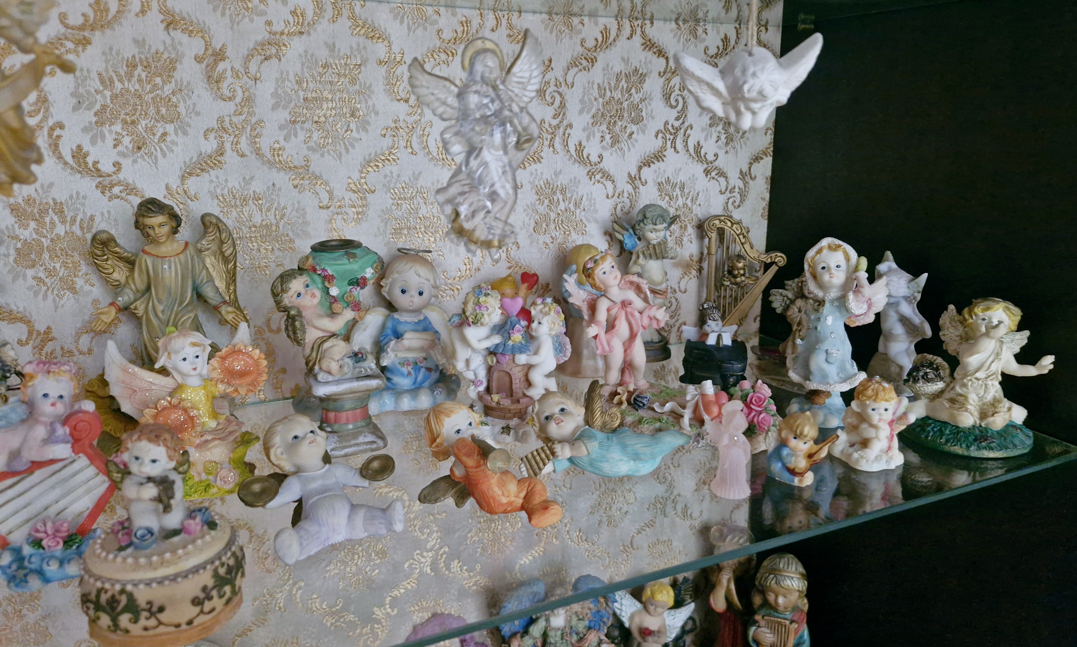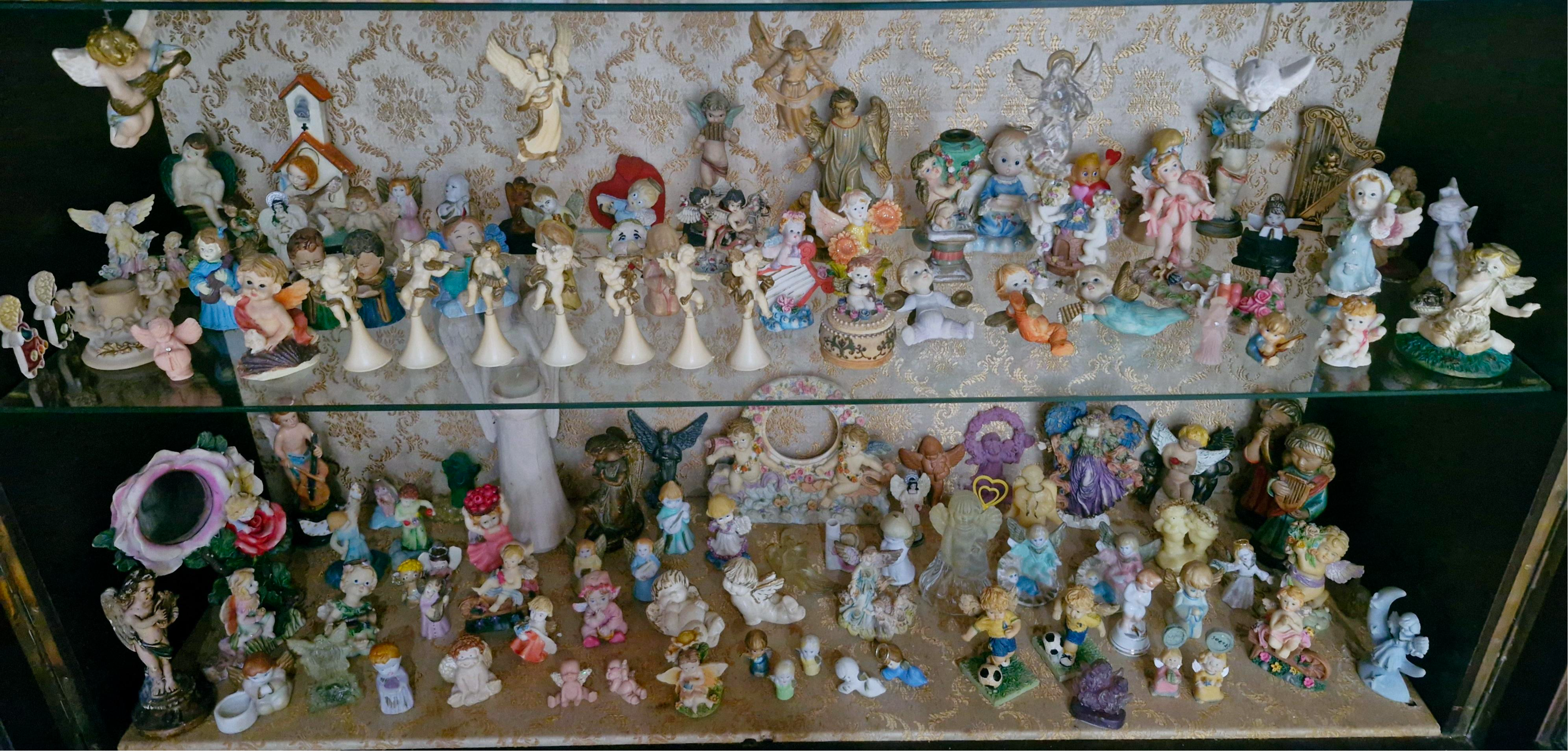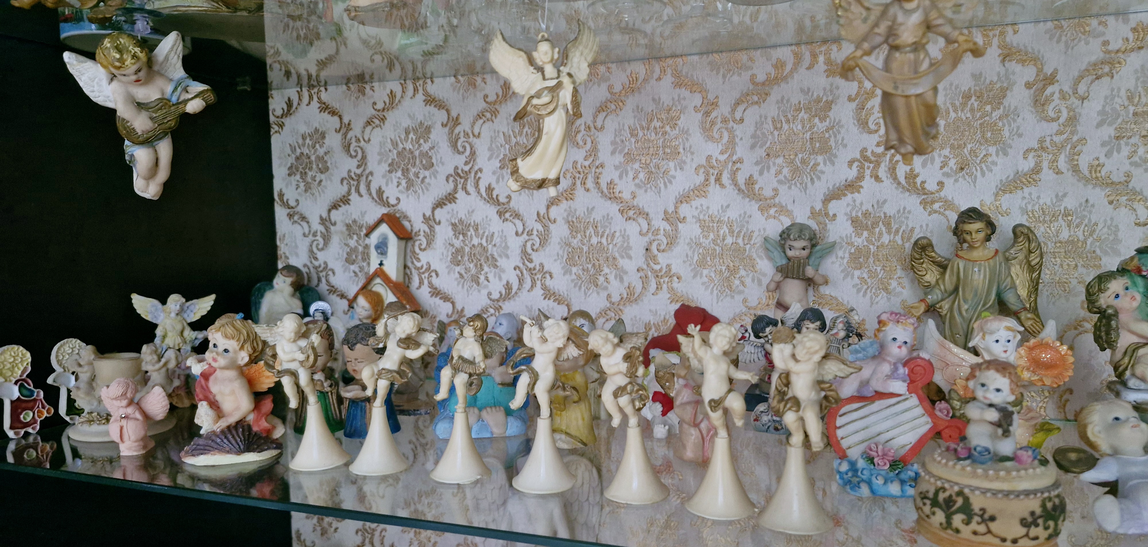 Uma coleção de anjinhos espetacular, única no Brasil! São cerca de 130 peças dos mais diversos materiais e originárias de vários países do mundo, algumas delas com funções (castiçais, porta-fotos, porta-caneta e até apontadores) muitos oriundos de fábricas não mais existentes, de incrível delicadeza. Uma coleção singular!