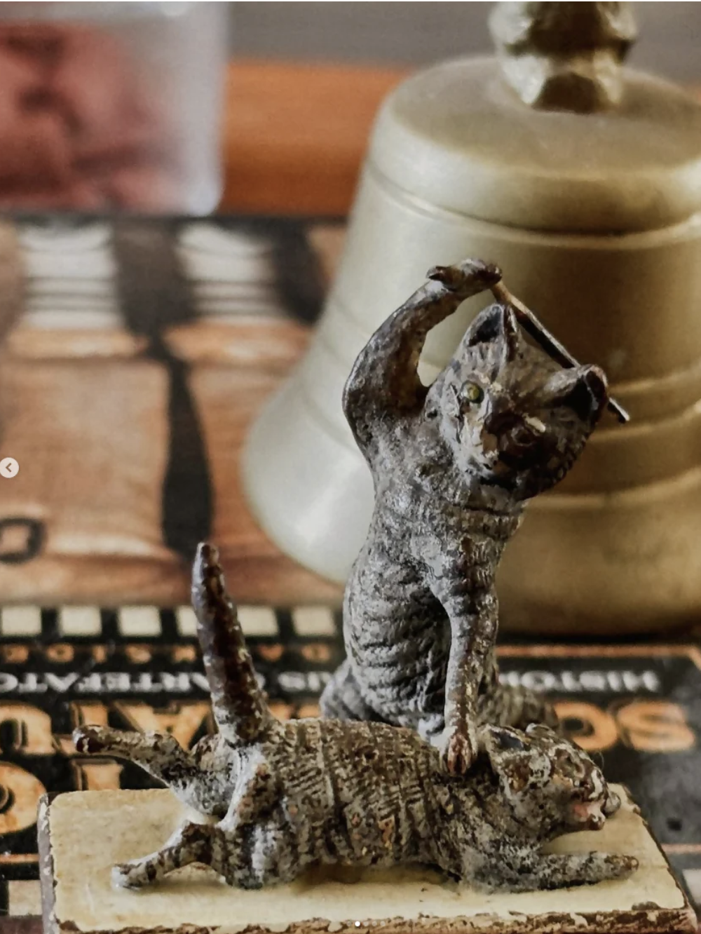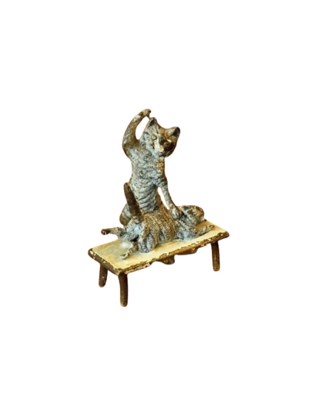 Peculiar e centenária escultura em bronze do austríaco Franz Bergmann, 6 cm.