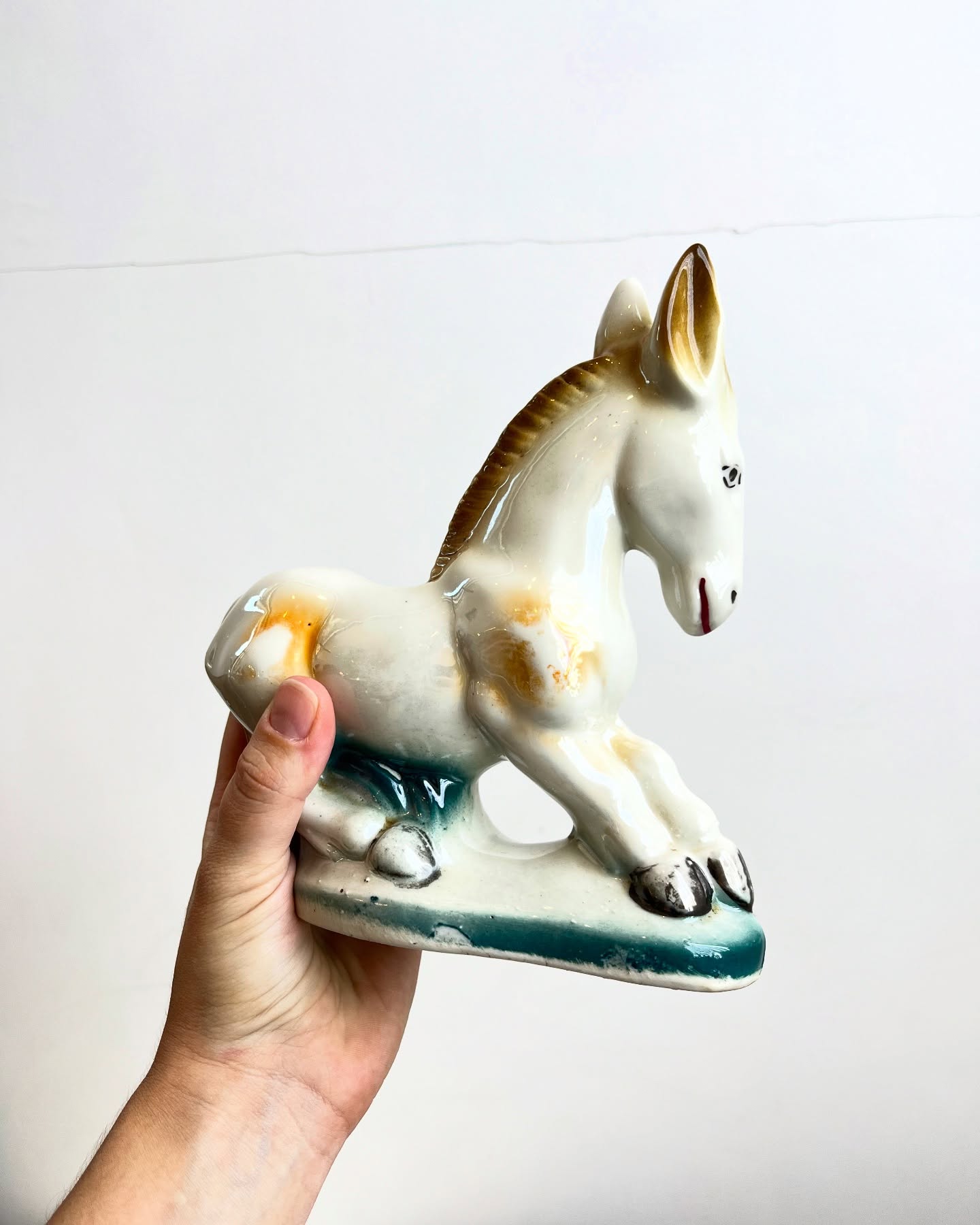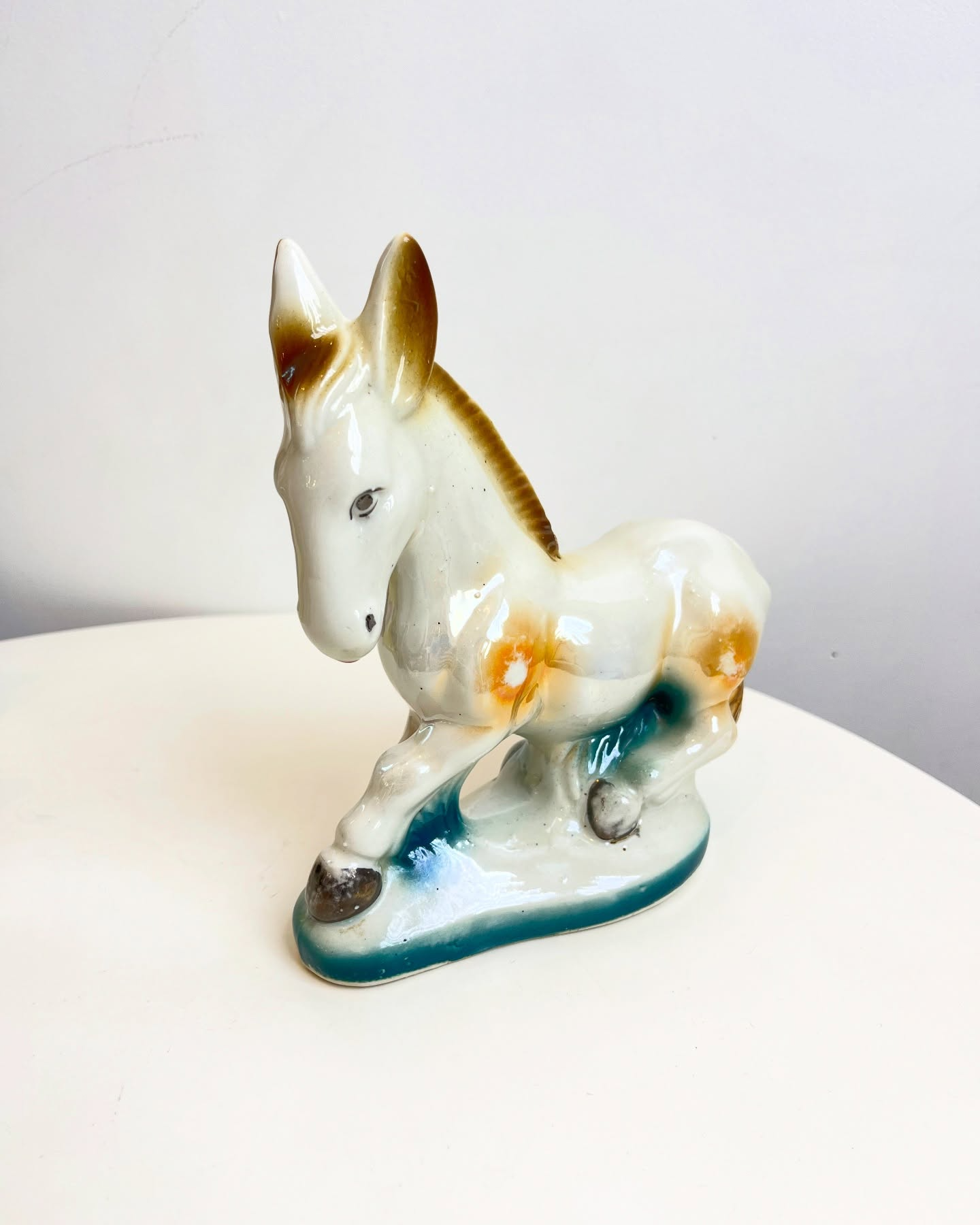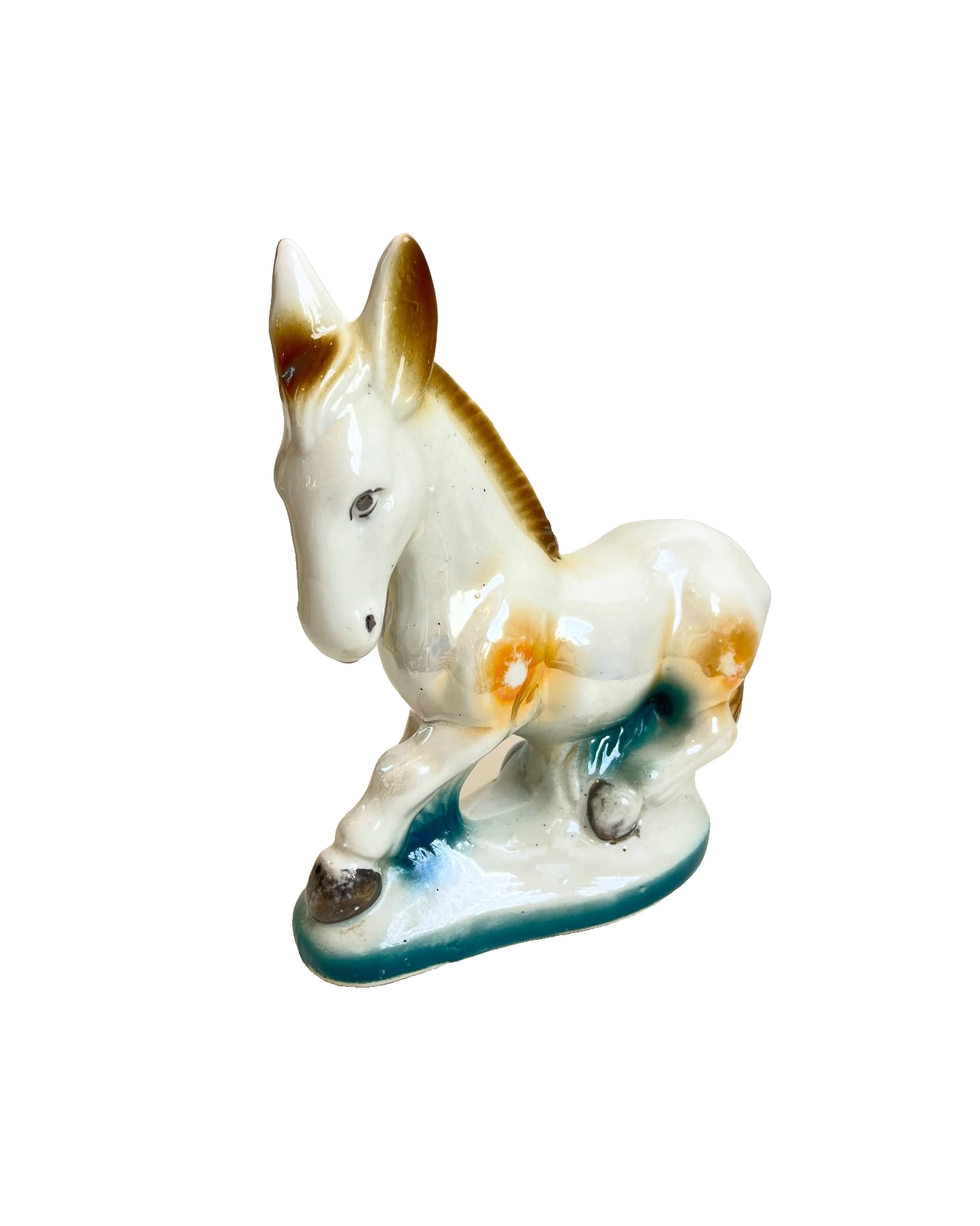 Burrinho em porcelana pintada. Está com alguns desgastes na pintura como mostrado nas fotos.