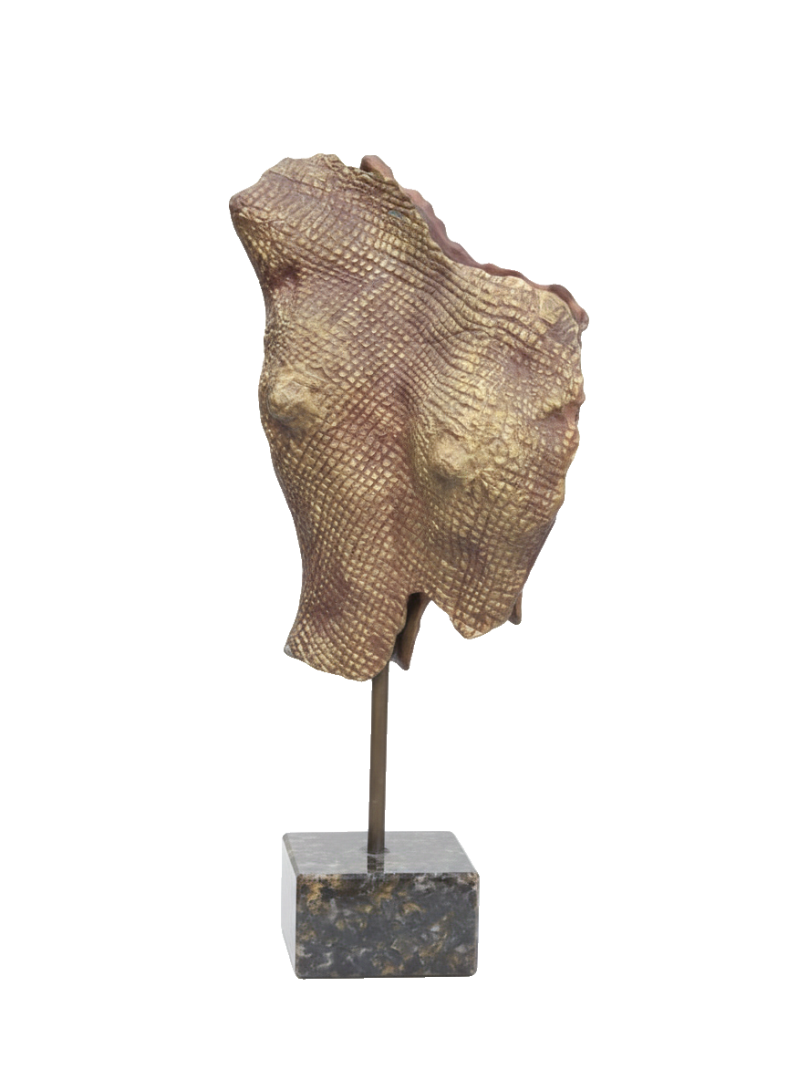 Torso feminino confeccionado em bronze. Obra assinada por Lirdi M. Jorge. Peça de caráter artístico e decorativo.