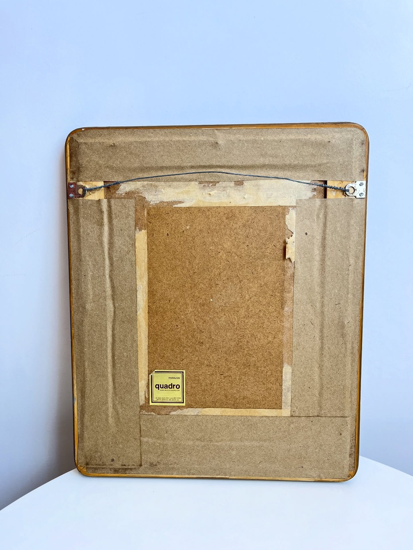 Impressão emoldurada em madeira e vidro. Marcas do tempo e uso na moldura, mas nada que um leve restauro não resolva.