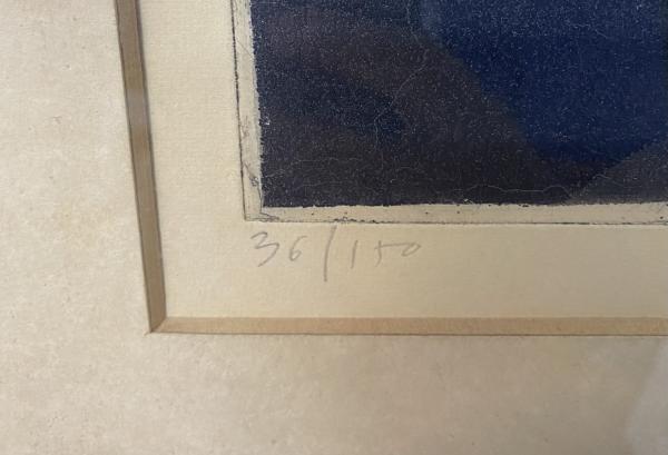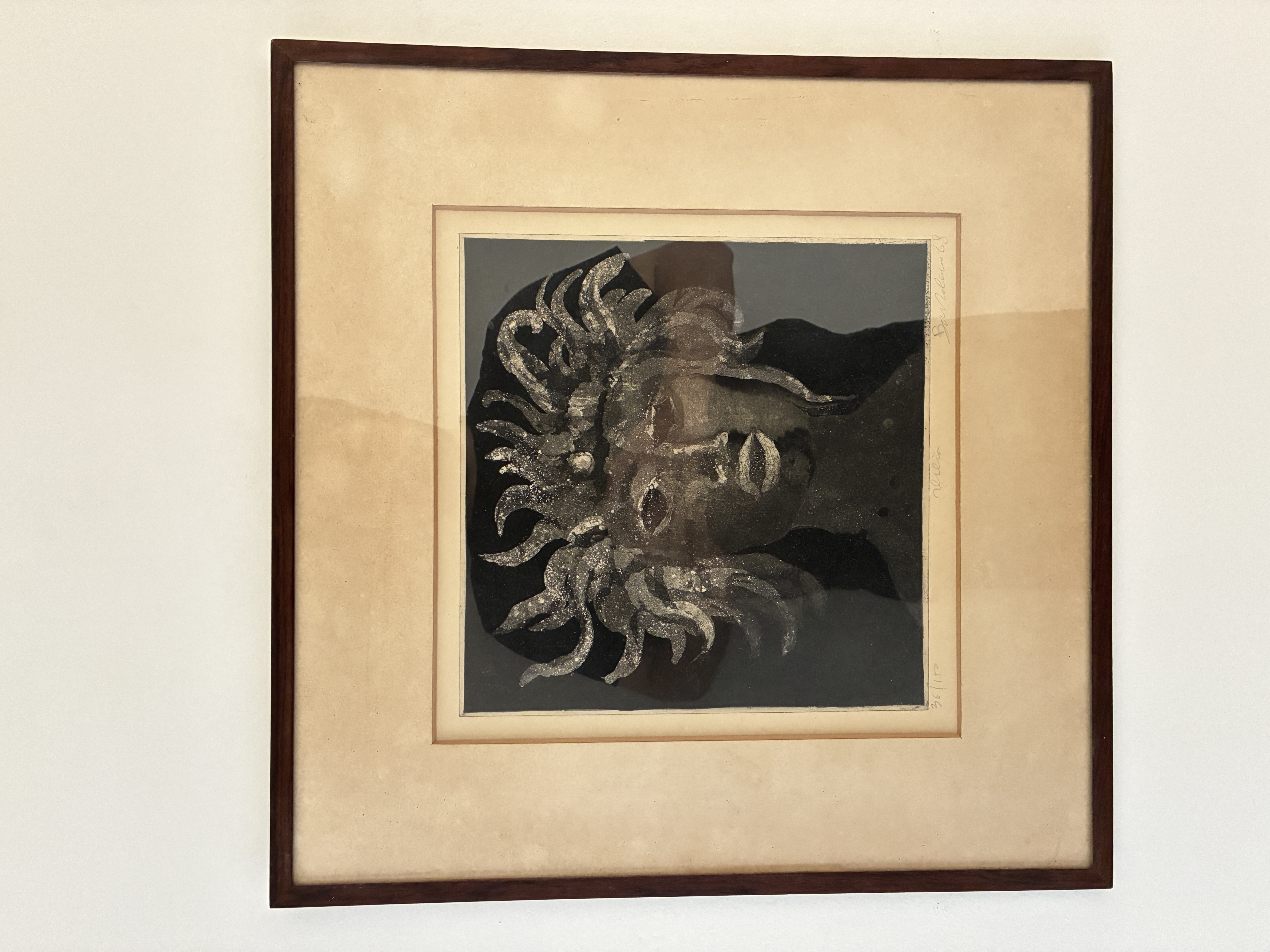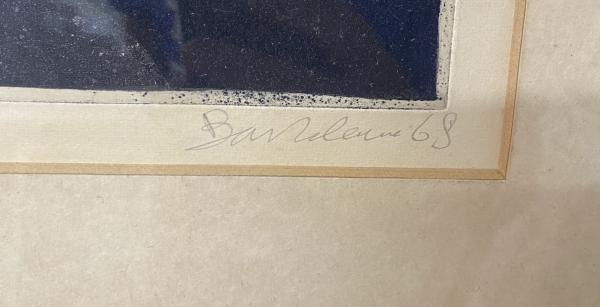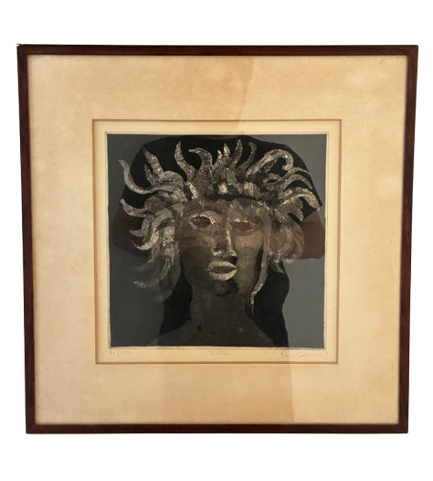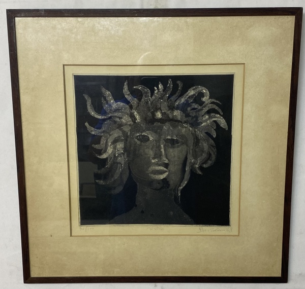 Gravura intitulada "Sereia" do artista português Bartolomeu Cid dos Santos (1931-2008). Água forte sobre papel. Assinada e datada 1968. Moldura em jacarandá.