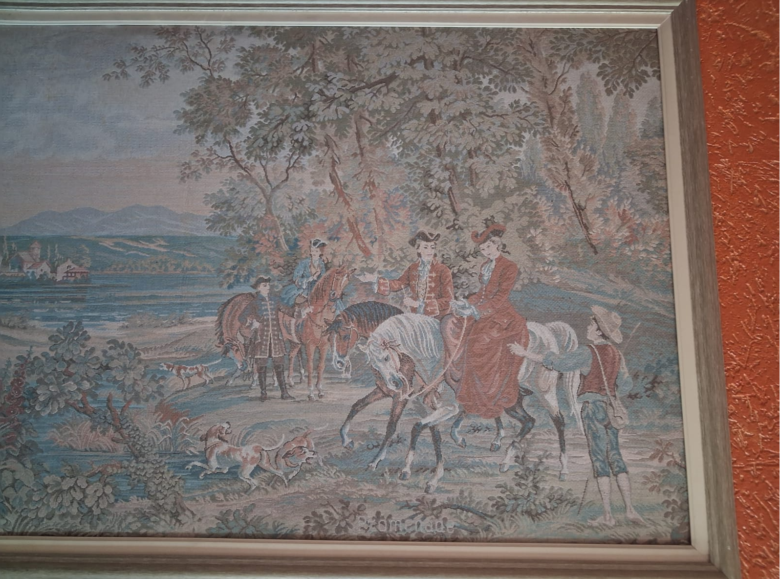 Obra retrata um cavaleiro napoleônico, montado em seu garanhão negro ao lado de uma dama, passeando por um vale bastante florido. O cenário ao redor é uma explosão de cores.