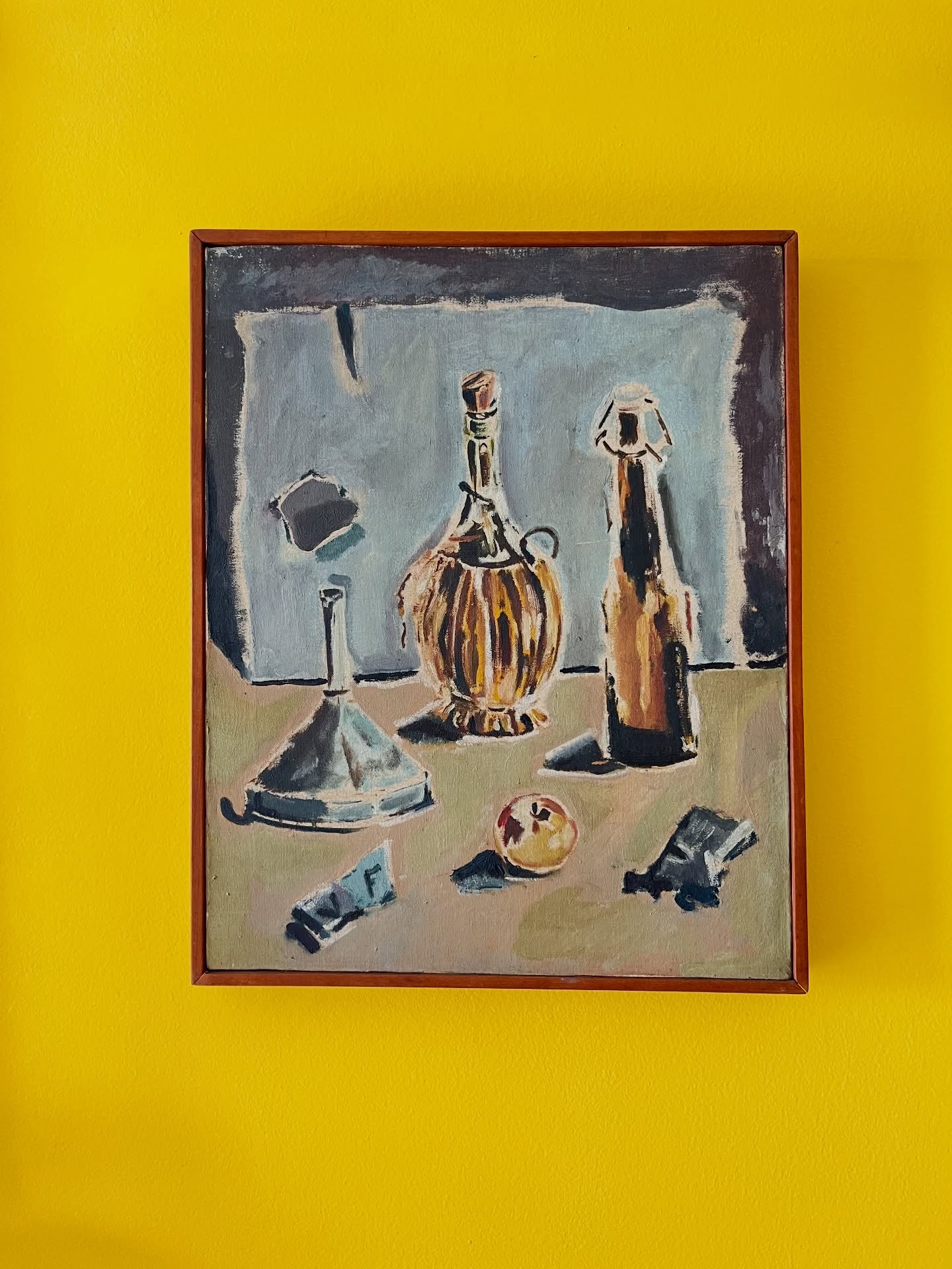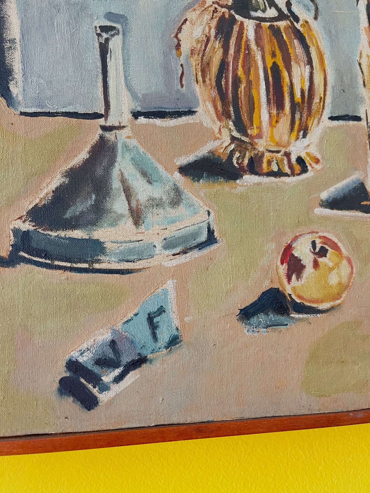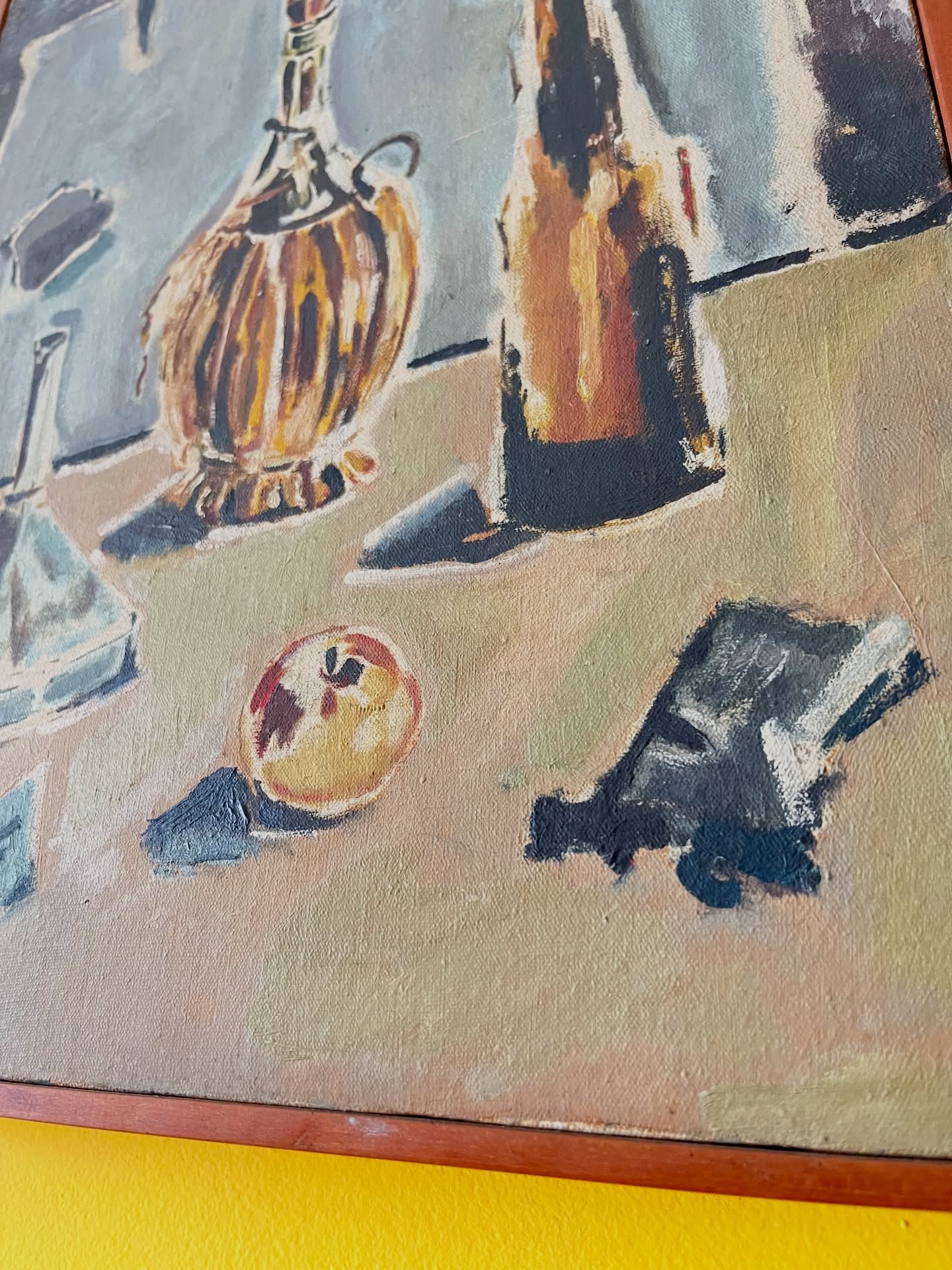 Óleo sobre tela emoldurado em madeira nobre. Leva marcas do tempo e uso.
