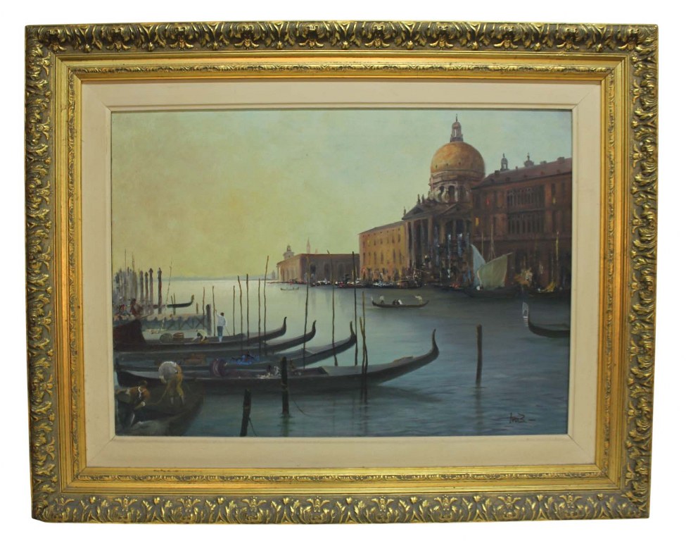 IVO BLASI (SP-SP, 1932 ) "CANAL GRANDE" VENEZA - Grande e magnífica pintura, finamente executada em técnica de óleo sobre tela, representando belíssima cena riquíssima em movimentos e tonalidades vibrantes.
