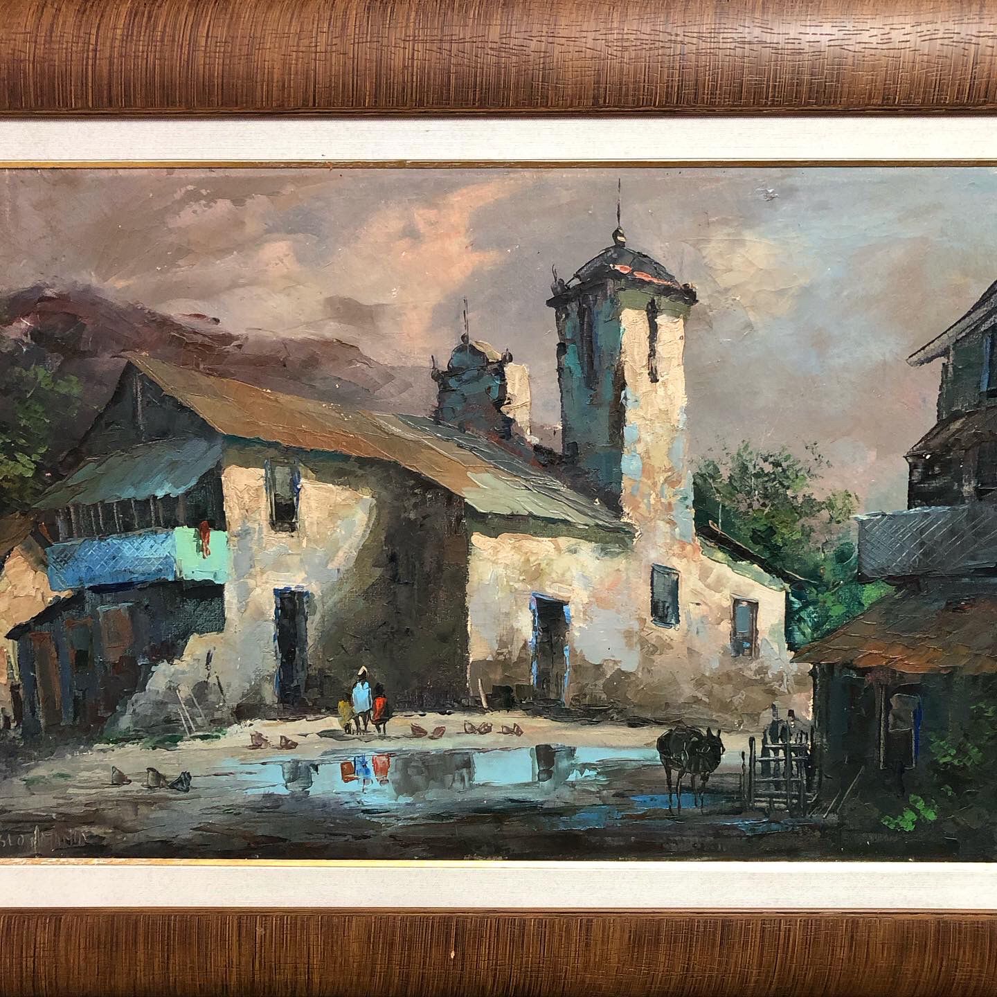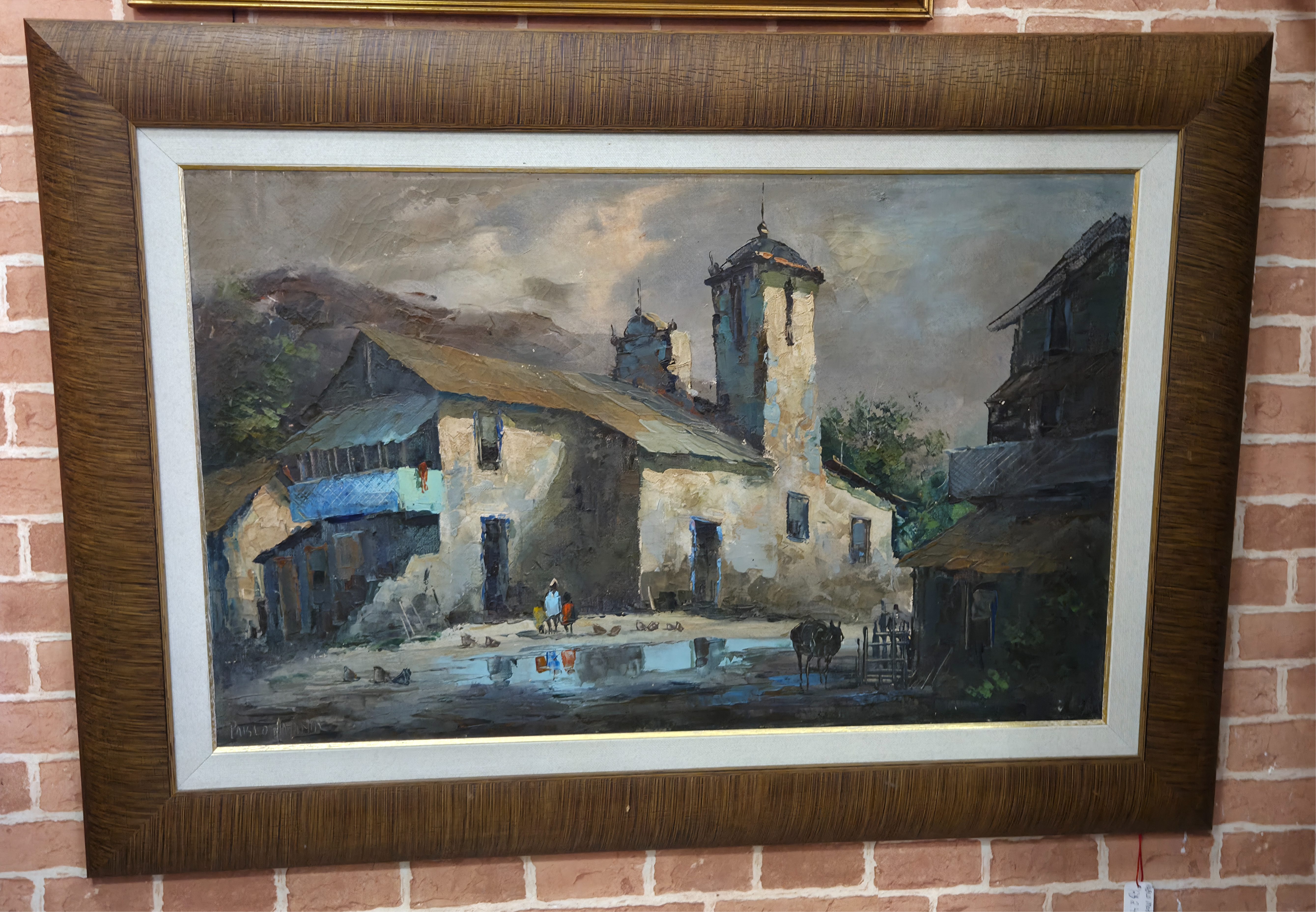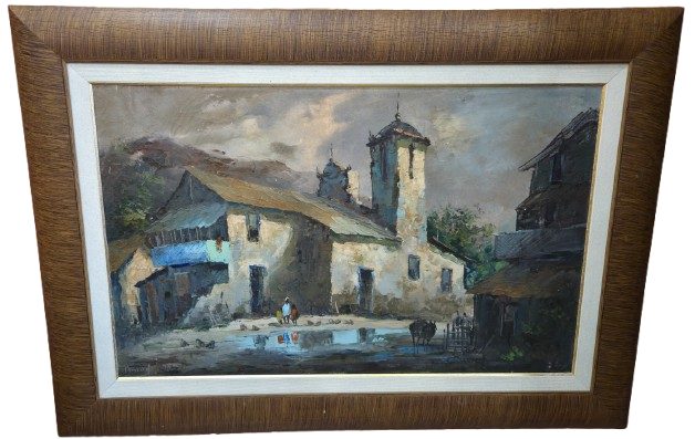 Grande artista argentino. Esta belíssima obra de Pablo Matania captura a essência da vida rural com uma sensibilidade única. Através de pinceladas expressivas e uma paleta de cores terrosas contrastadas com o azul sutil das janelas e do reflexo na água, o artista nos transporta para um cenário de paz e contemplação.