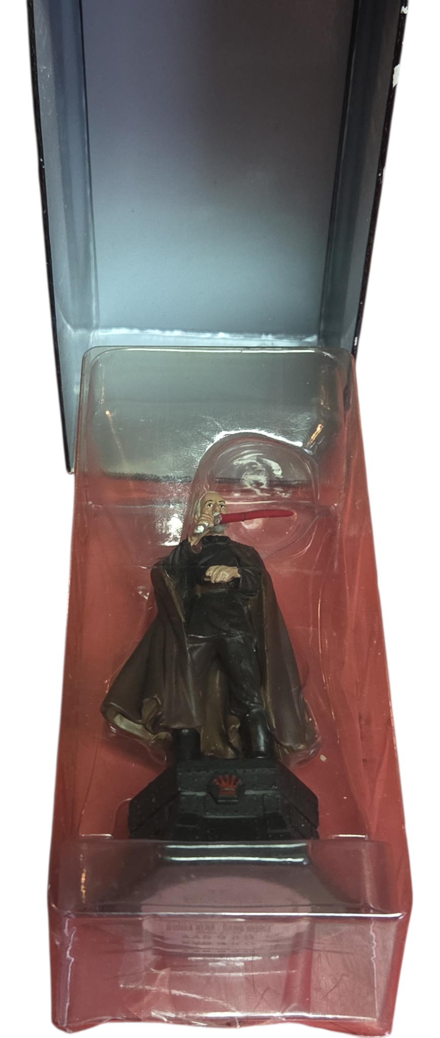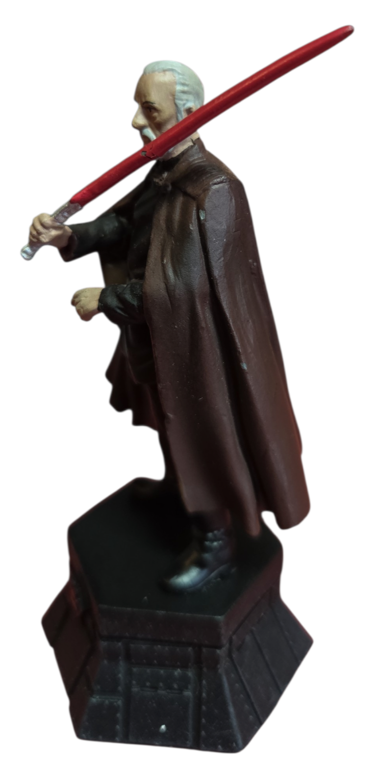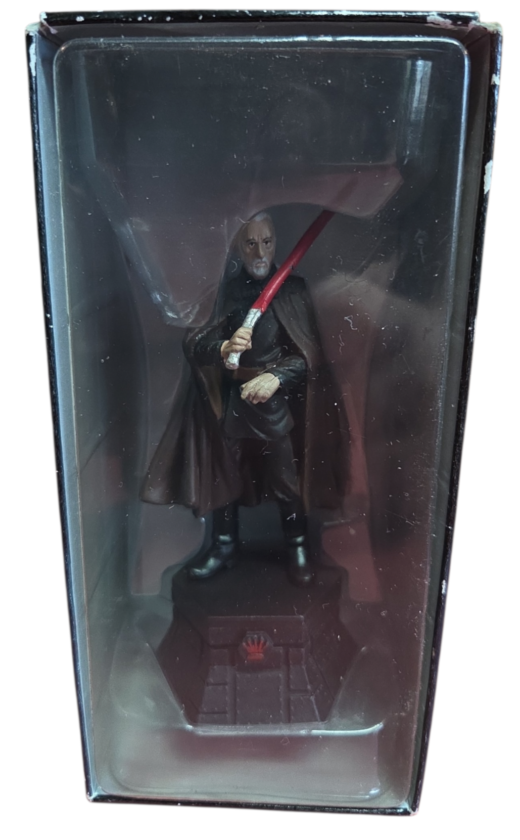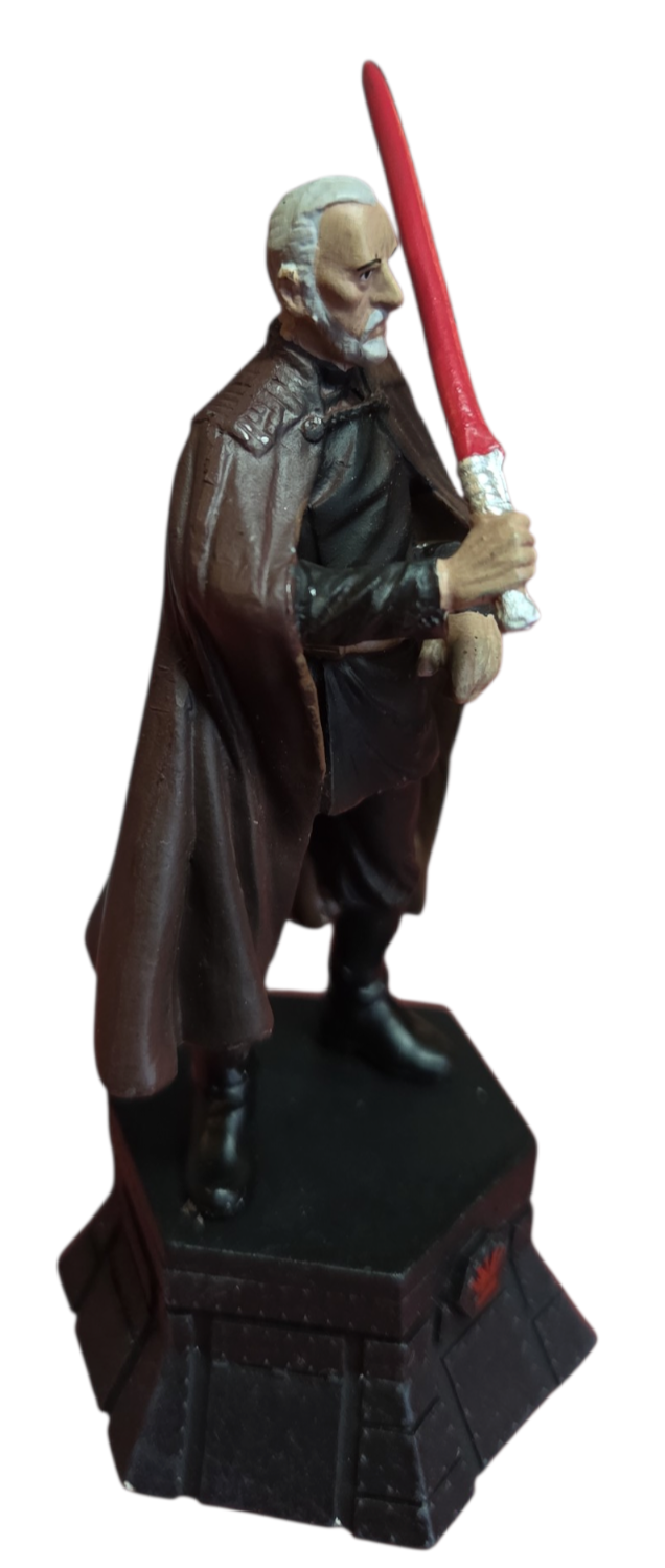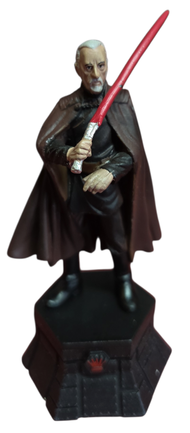 Domine o tabuleiro com a elegância e o poder do lado sombrio. Esta estátua detalhada do Conde Dookan (Darth Tyranus) faz parte da exclusiva coleção de xadrez de Star Wars da DeAgostini, ocupando a posição de maior autoridade: o Rei Preto (Black King).