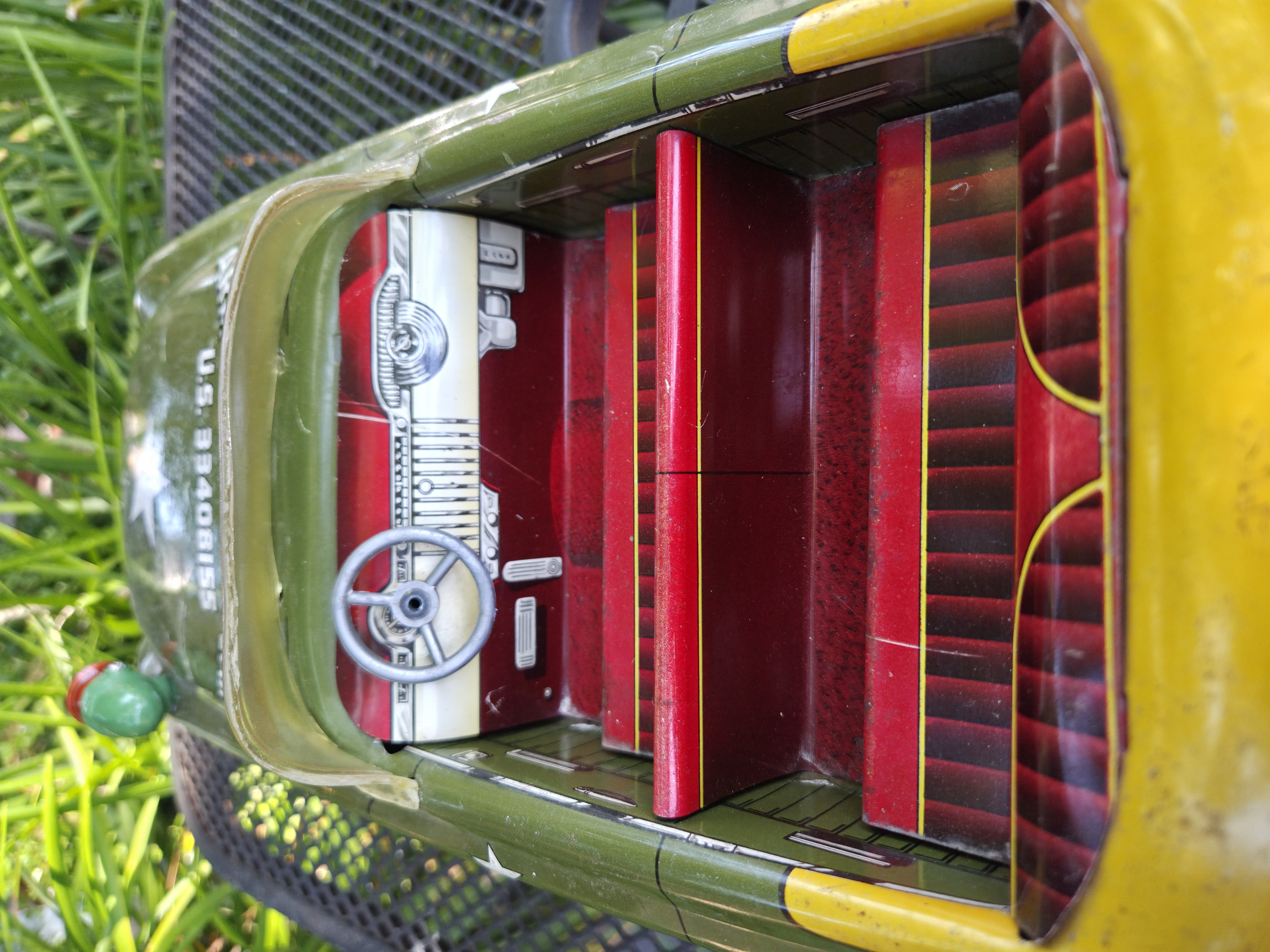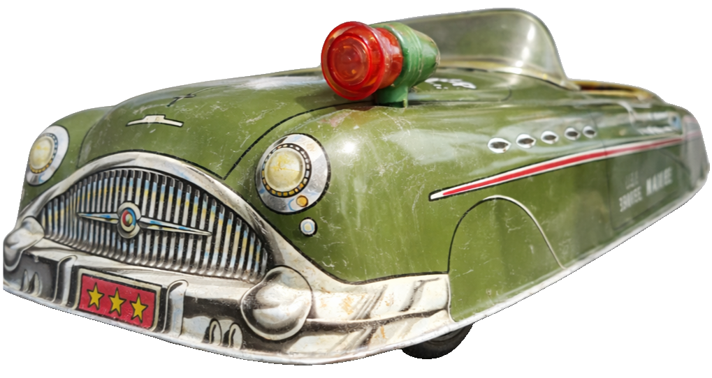 Autêntico carrinho americano da renomada fabricante Marx, produzido entre as décadas de 1940 e 1950. Peça original de época, representando fielmente o design e o charme dos brinquedos metálicos do pós-guerra.