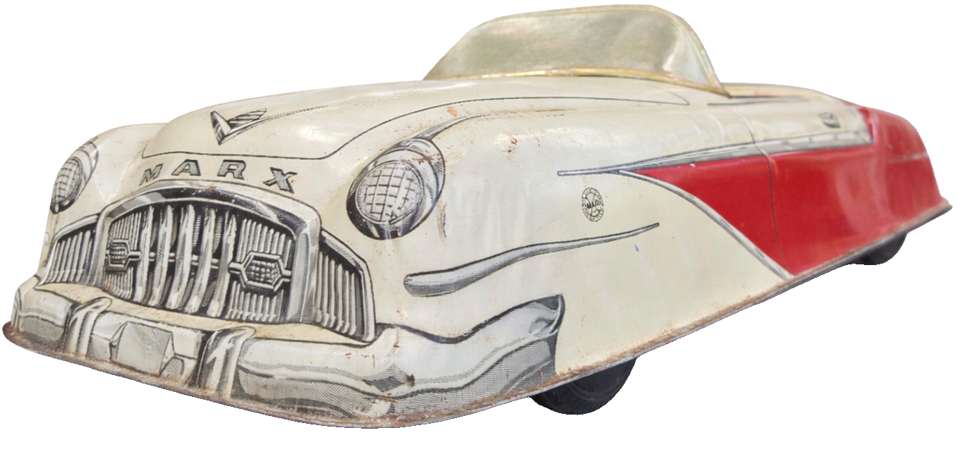 Autêntico carrinho americano da renomada fabricante Marx, produzido entre as décadas de 1940 e 1950. Peça original de época, representando fielmente o design e o charme dos brinquedos metálicos do pós-guerra.