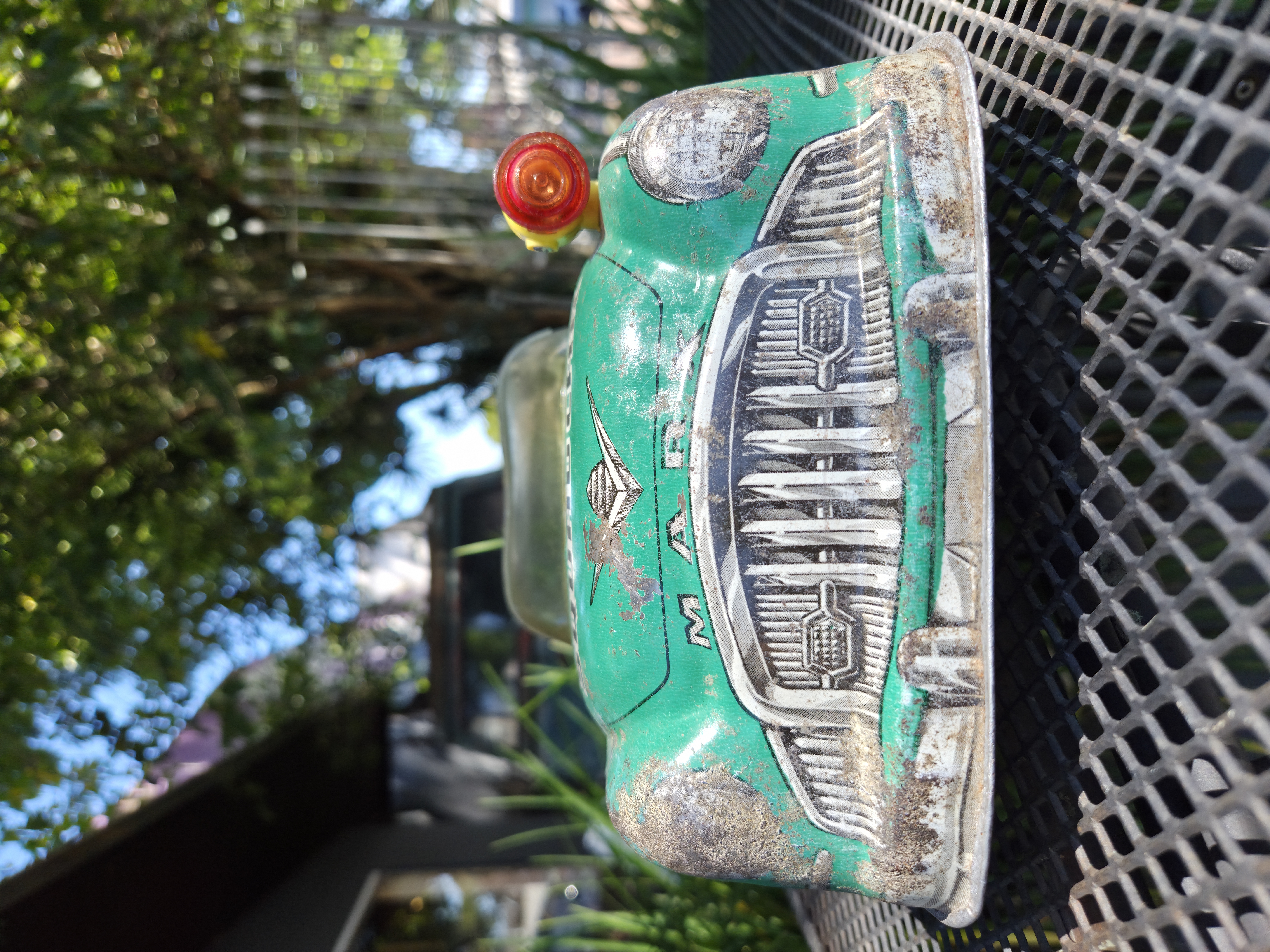 Fabricado em metal, com linhas clássicas e robustas, este carrinho é hoje um item altamente colecionável, procurado por amantes de brinquedos antigos, memorabilia vintage e história do design industrial.