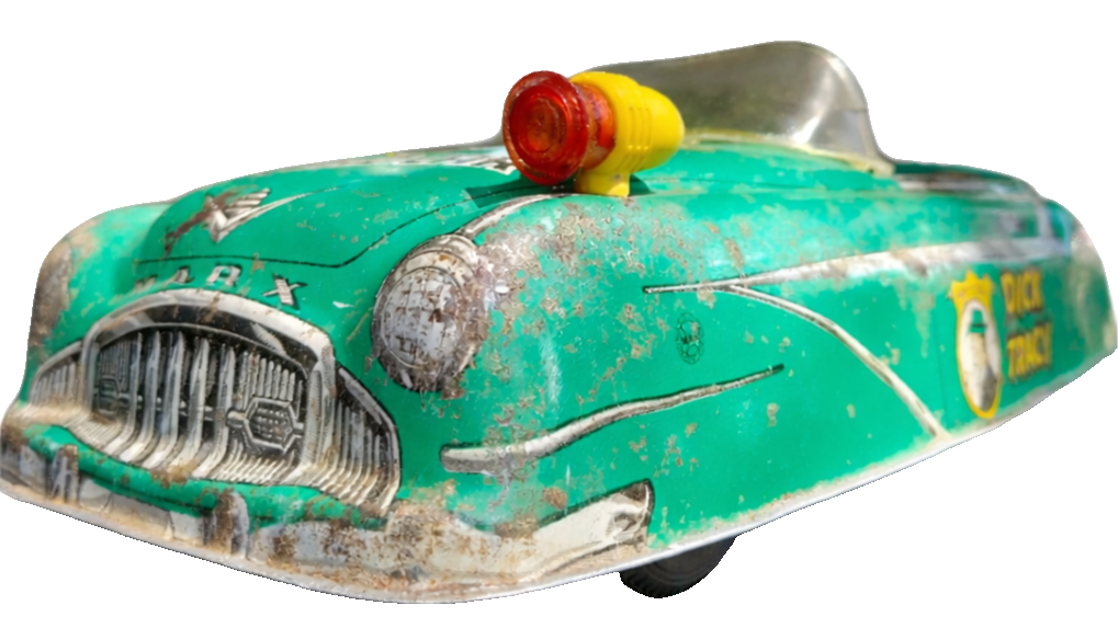 Autêntico carrinho americano da renomada fabricante Marx, produzido entre as décadas de 1940 e 1950. Peça original de época, representando fielmente o design e o charme dos brinquedos metálicos do pós-guerra.