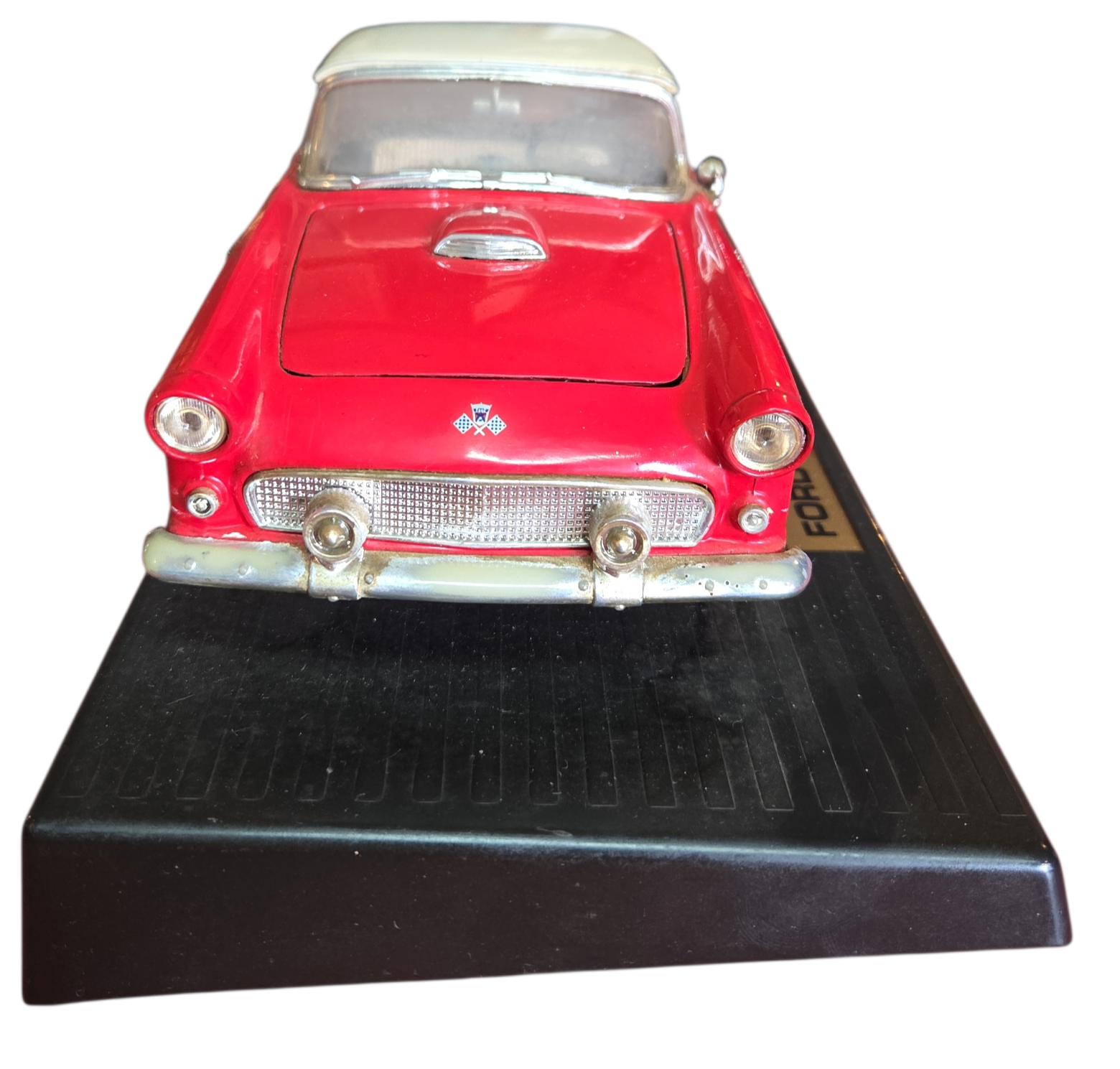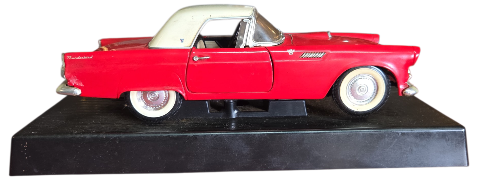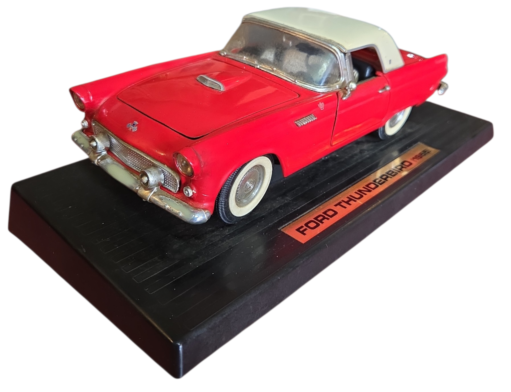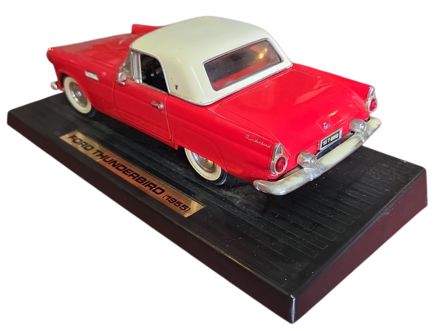 Apresentamos uma peça icônica do automobilismo americano: a miniatura do Ford Thunderbird 1955. Este exemplar capta toda a elegância do primeiro ano de produção do "T-Bird", um clássico que definiu o segmento de luxo pessoal na década de 50.