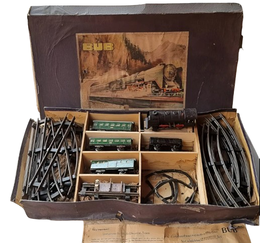 Conjunto de ferromodelismo alemão ´´BUB`` na caixa com manual original.