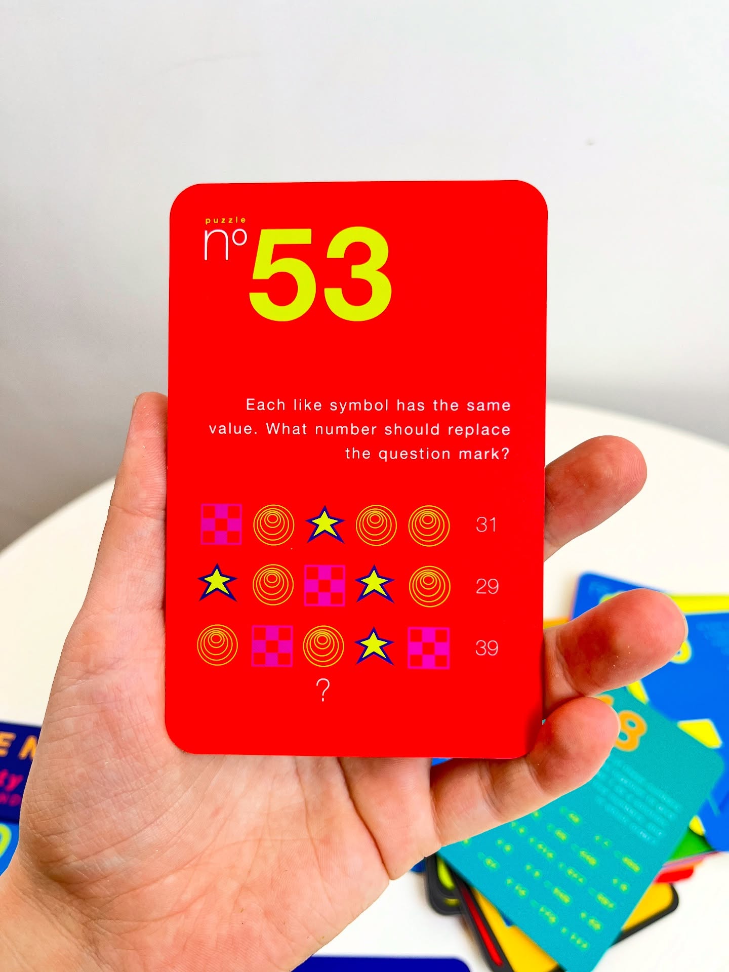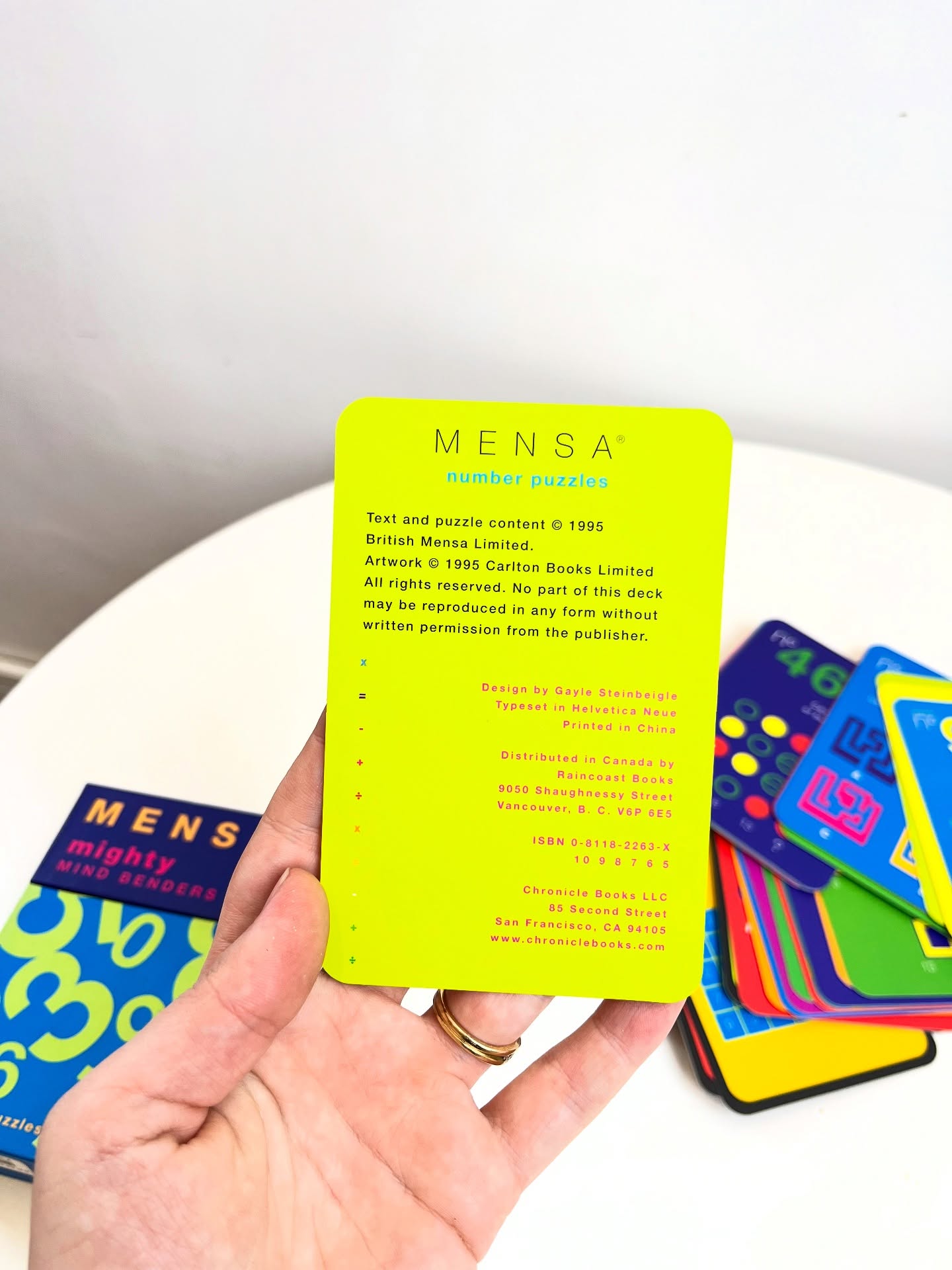 Cards em inglês com 75 desafios numéricos. De 1995. Leves marcas de tempo e uso.