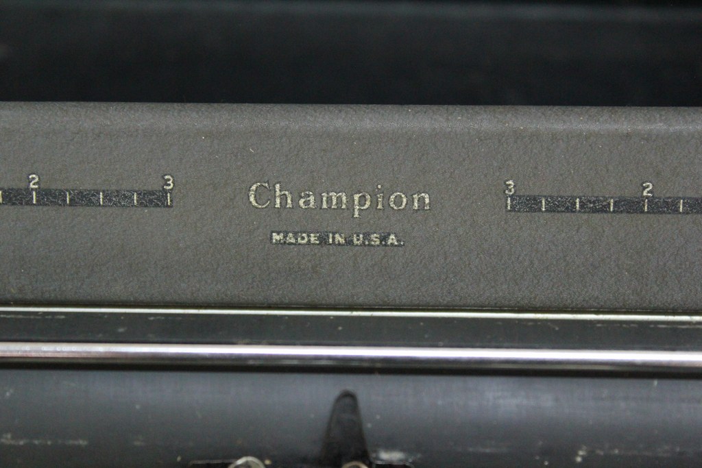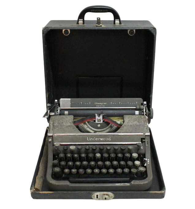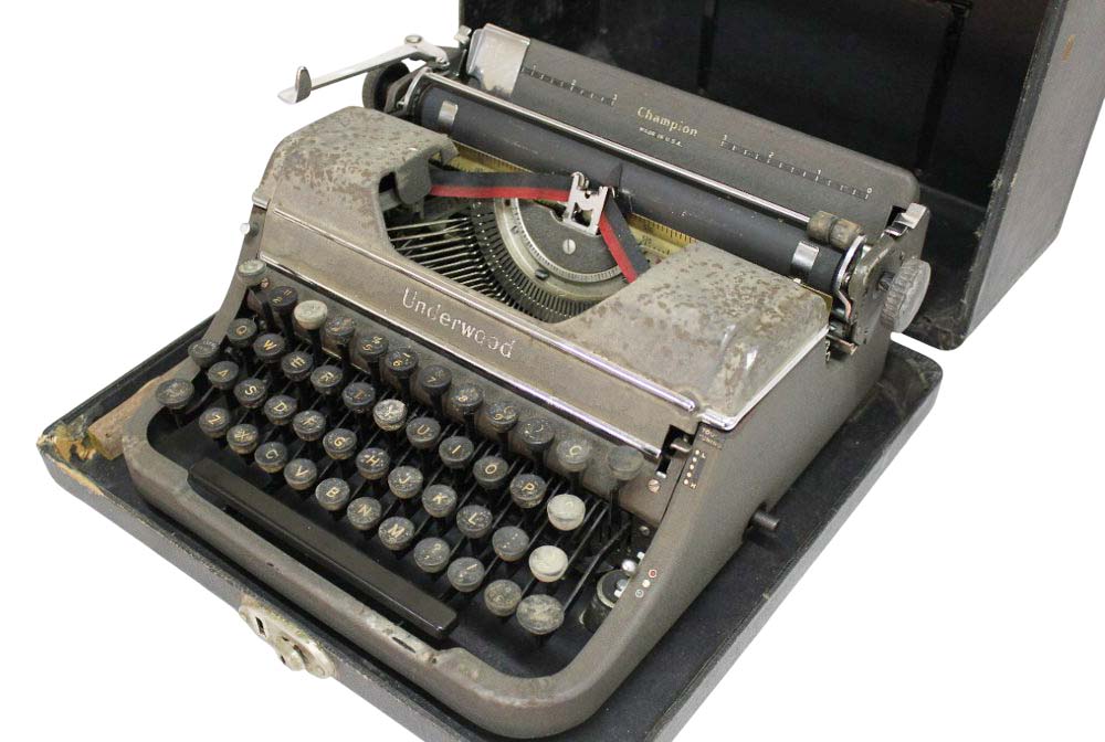 Antiga e rara máquina de escrever da manufatura UNDERWOOD CHAMPION MADE IN USA. Acompanha caixa original com pega em baquelite e logo da marca. Apresenta desgastes do tempo, não testada sem garantias. Atrás inscrição UNDERWOOD - PRODUCT OF UNDERWOOD CORPORATION PROTECTED BY UNITES STATE AND FOREING PATENTS MADE IN USA. Medidas da máquina 14A X 21C X 28L.