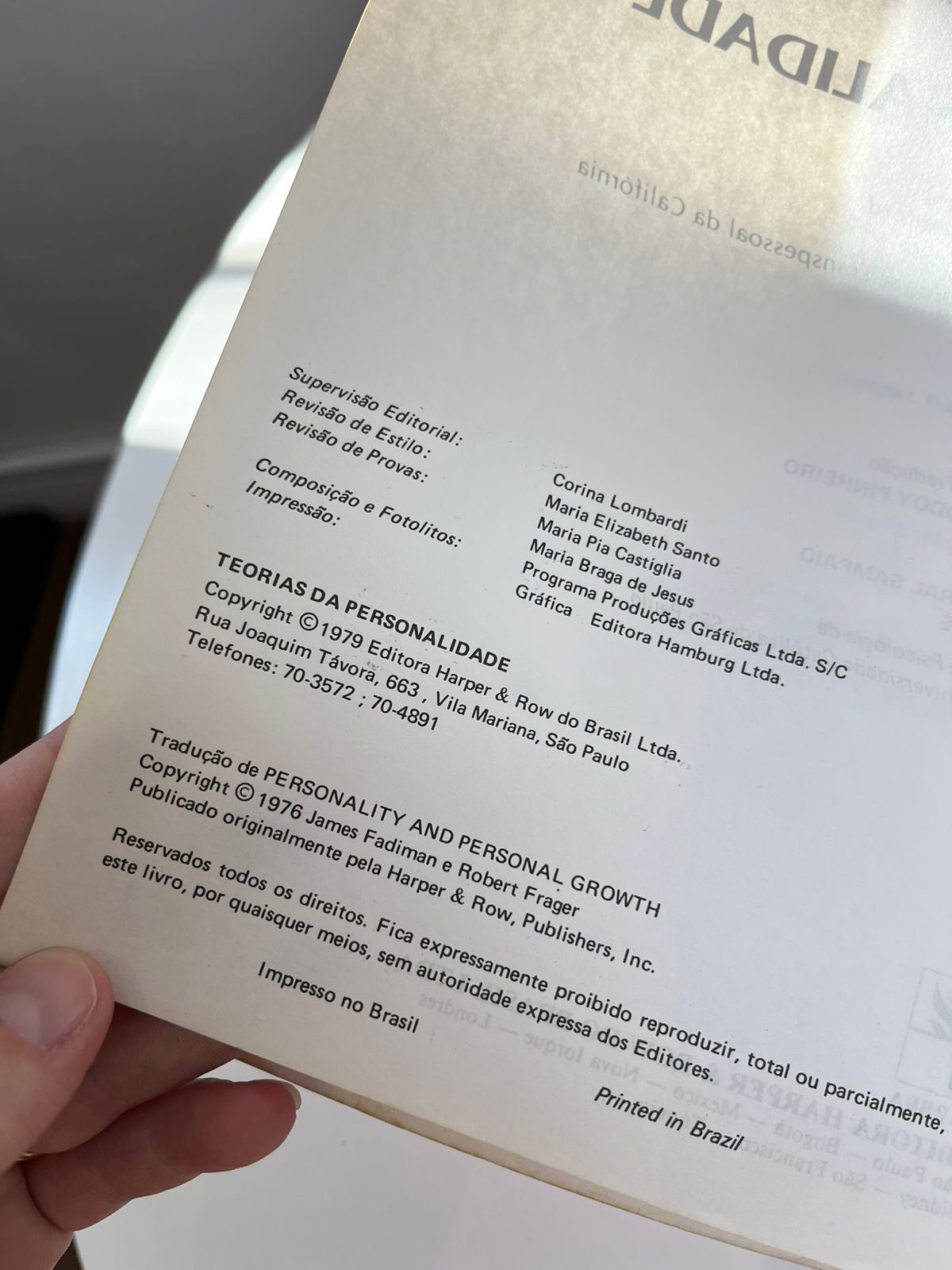 Quantidade mínima para "Livro Teoria da Personalidade 1979 - James Fadiman e Robert Frager" é de 1.