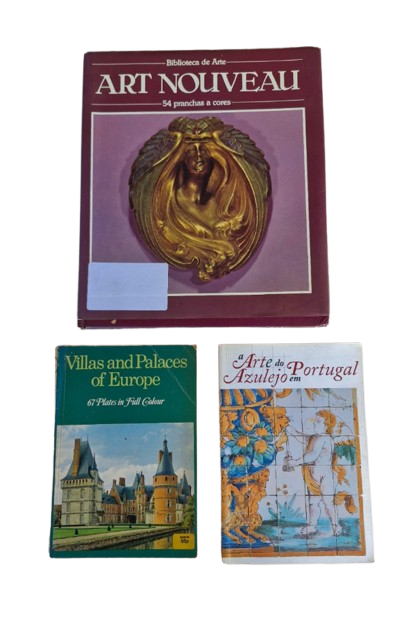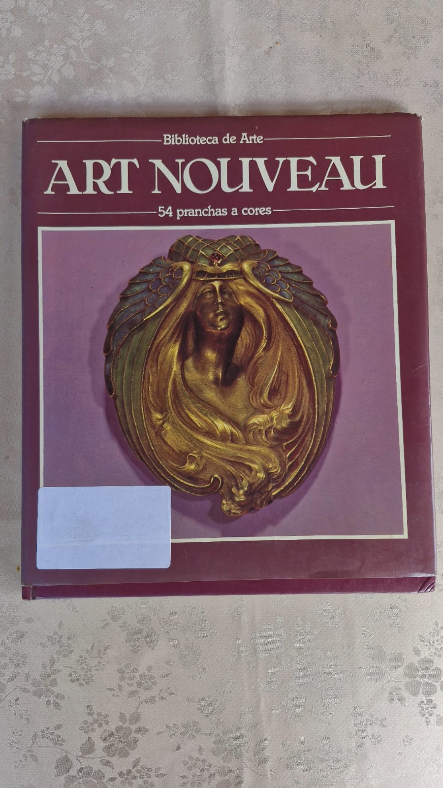 Art Nouveau: 54 pranchas a cores - Este livro publicado em 1985 é um recurso ilustrado sobre o estilo artístico Art Nouveau, que floresceu na Europa entre 1890 e 1910, caracterizado por formas orgânicas, linhas sinuosas e inspiração na natureza.