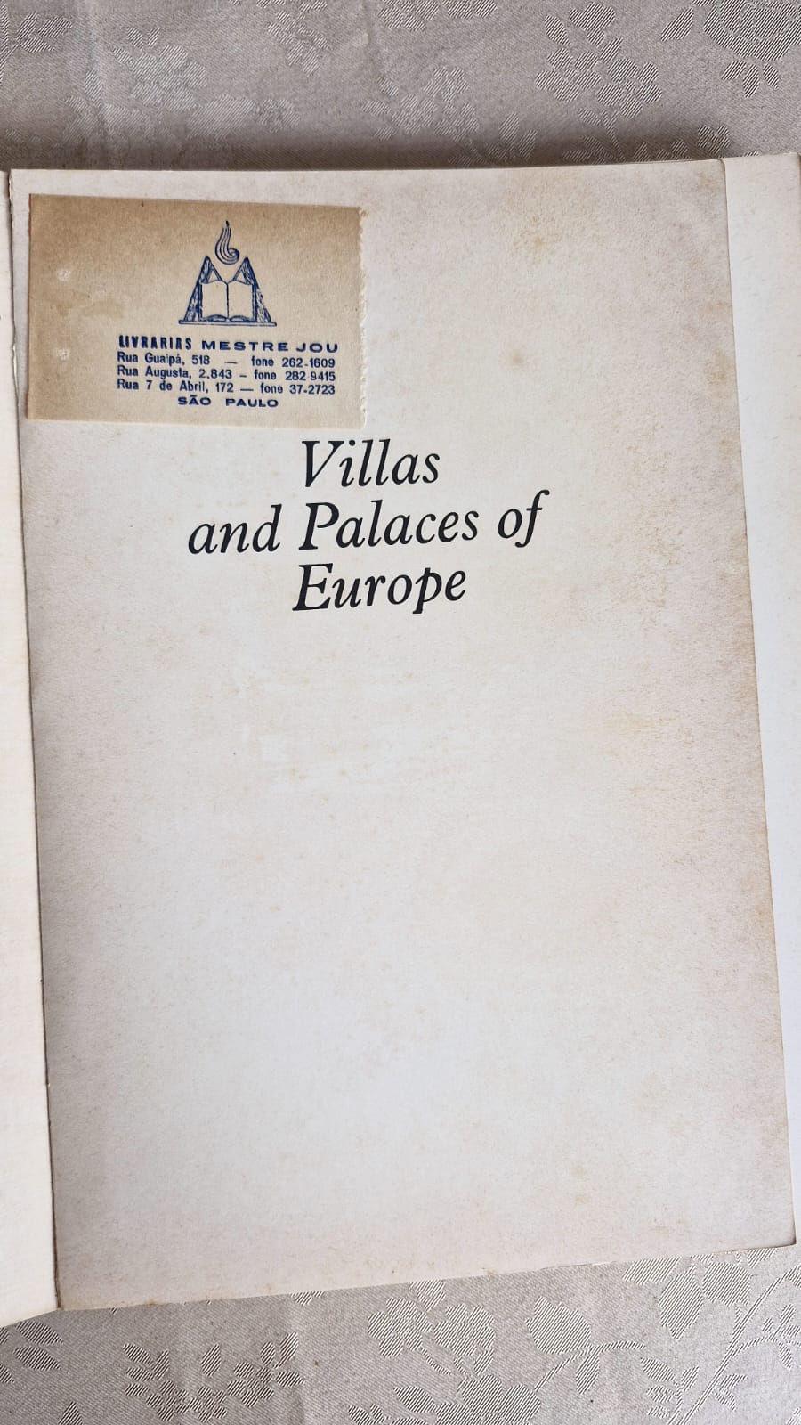 Villas and Palaces of Europe - Este livro é profusamente ilustrado com 67 placas coloridas (fotos ou ilustrações) que mostram a arquitetura e o esplendor histórico de vilas e palácios majestosos da Europa. A capa da imagem, por exemplo, exibe o Château de Maintenon, na França.