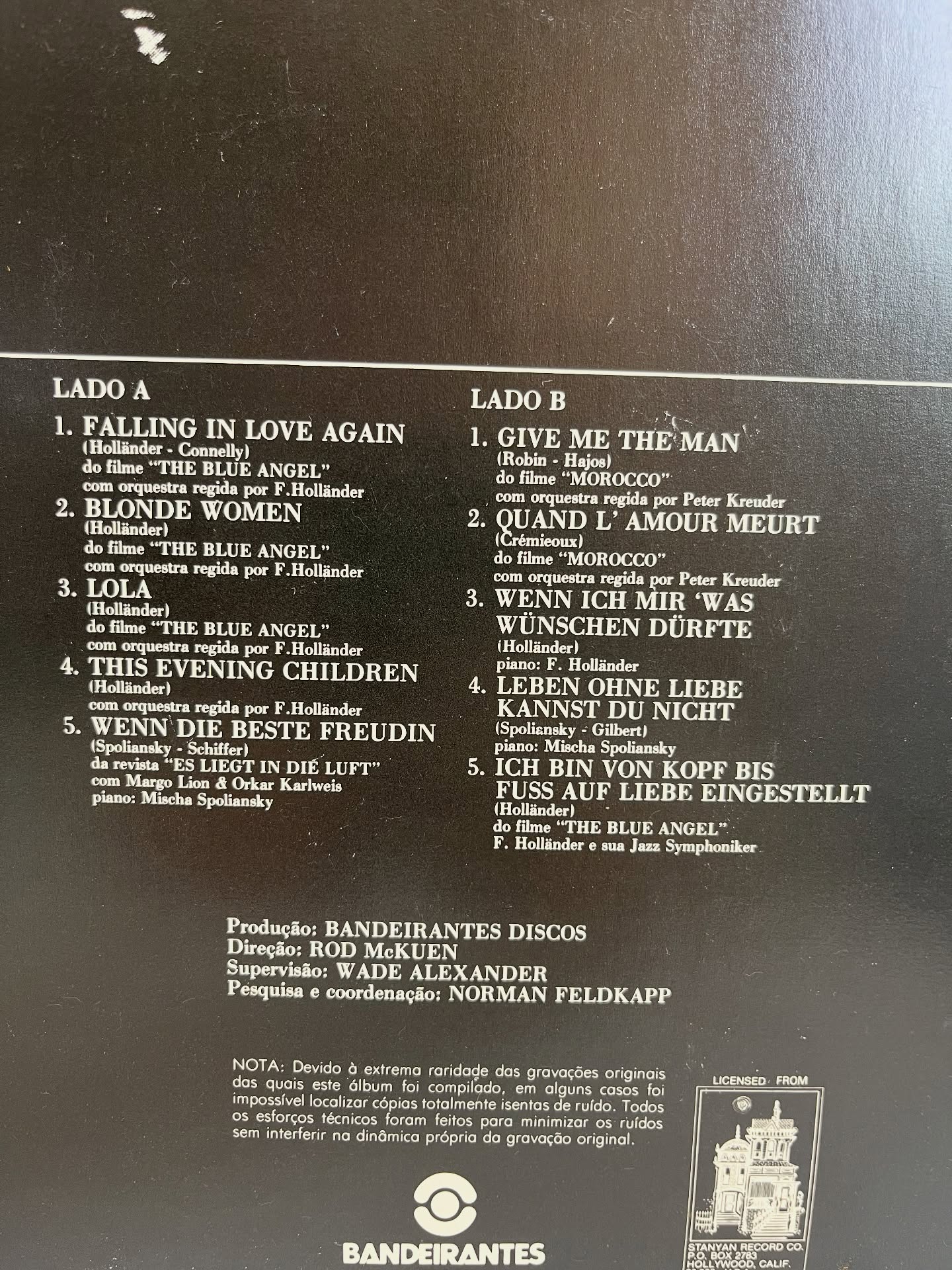 Quantidade mínima para "LP de 1979, Marlene Dietrich" é de 1.