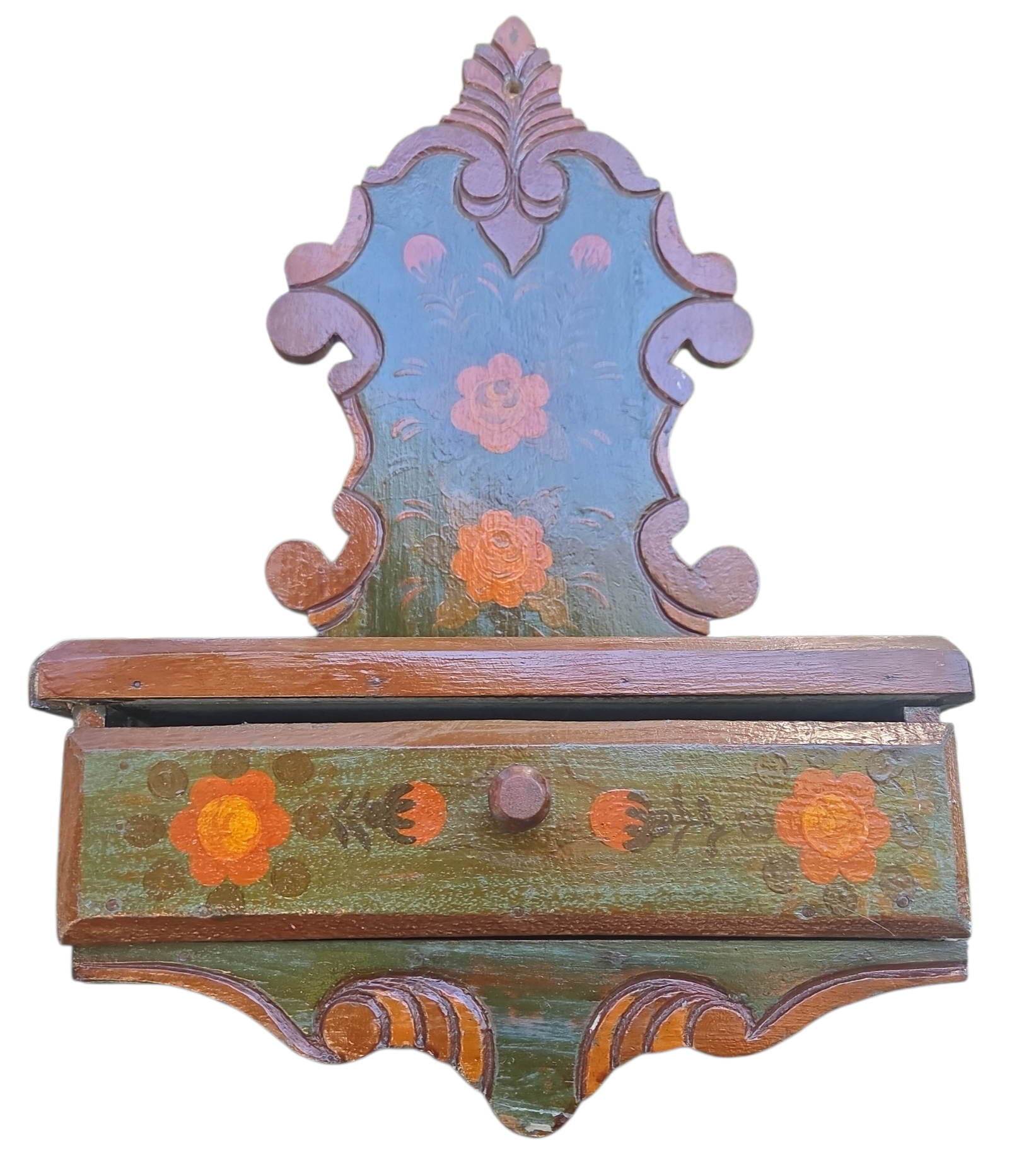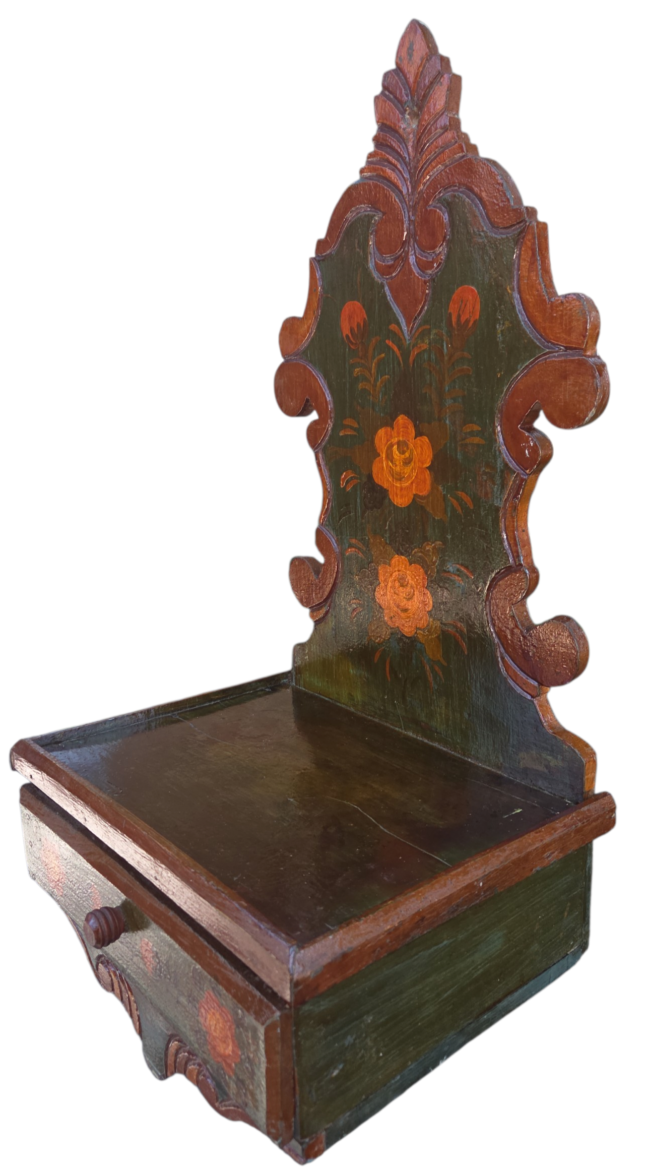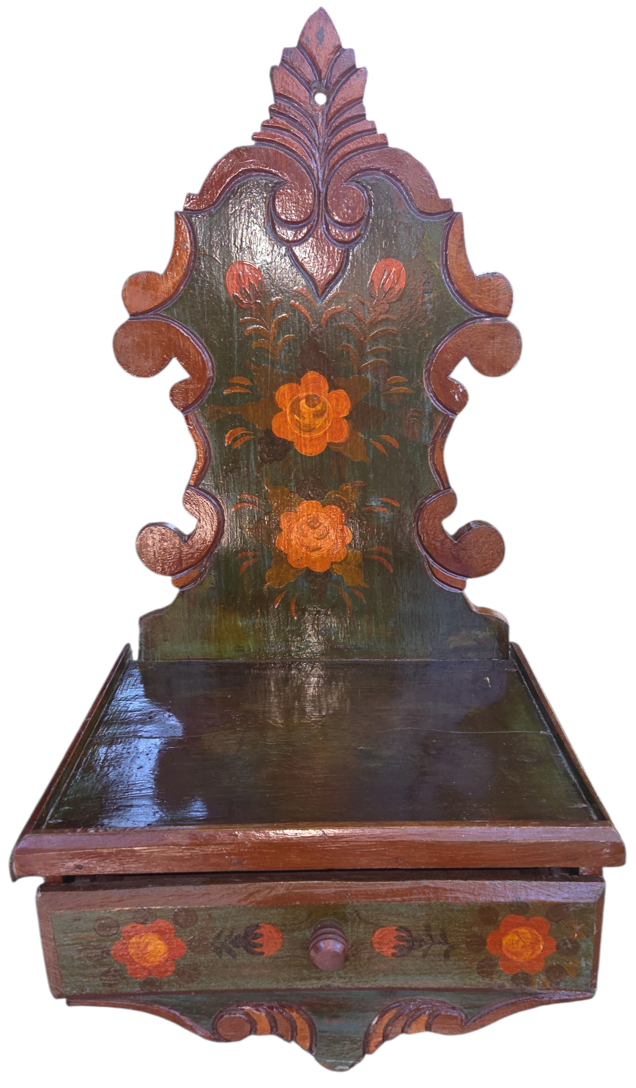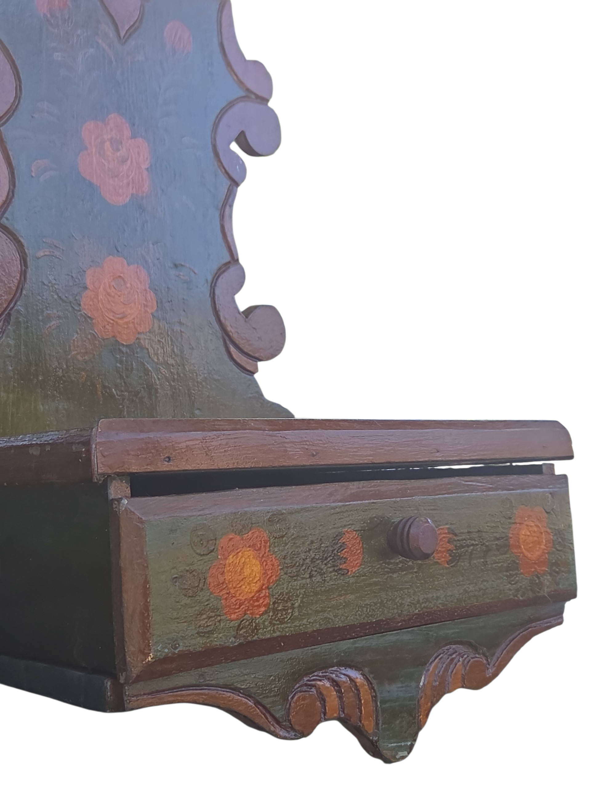 Este é um oratório de parede singular, que une a tradição da fé com a delicadeza da arte popular. Produzido em madeira maciça, ele apresenta um design clássico com recortes ornamentais, ideal para criar um espaço de devoção e serenidade em sua casa.