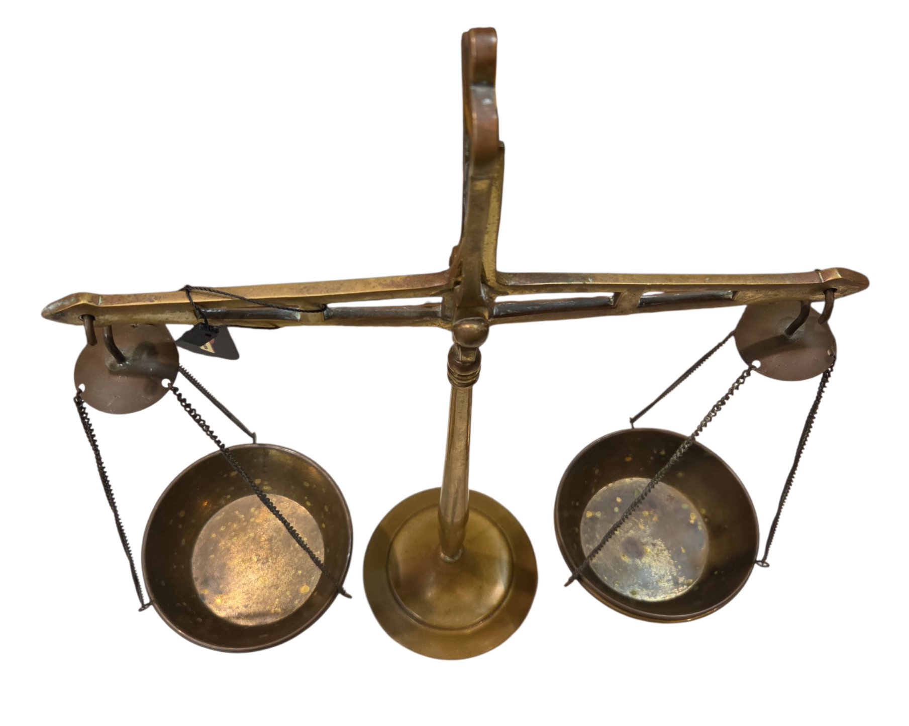 Magnífica balança de pratos antiga, fabricada pela prestigiada marca alemã Mathias Hamacher, sediada em Solingen. Uma peça que une funcionalidade histórica e alto valor decorativo, ideal para colecionadores de instrumentos de precisão ou para composição de ambientes clássicos.