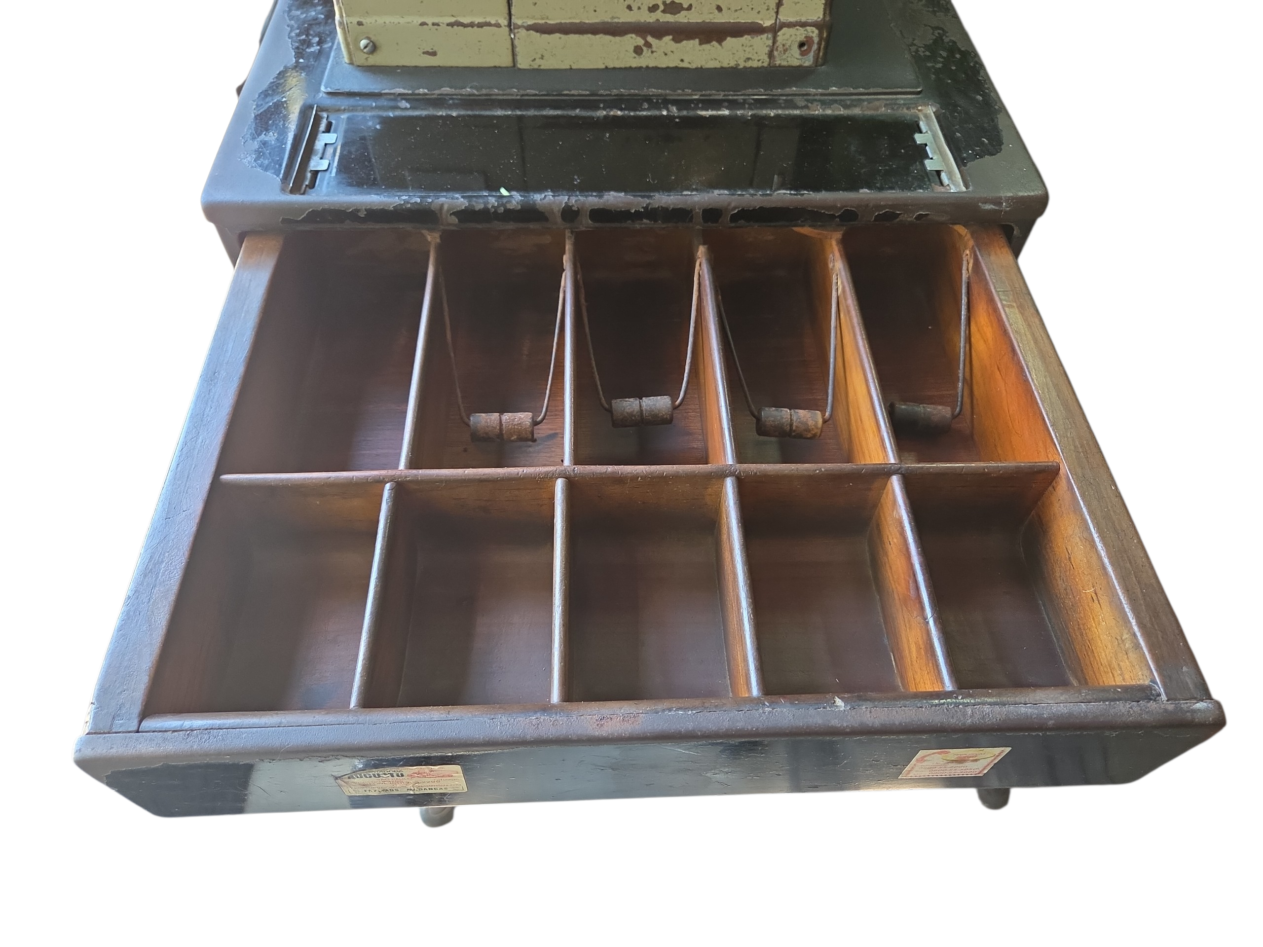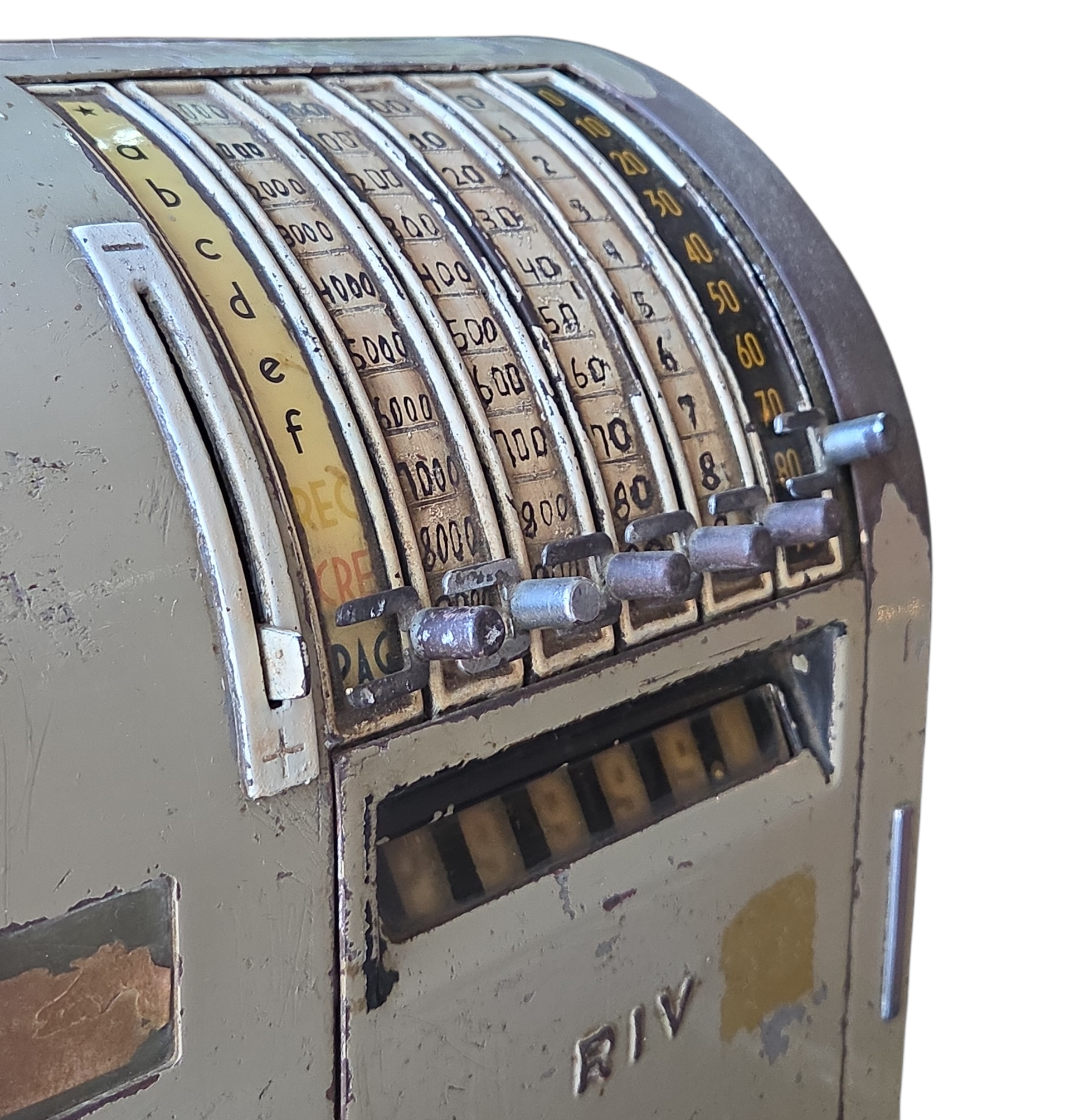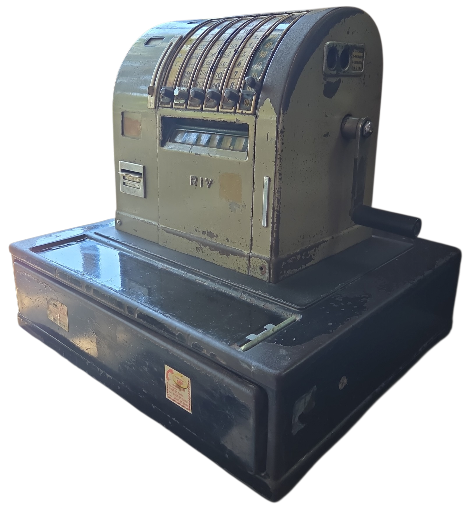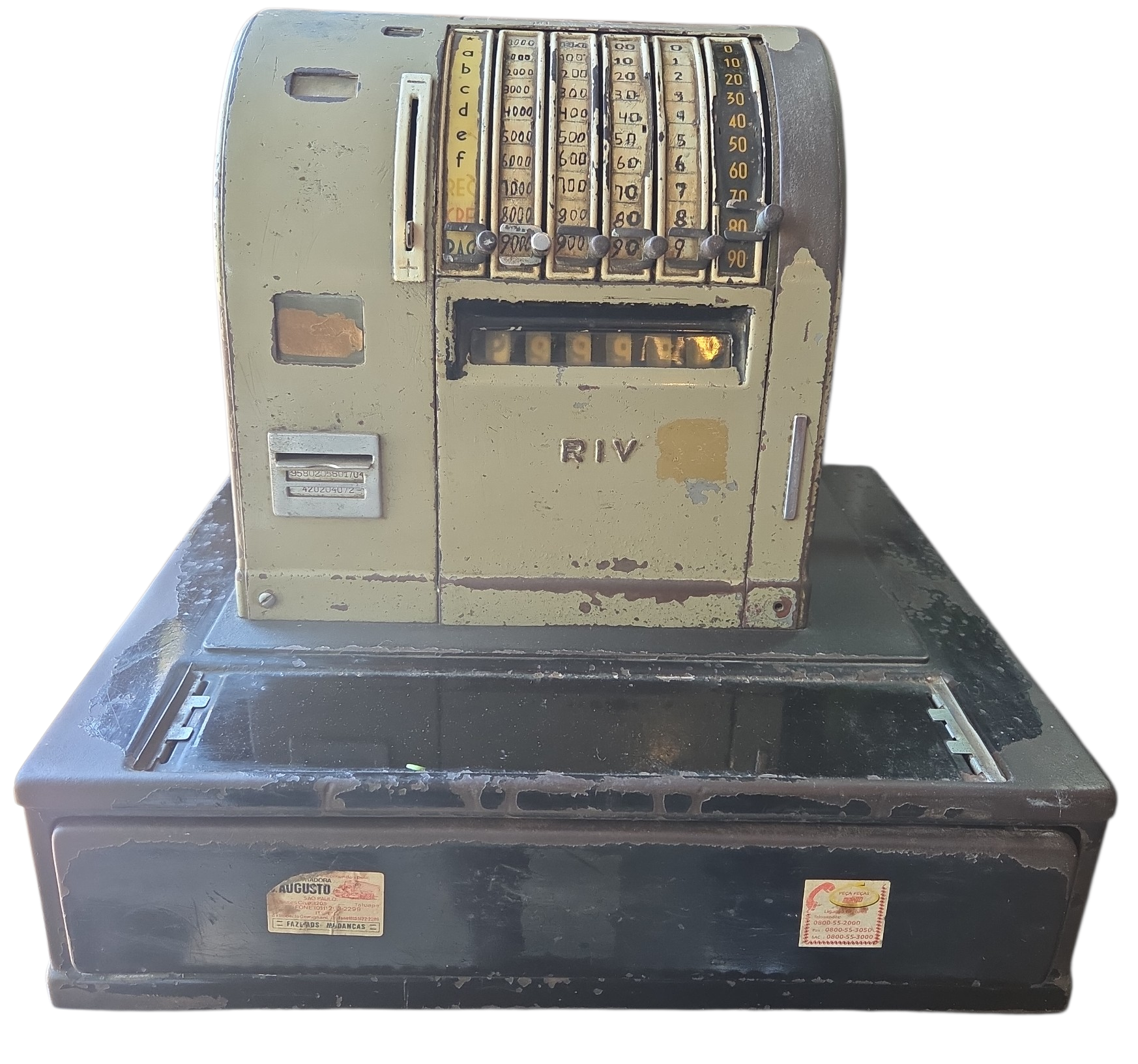 Adicione um toque autêntico de história ao seu ambiente com esta caixa registradora original da marca RIV. Com seu design robusto e carcaça metálica em tom verde militar/pistache, esta peça é o elemento central perfeito para decorações no estilo industrial, bares temáticos, barbearias ou escritórios de design.