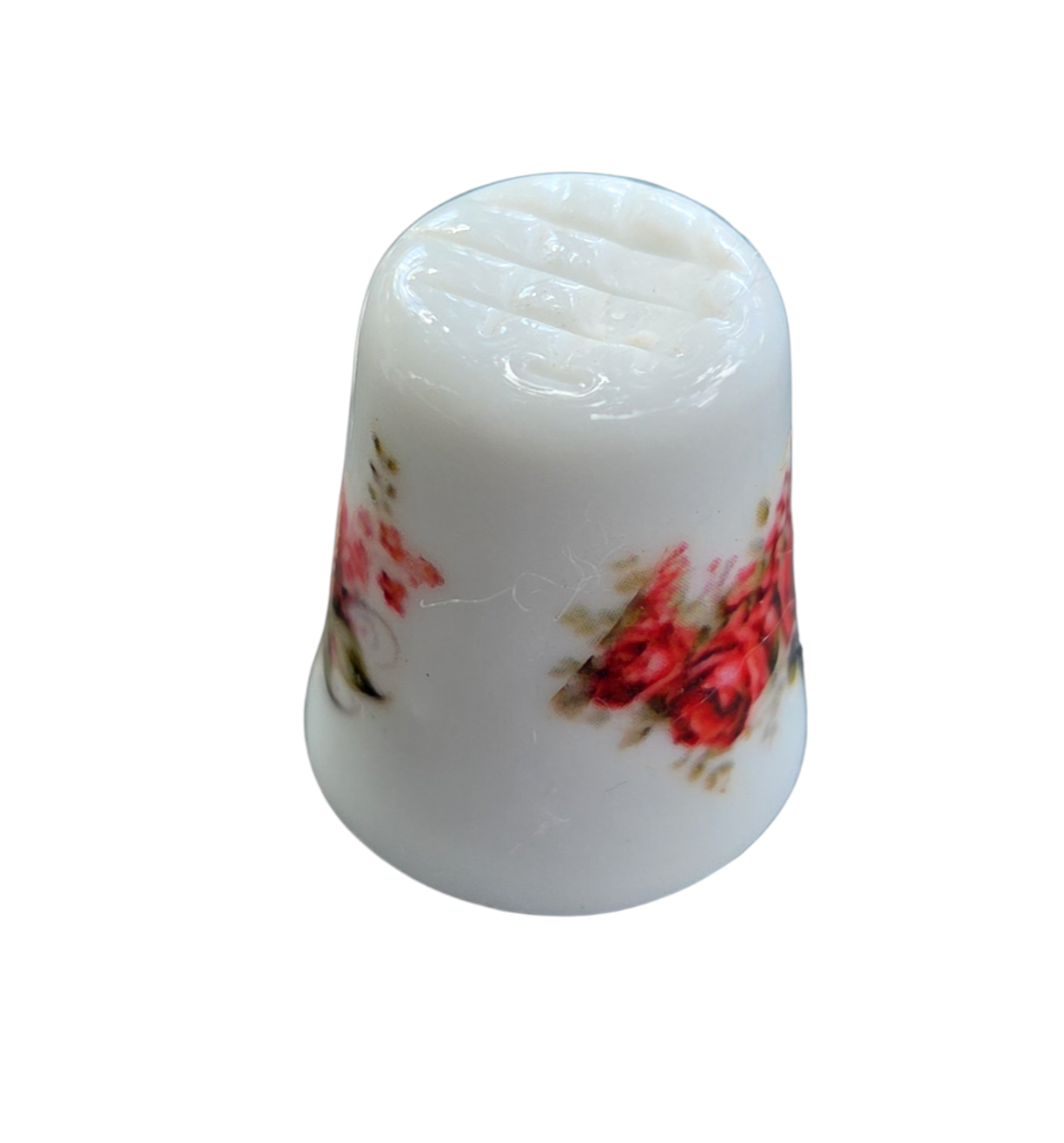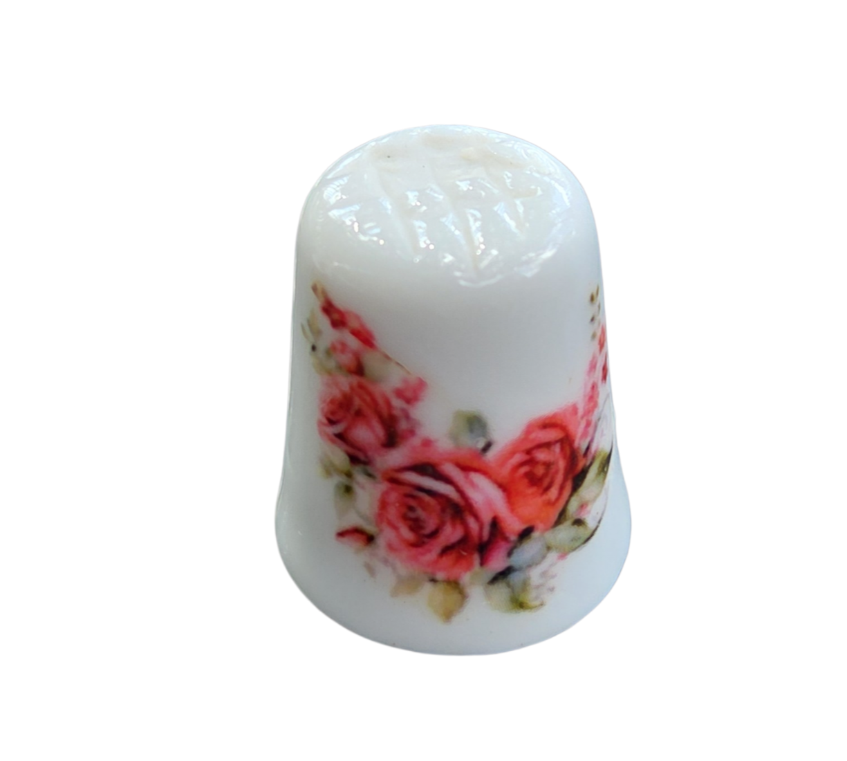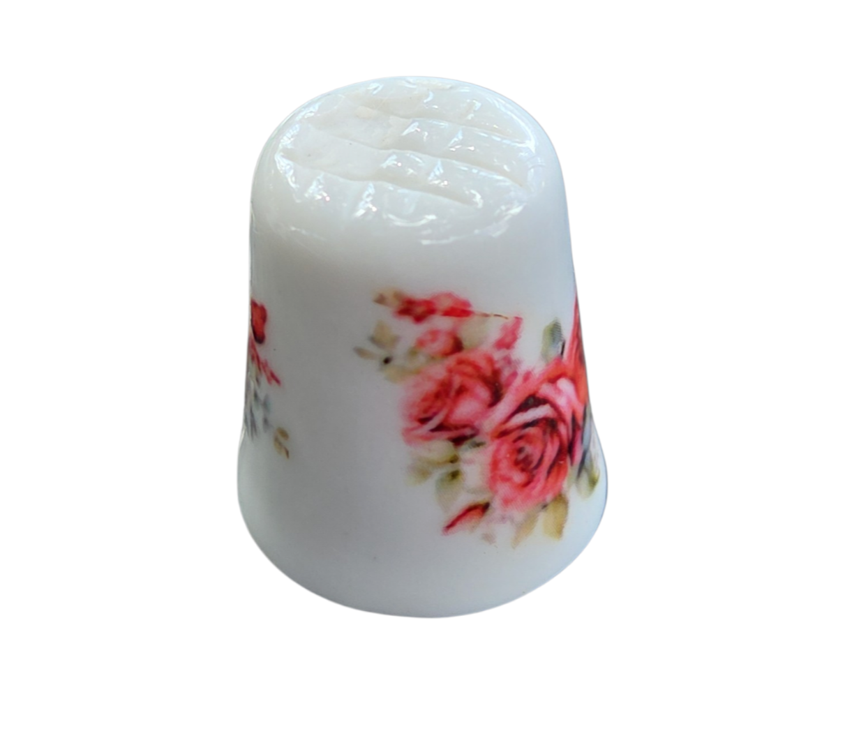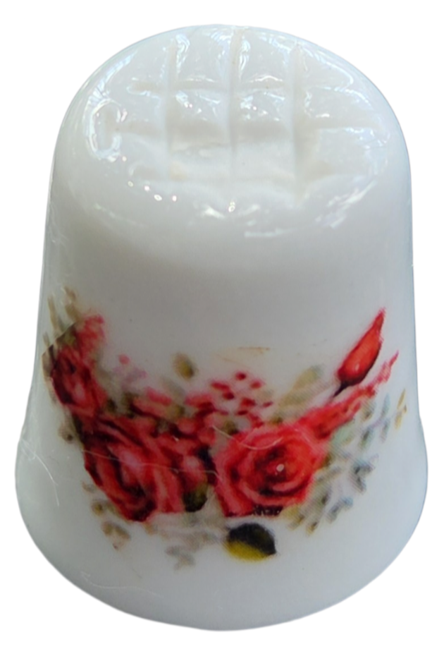 Este delicado dedal em porcelana é uma peça clássica de colecionismo, unindo funcionalidade e estética romântica. Com um design atemporal, a peça apresenta uma guirlanda floral que envolve parte de sua circunferência, ideal para compor conjuntos temáticos ou vitrines decorativas.