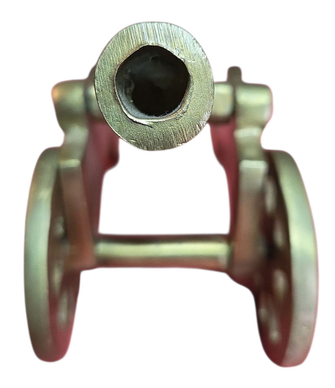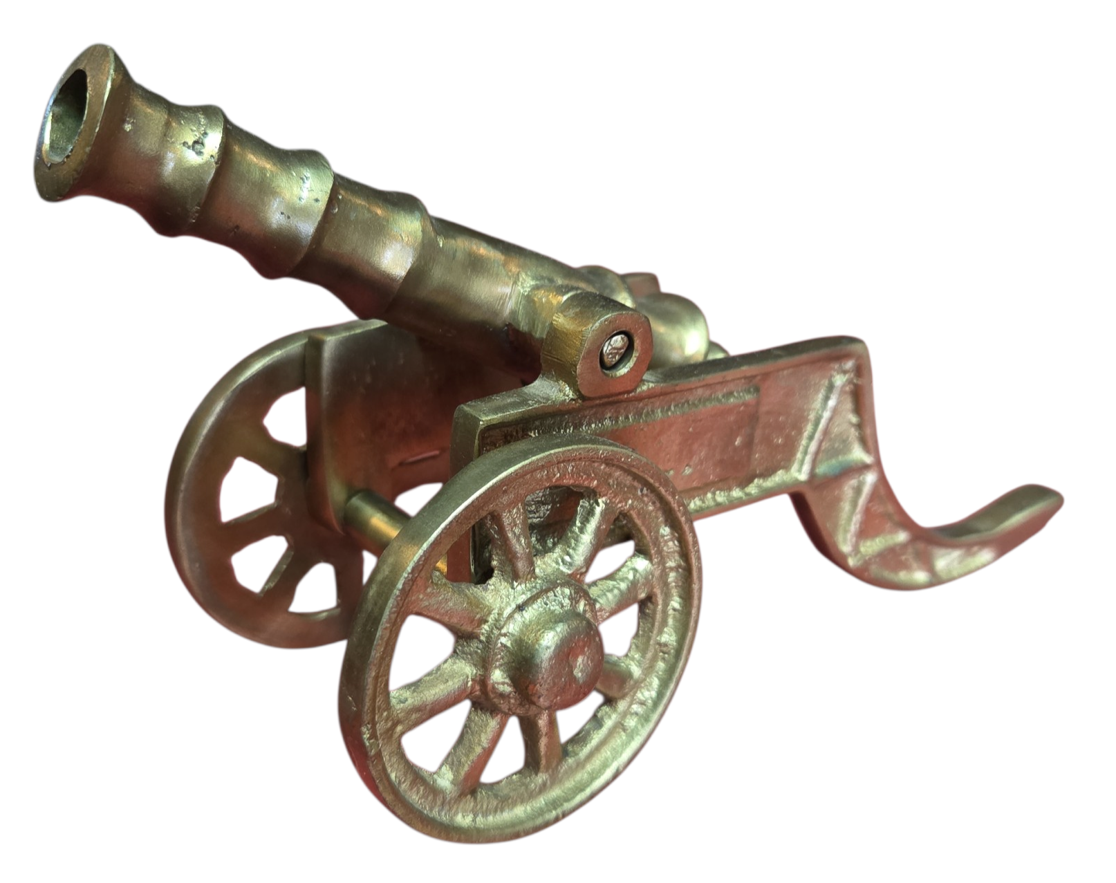 Peça decorativa de canhão antigo, confeccionada inteiramente em bronze. Uma peça que une robustez e detalhamento, ideal para compor mesas de escritório, estantes ou coleções de antiguidades.