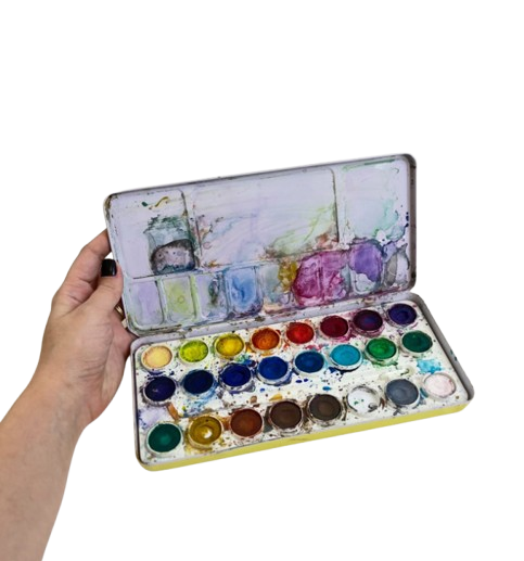Antigo estojo de aquarela com 24 cores da marca Guitar, da década de 60/70. Marcas do tempo e uso como nas fotos.