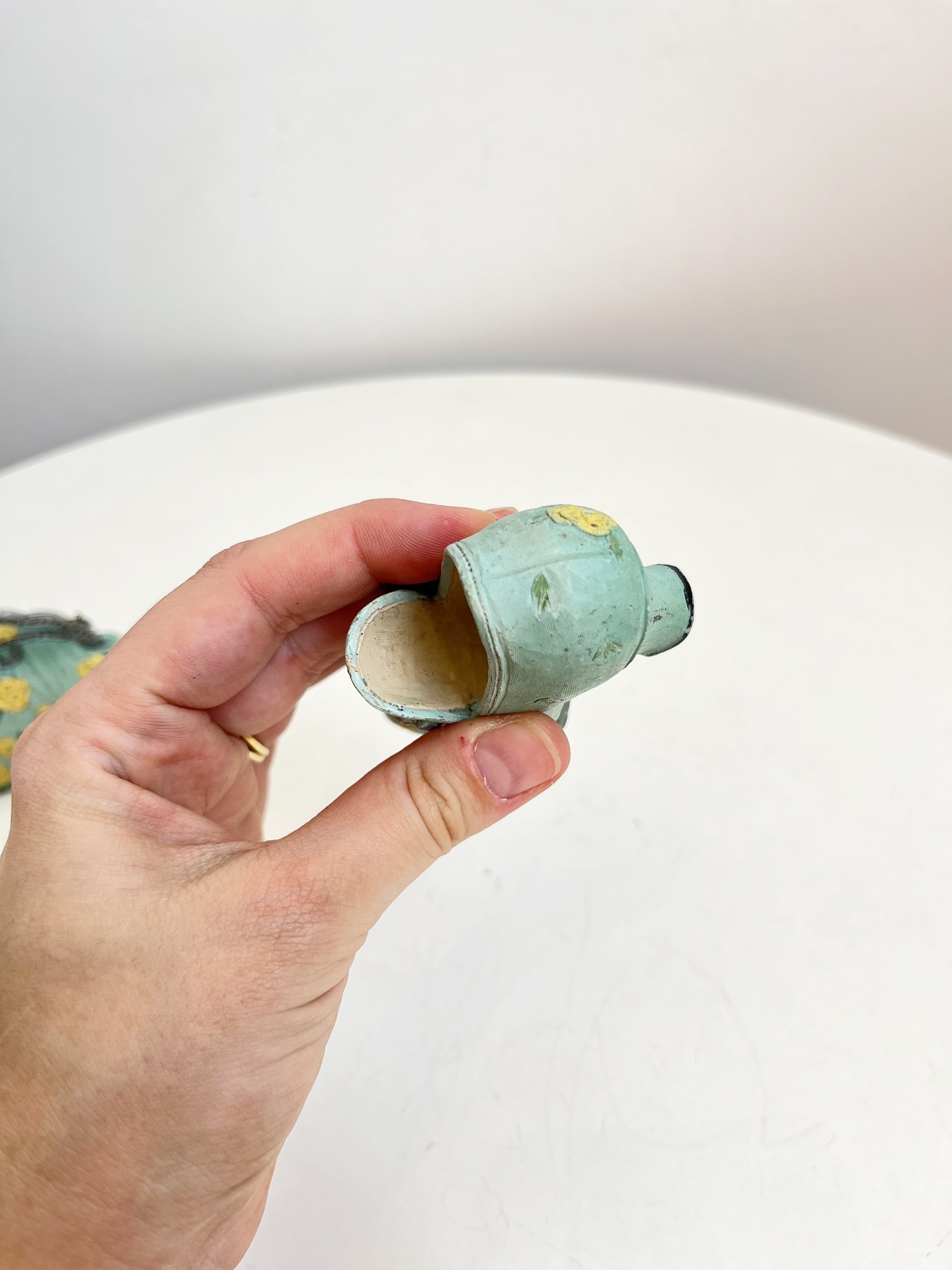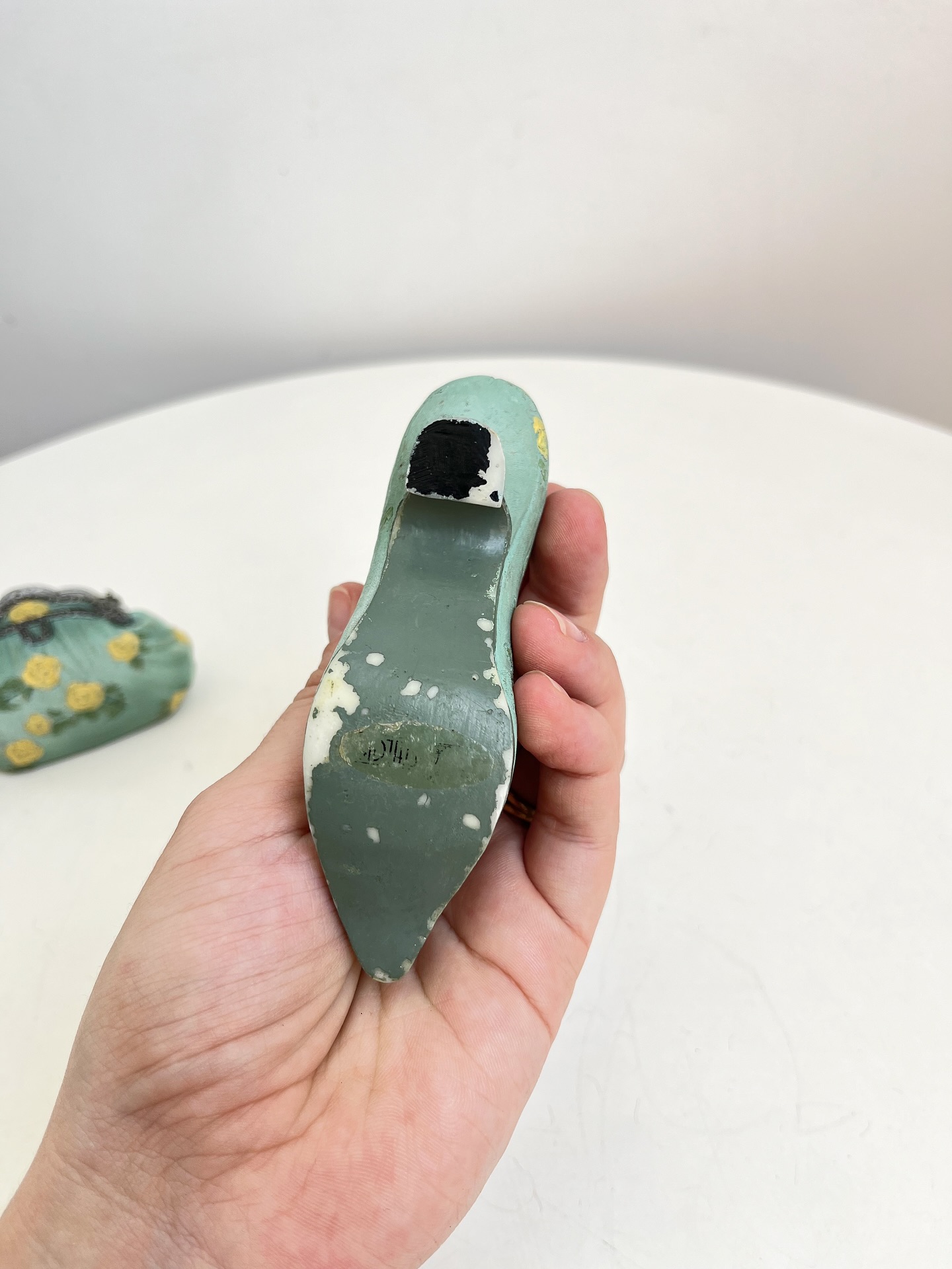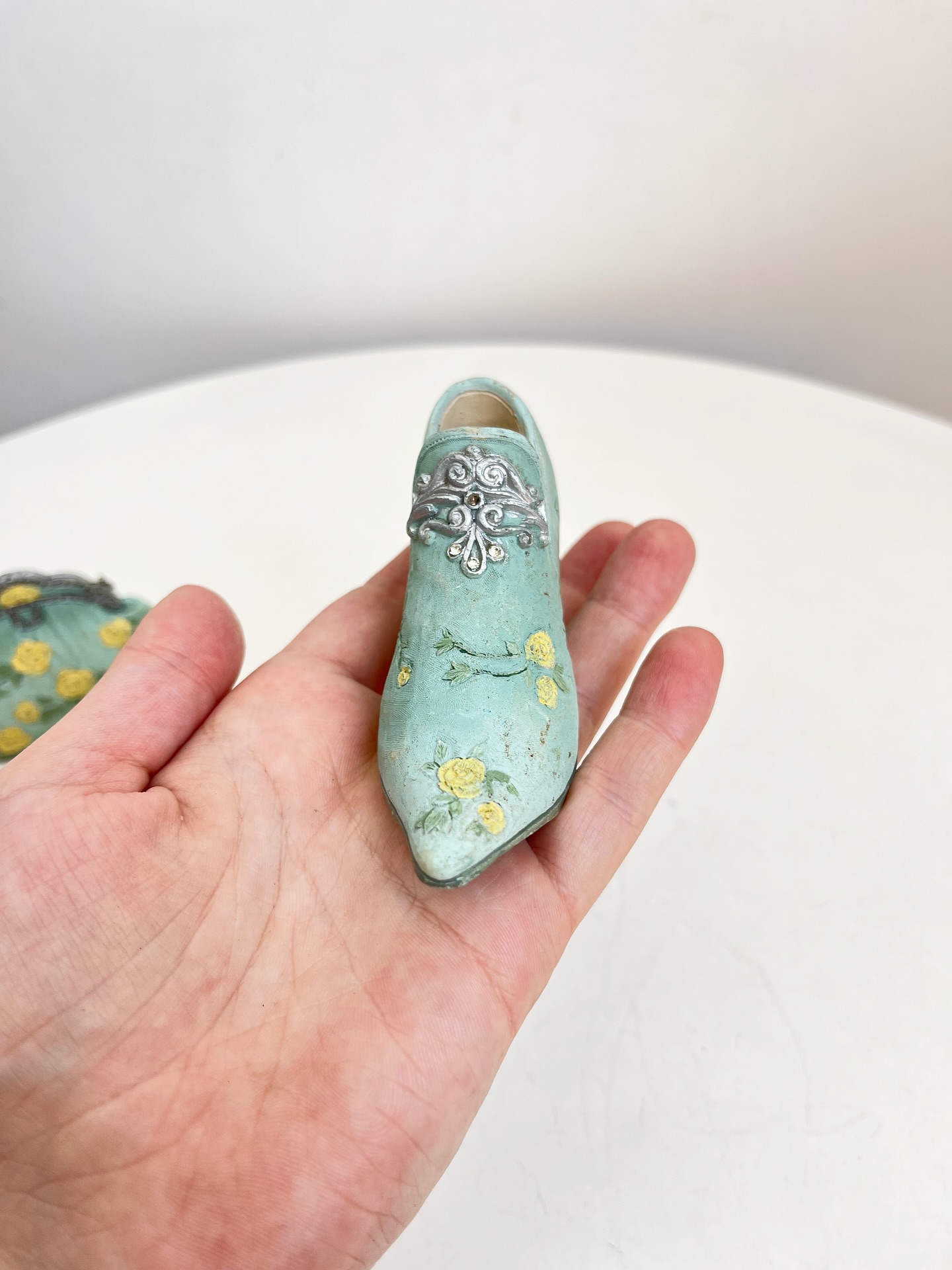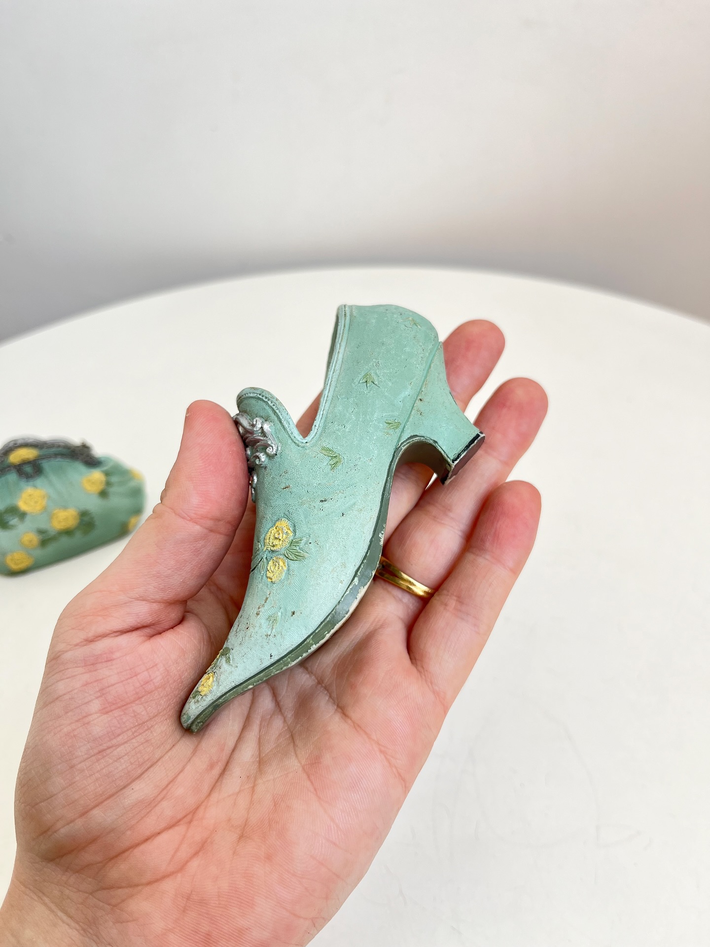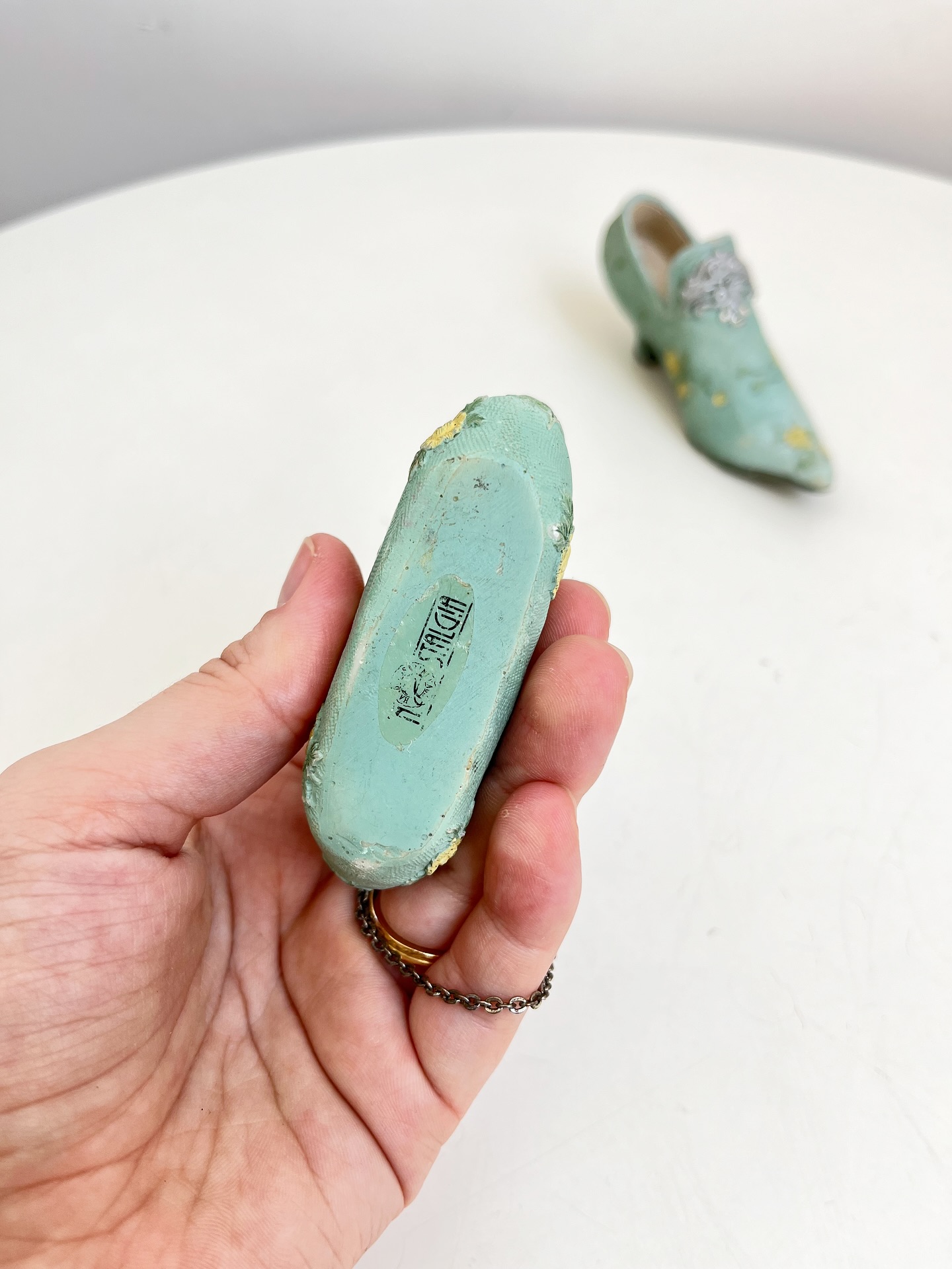 Bolsa e sapatinho colecionáveis em resina. Leves marcas do tempo e uso como mostrado nas fotos.