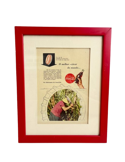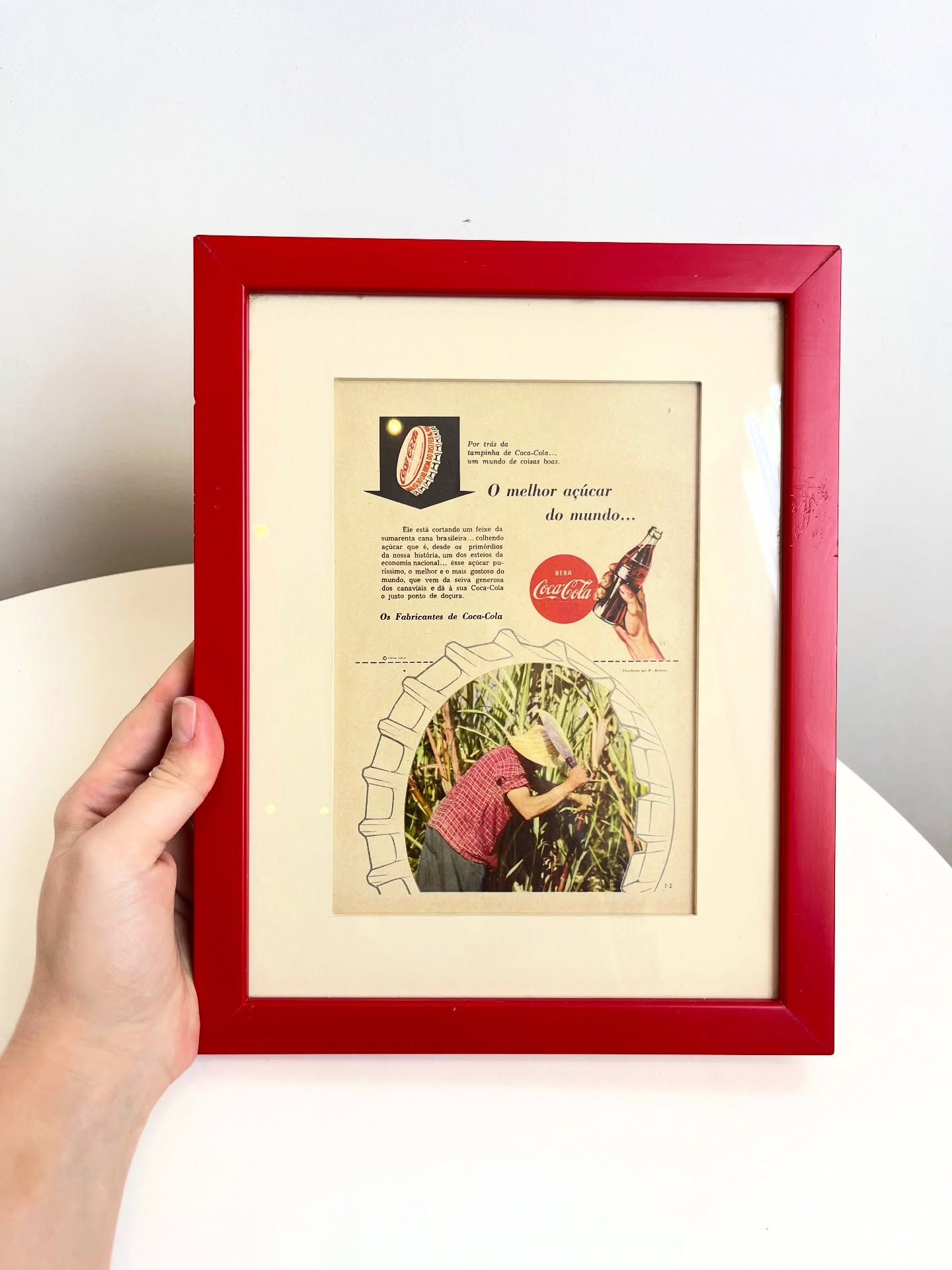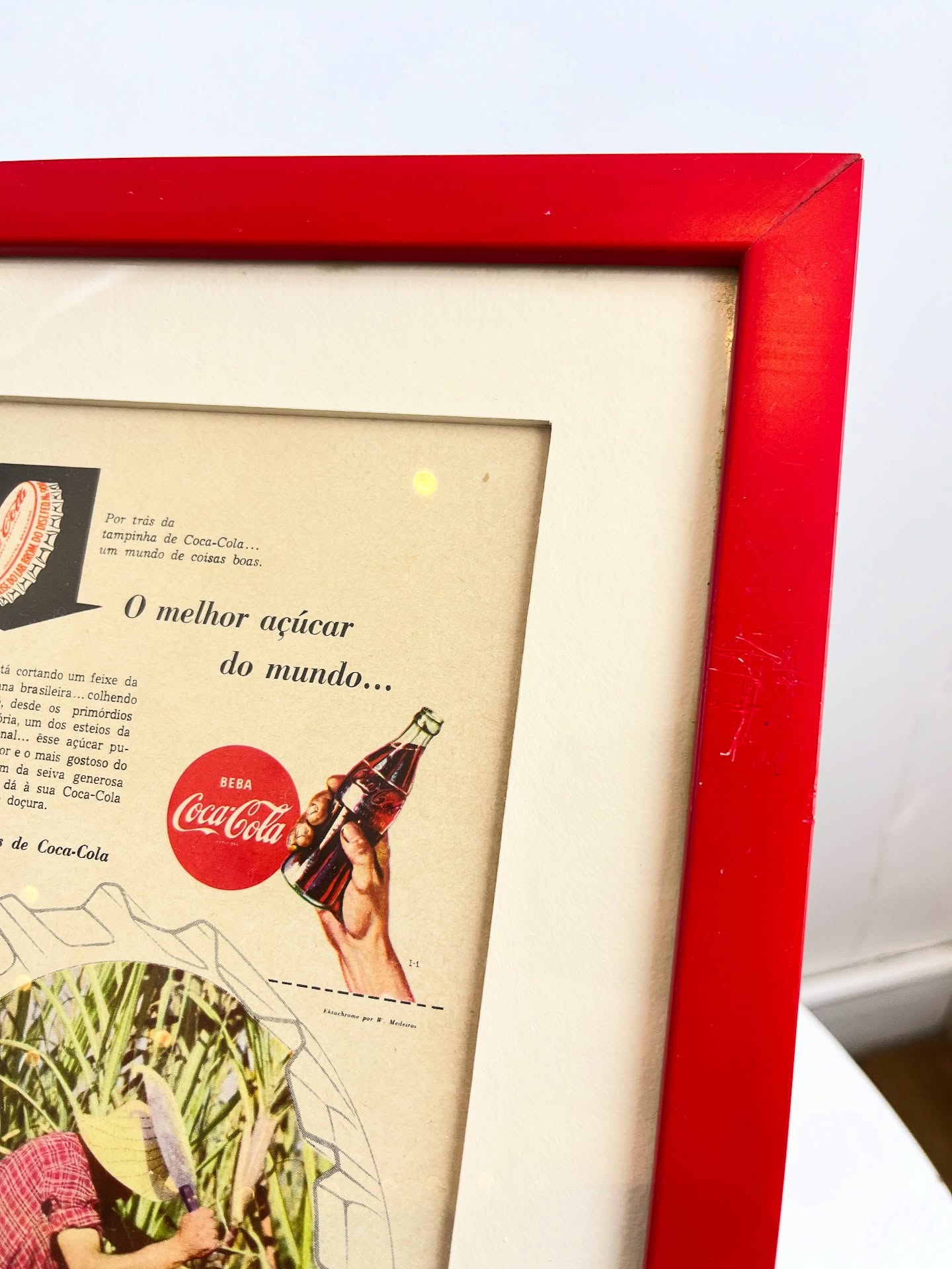 Propaganda da coca cola, de 1954, emoldurada com vidro. Moldura tem algumas avarias como nas fotos.