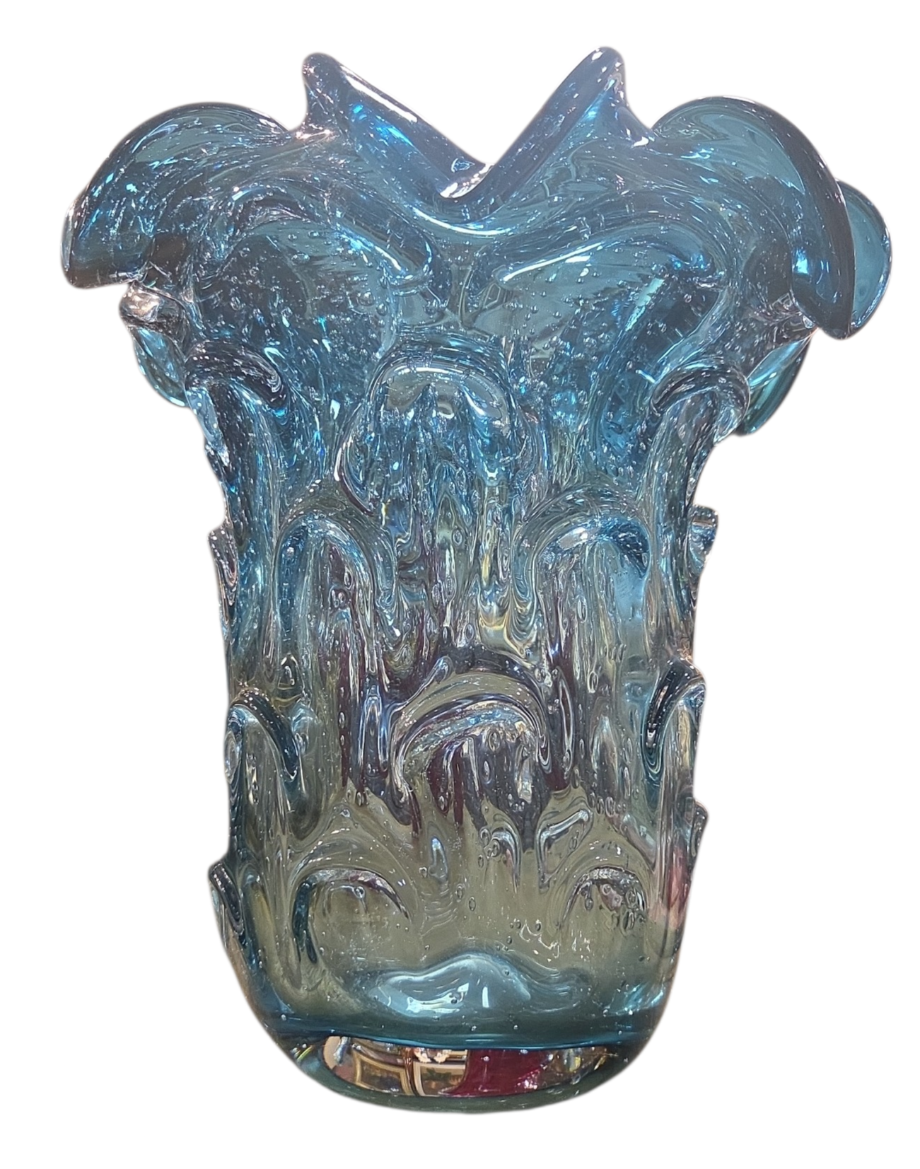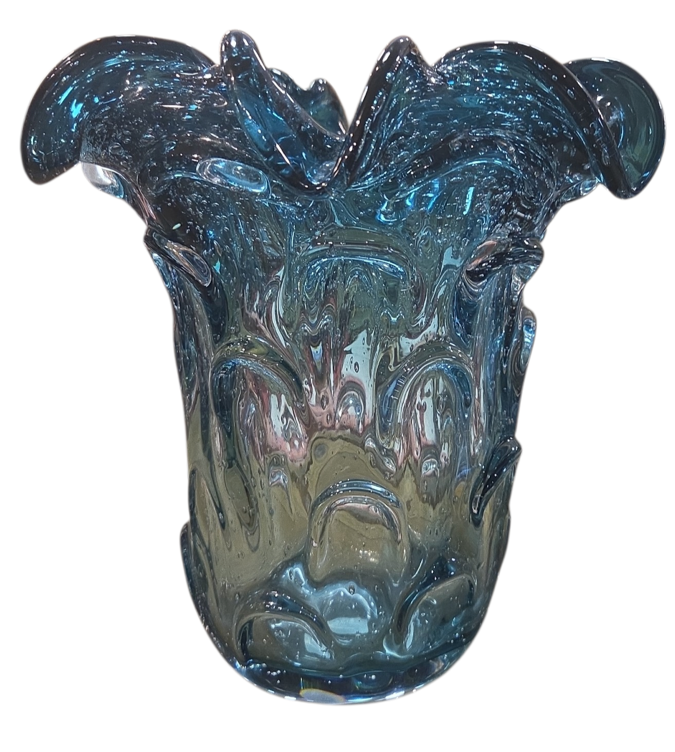 Cada curva deste vaso conta uma história de fogo e sopro. Feito artesanalmente, este Murano carrega a alma da tradição veneziana em um formato contemporâneo. Suas nuances de Azul trazem um ponto de luz e sofisticação imediata para qualquer nicho ou mesa de centro.