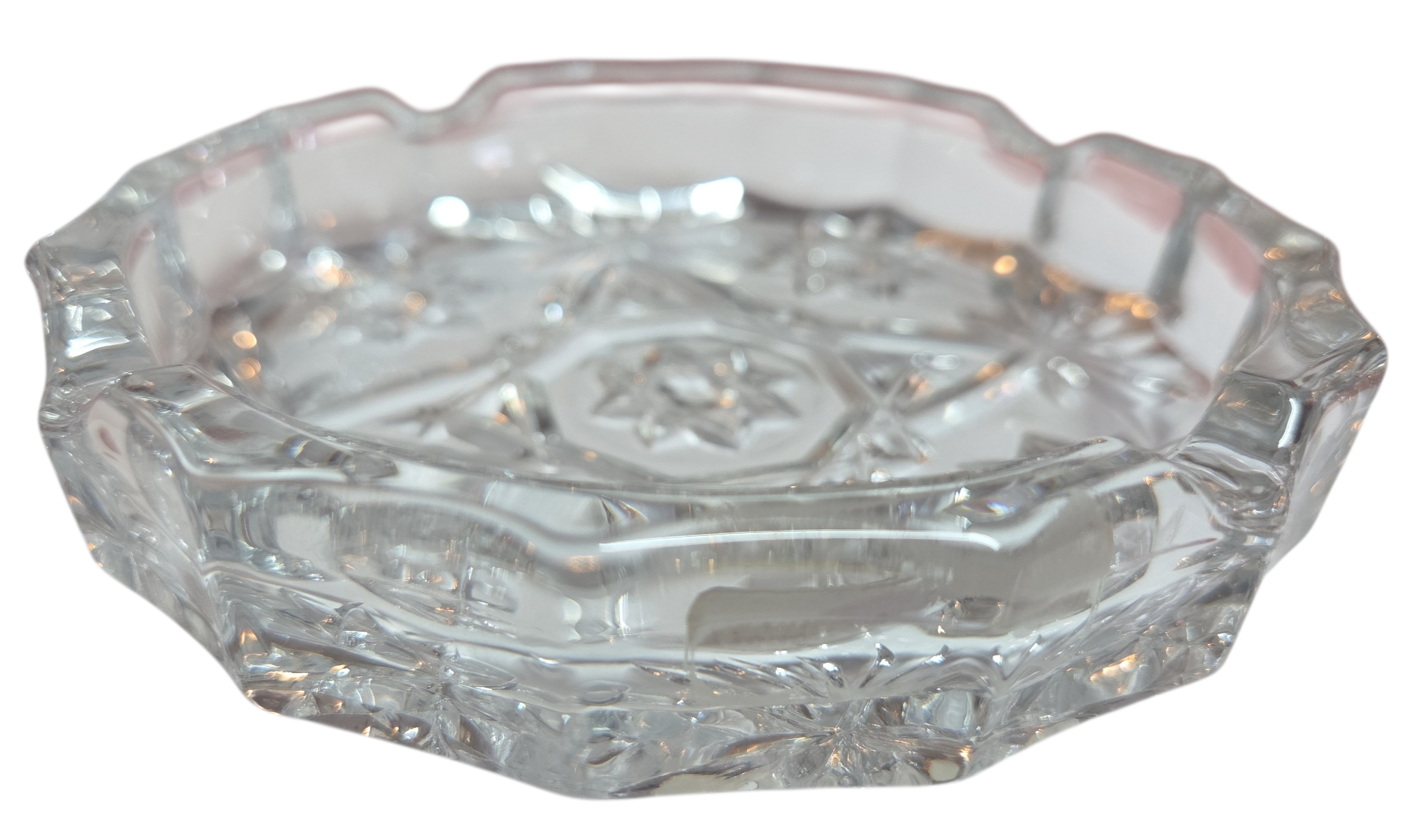 O ápice da elegância funcional. Este cinzeiro é esculpido em cristal de alta transparência, apresentando lapidações geométricas que capturam e fragmentam a luz, criando um brilho prismático em qualquer ambiente. Com um design robusto e imponente, ele possui um peso considerável que garante estabilidade e presença. Suas bordas polidas e vincos precisos para repouso não são apenas práticos, mas detalhes de uma peça que transita facilmente entre um item utilitário e um objeto de arte decorativa.