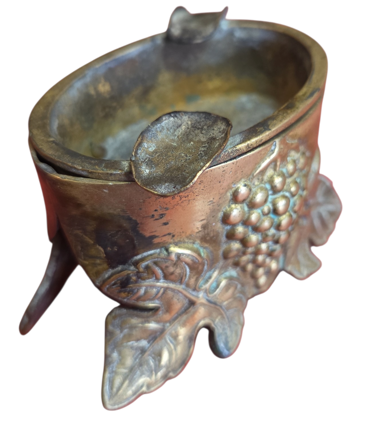Este é um cinzeiro ornamental de alta qualidade, confeccionado em bronze maciço, destacando-se pelo trabalho artesanal de fundição e entalhe. A peça é um excelente exemplo de artes aplicadas, unindo funcionalidade e estética clássica.
