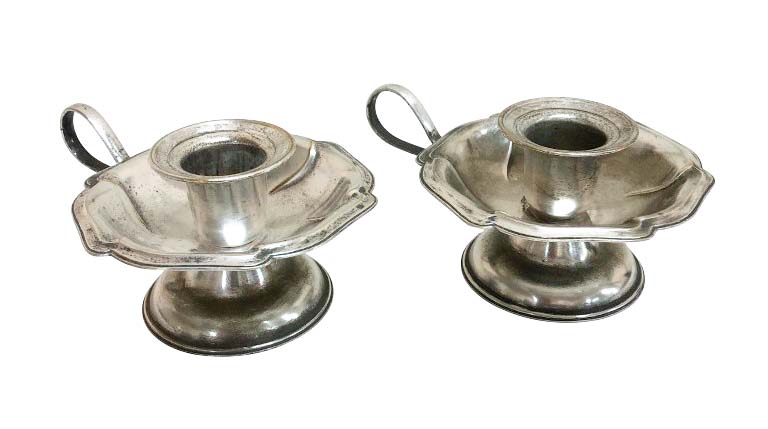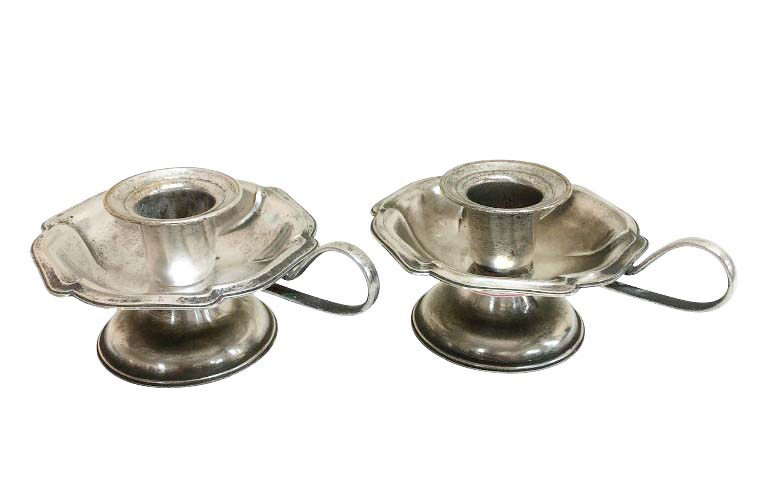 Par de palmatórias em metal espessurado a prata, borda ondulada em alto relevo e pega lateral. Da manufatura EBERLE.