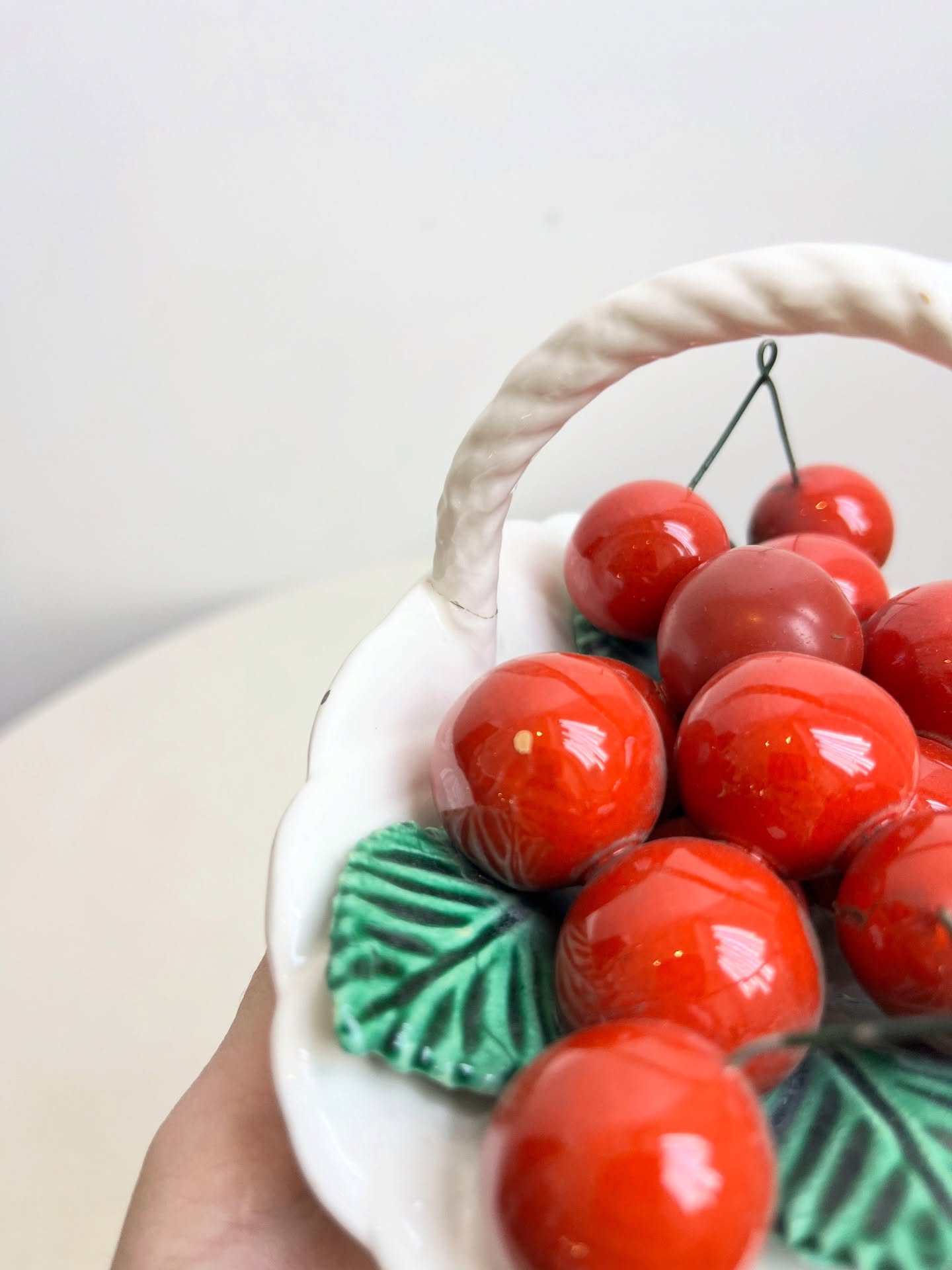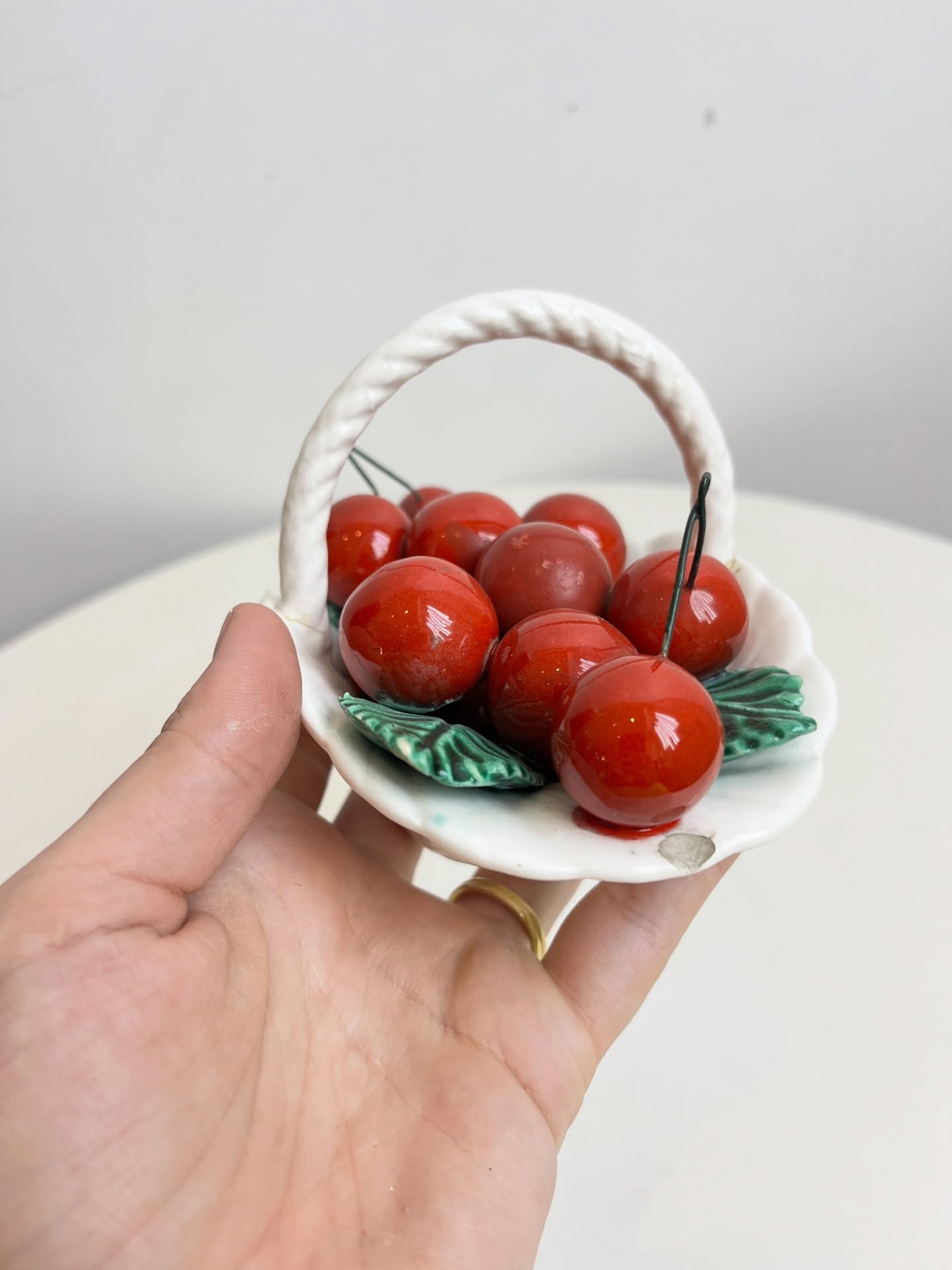 Cestinho de frutas em cerâmica. Possui pequenos restauros e lascados como mostrado nas fotos.
