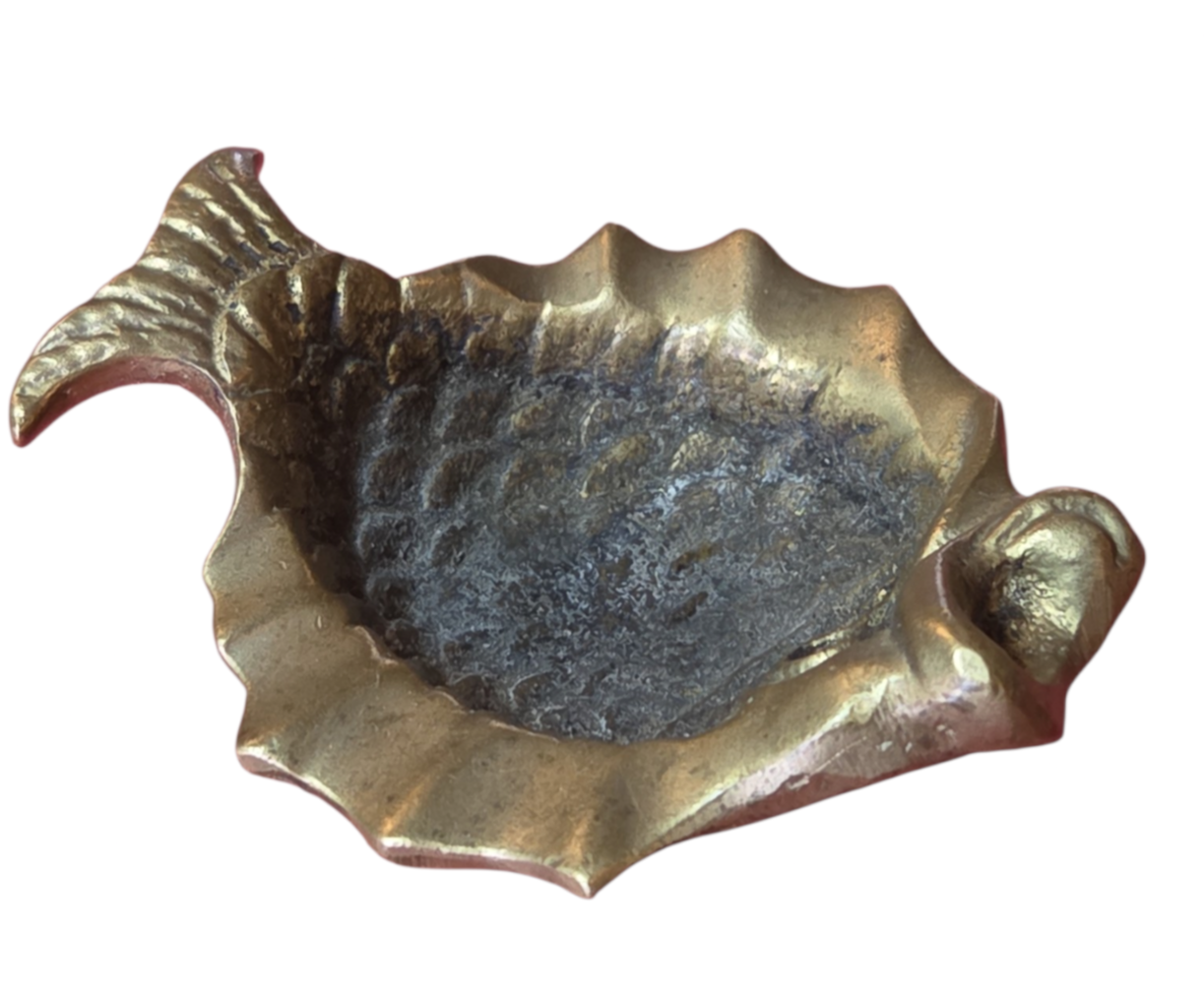 Lindo cinzeiro em formato de peixe, confeccionado em metal maciço bronze com pátina original do tempo.