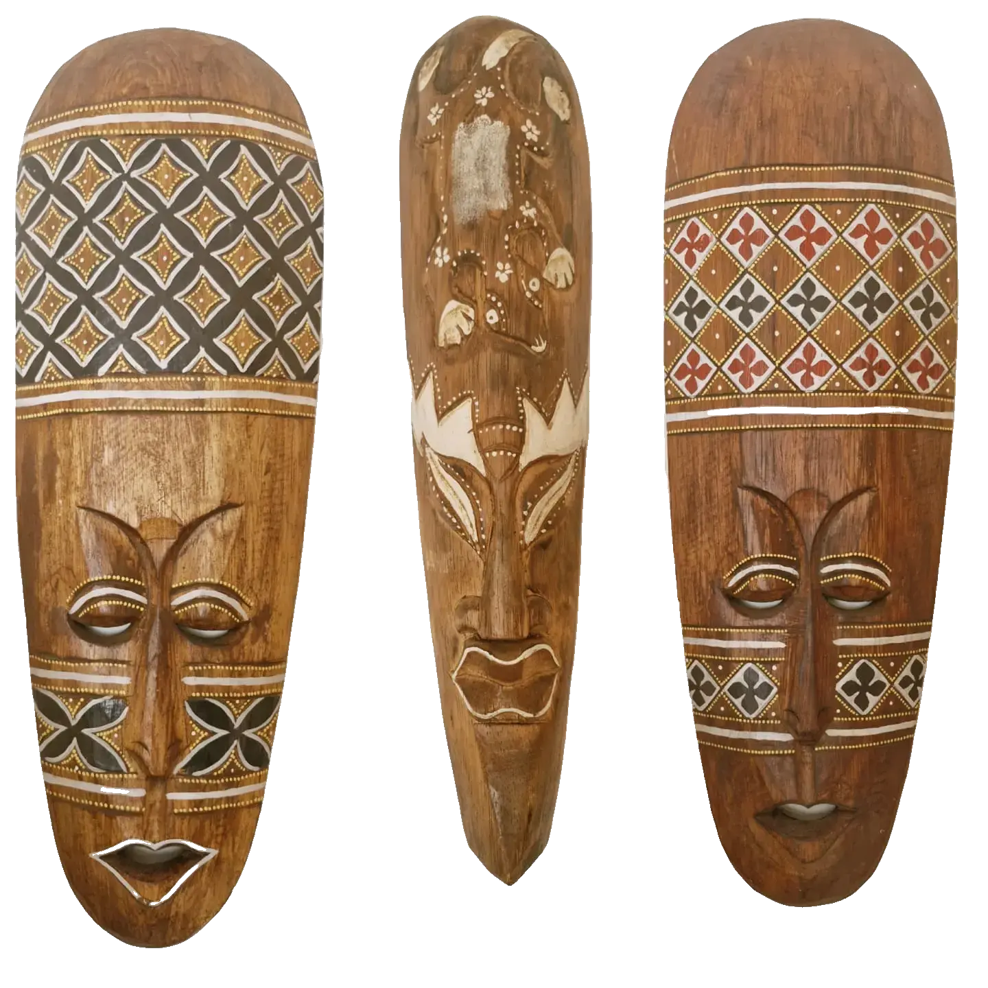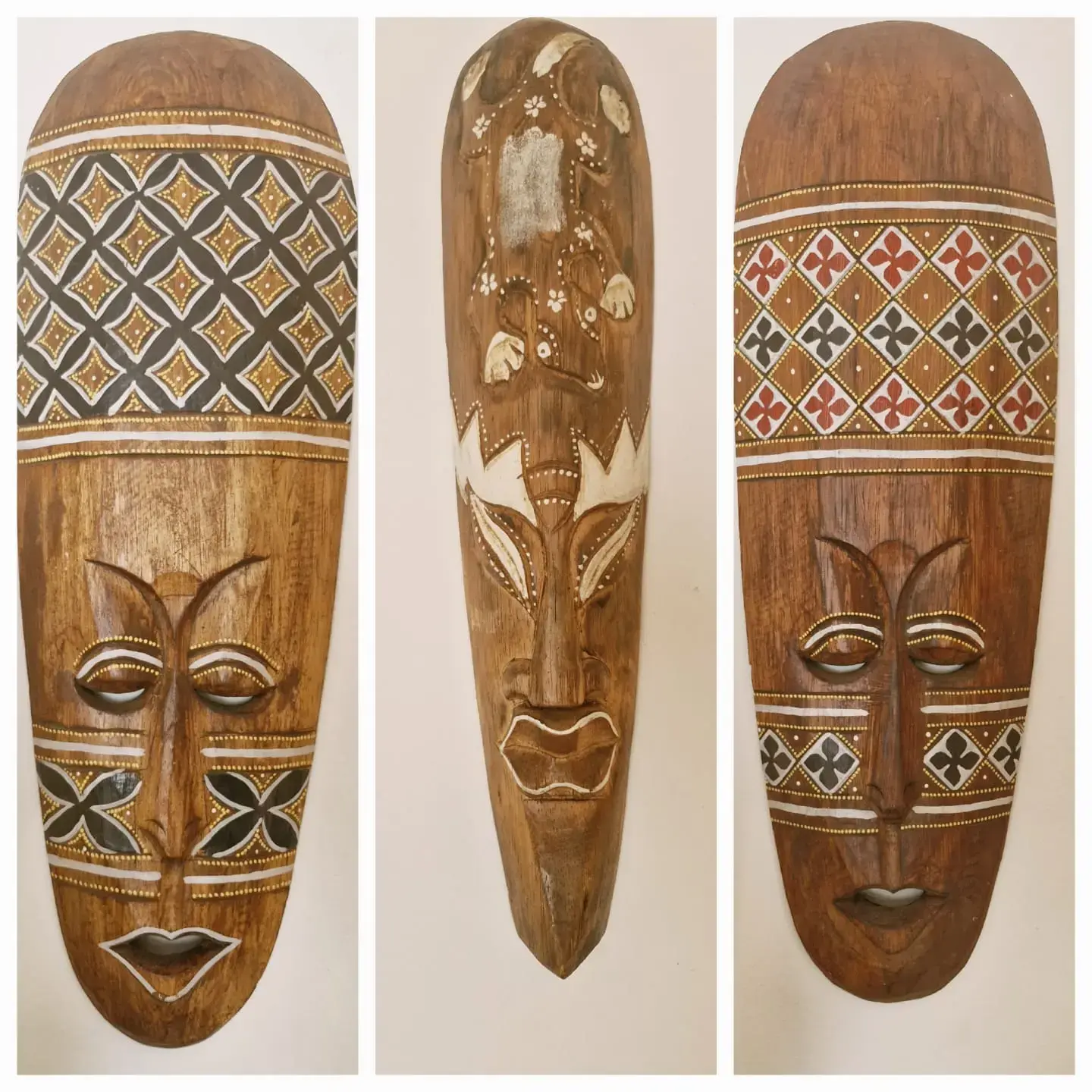 Trio de máscaras de Bali. As máscaras de Bali misturam espiritualidade, ancestralidade, história e arte.