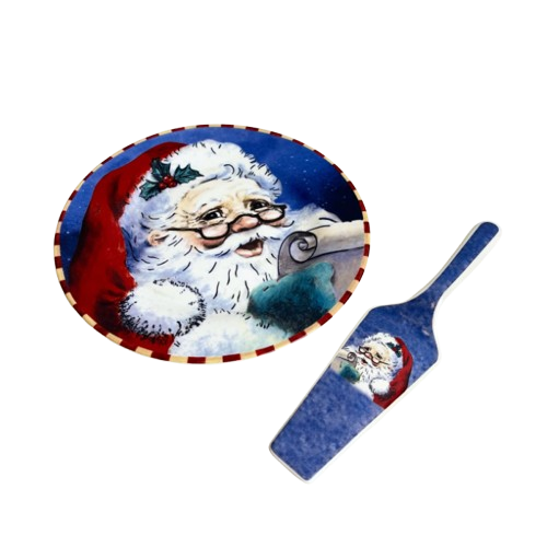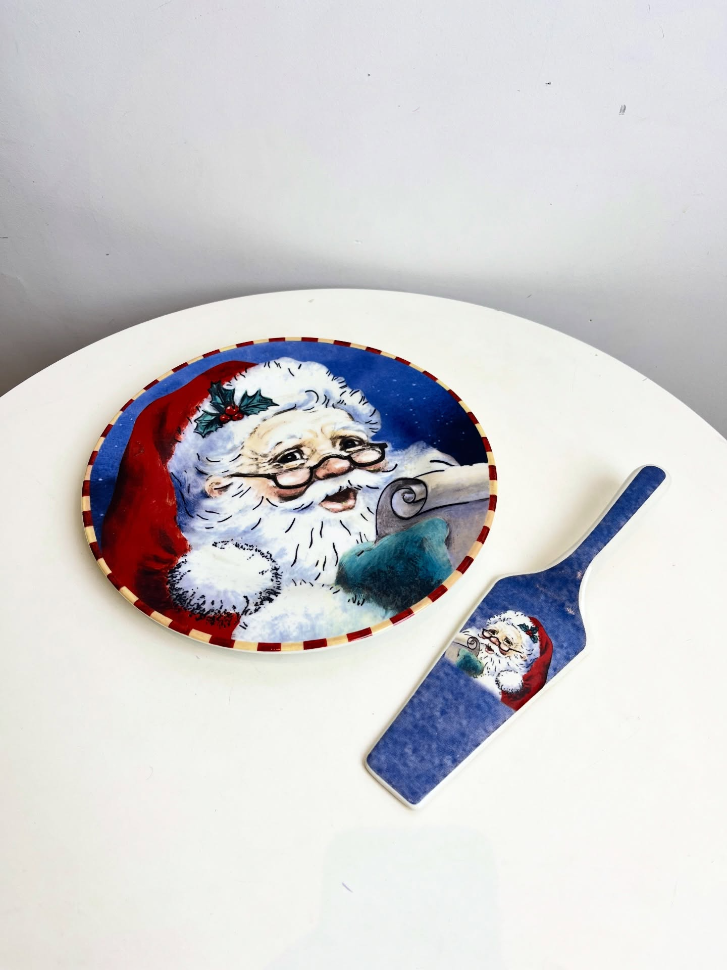 Prato de bolo e espátula estampados em porcelana. Perfeito estado.
