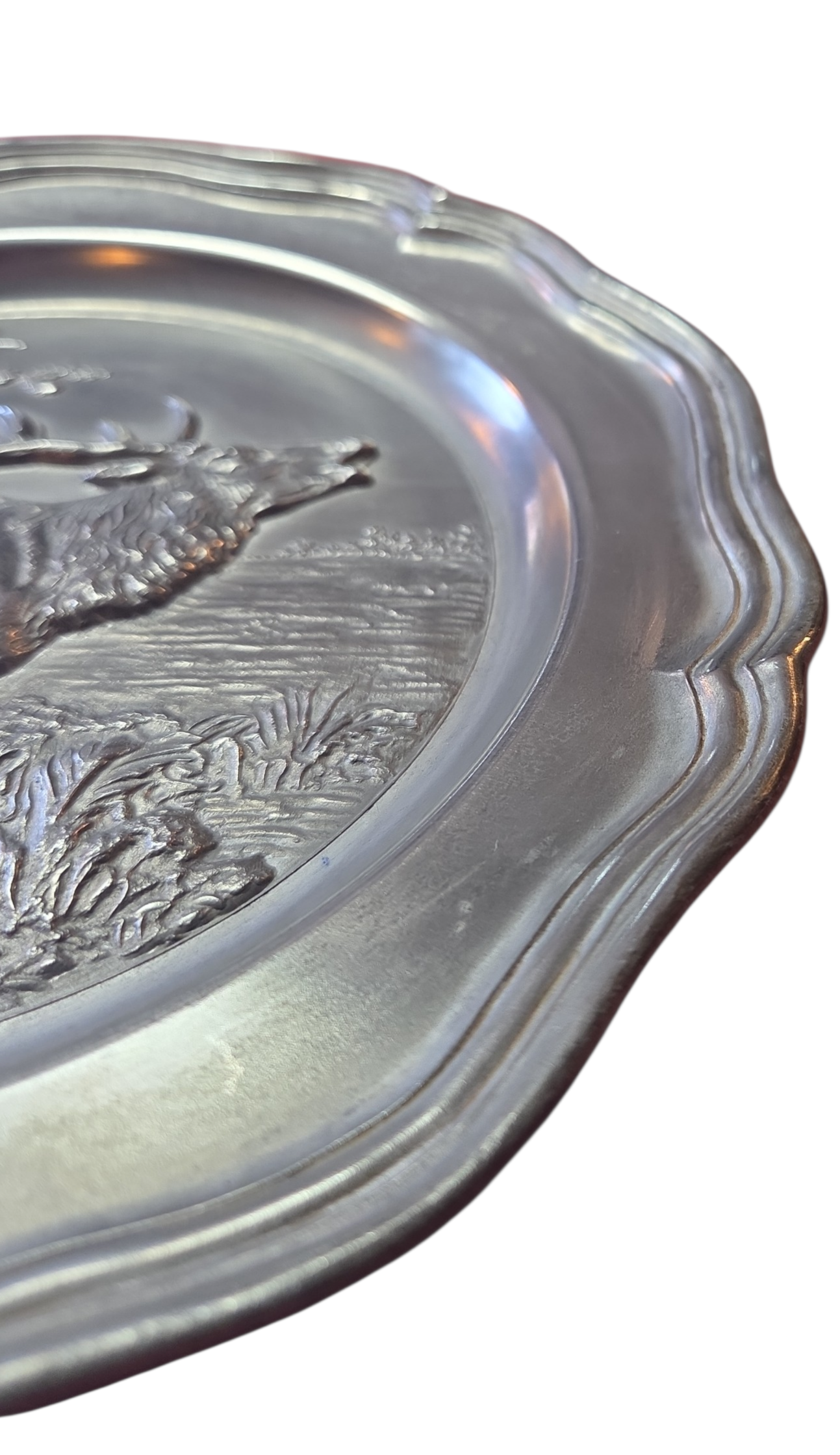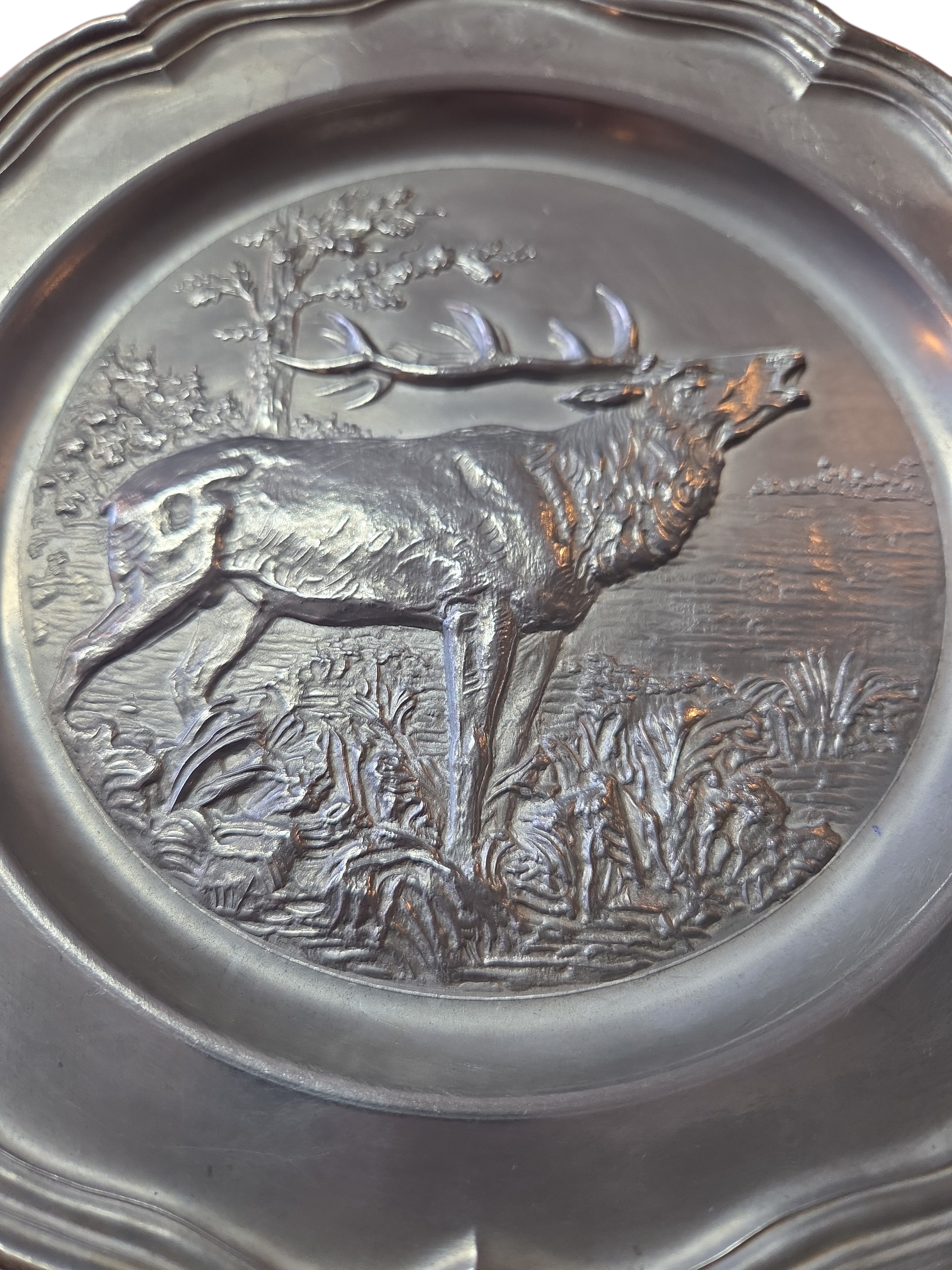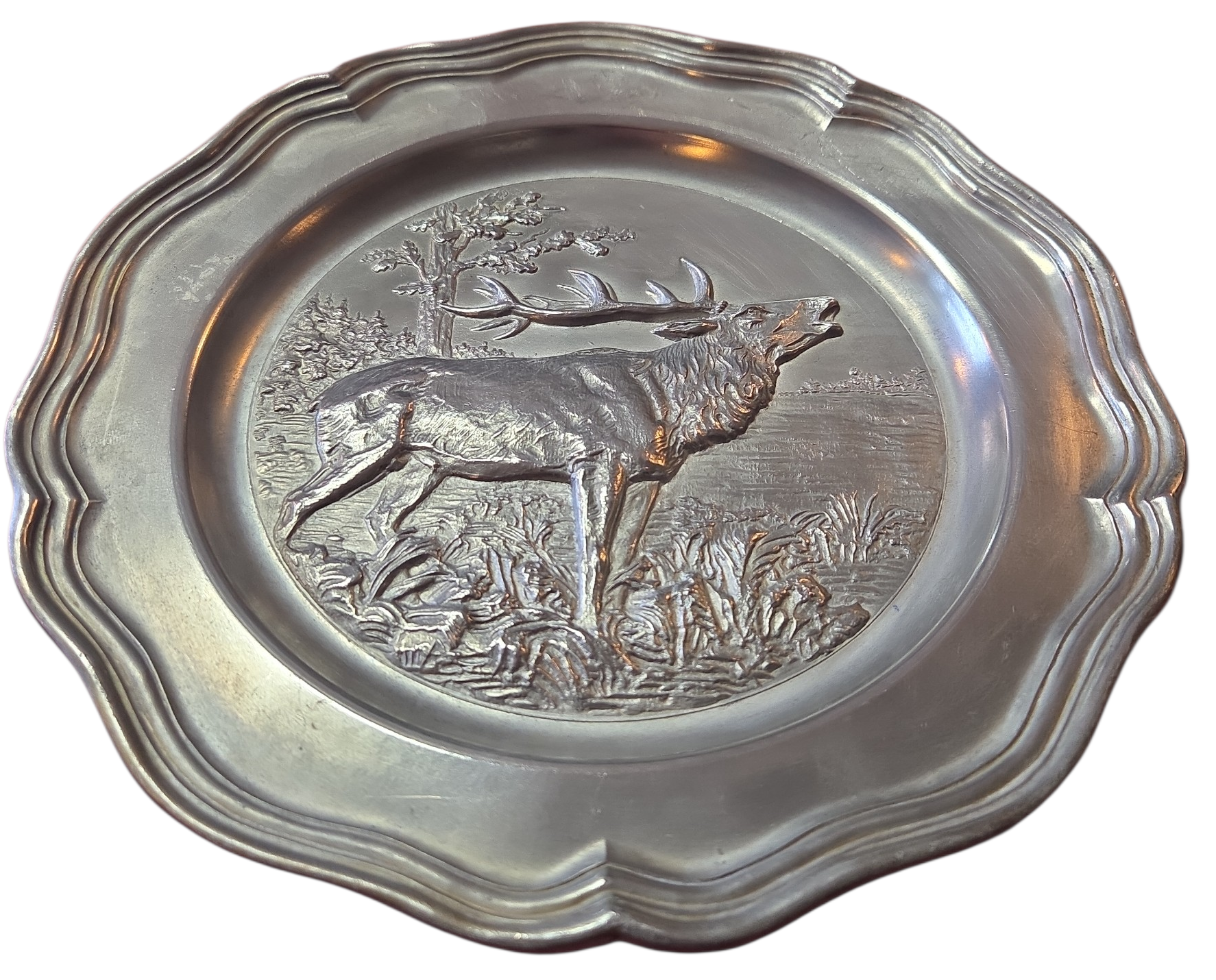 Adicione um toque de história alemã à sua decoração com este prato em estanho puro (Rein Zinn). Esta peça vintage destaca-se pelo acabamento fosco característico e pela resistência do material, apresentando o selo de autenticidade gravado no verso. Com design clássico e bordas trabalhadas, é perfeito tanto para exposição em suportes de parede quanto para compor mesas de jantar com temática rústica ou medieval. Uma peça robusta que atravessa gerações sem perder o brilho prateado profundo.