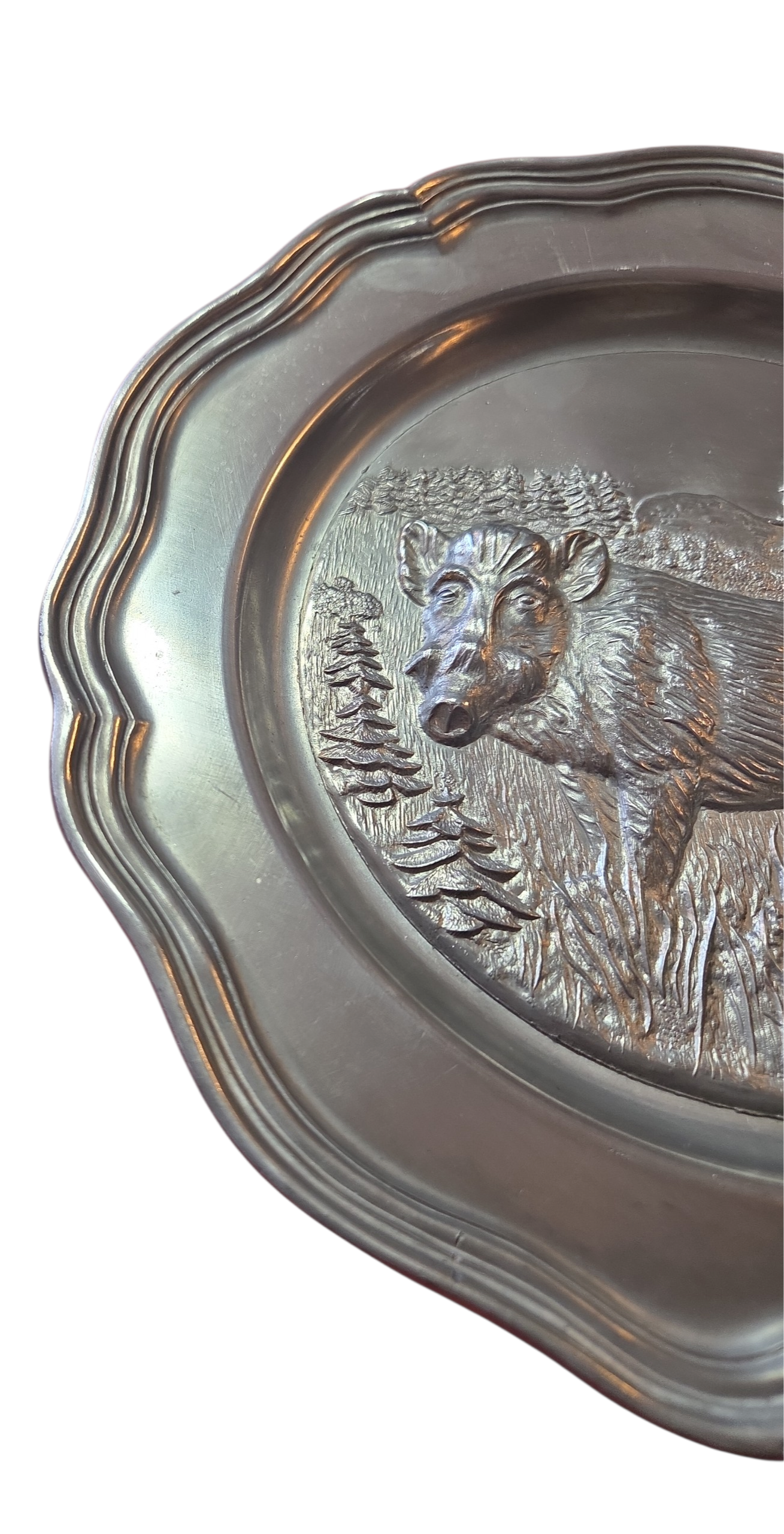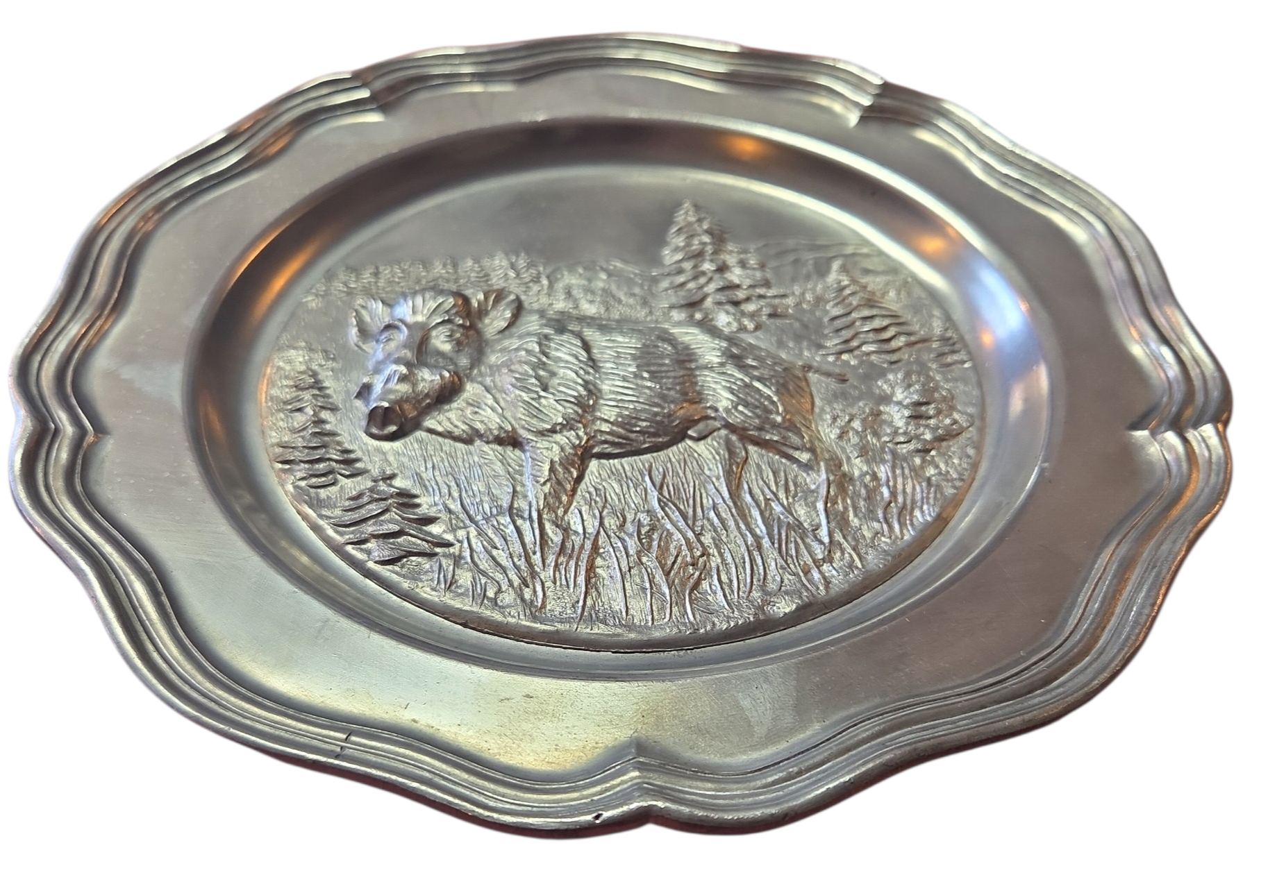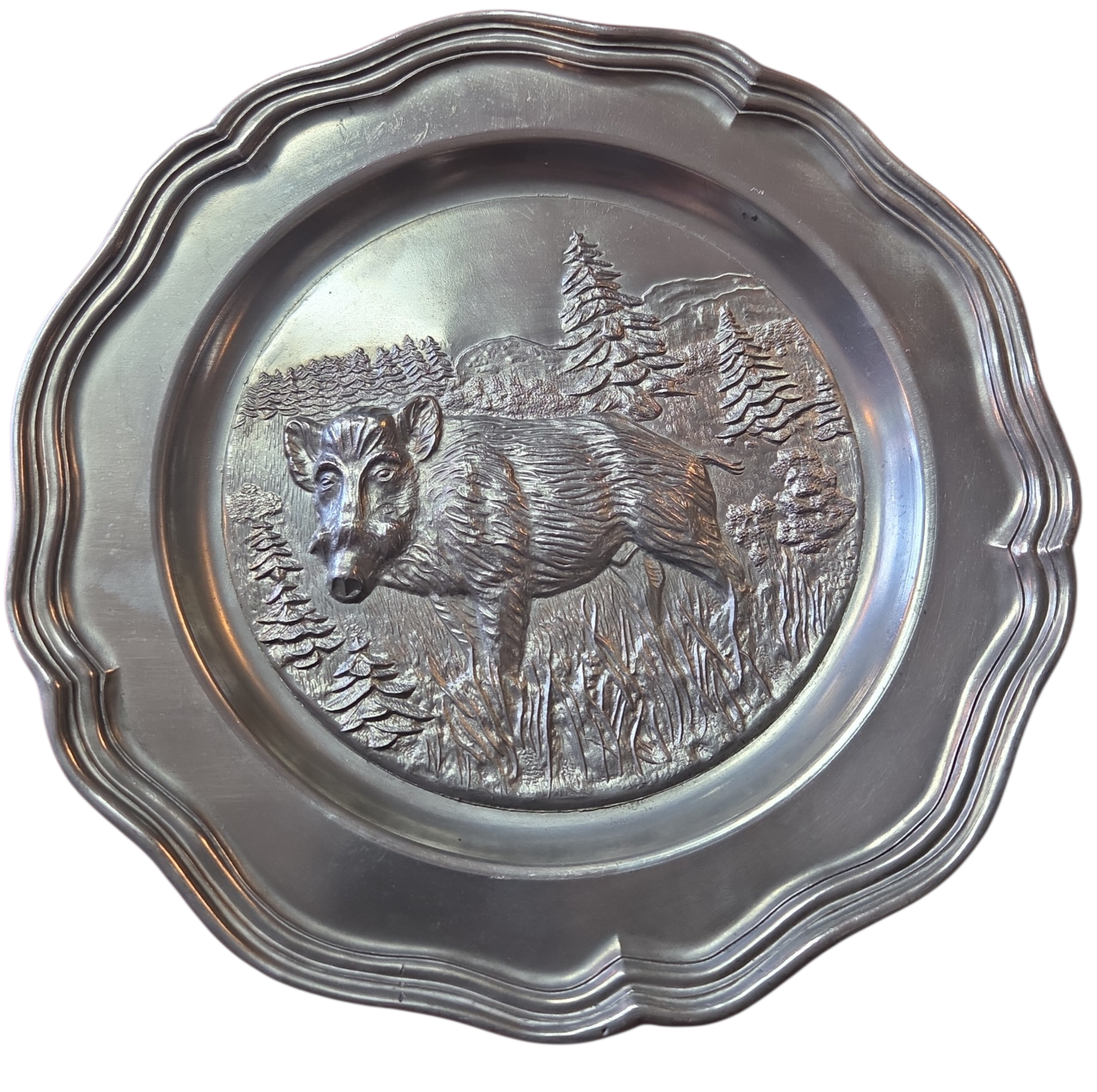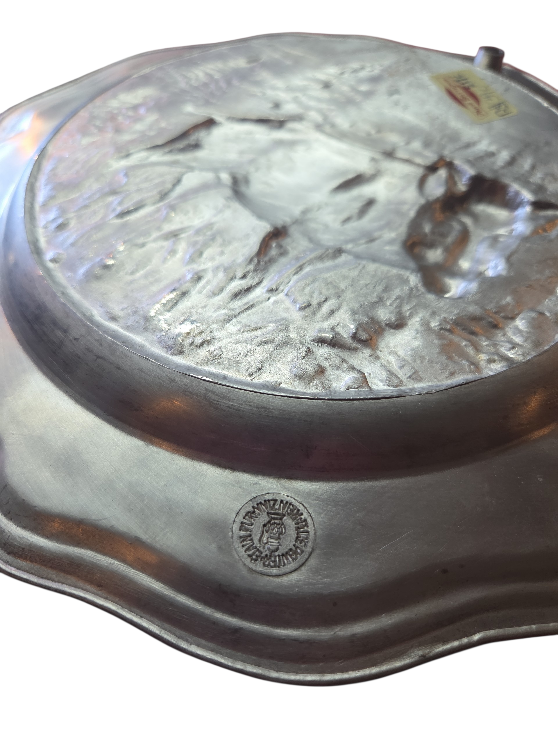Adicione um toque de história alemã à sua decoração com este prato em estanho puro (Rein Zinn). Esta peça vintage destaca-se pelo acabamento fosco característico e pela resistência do material, apresentando o selo de autenticidade gravado no verso. Com design clássico e bordas trabalhadas, é perfeito tanto para exposição em suportes de parede quanto para compor mesas de jantar com temática rústica ou medieval. Uma peça robusta que atravessa gerações sem perder o brilho prateado profundo.