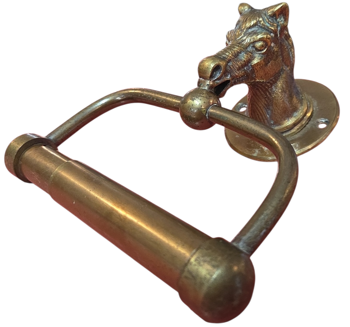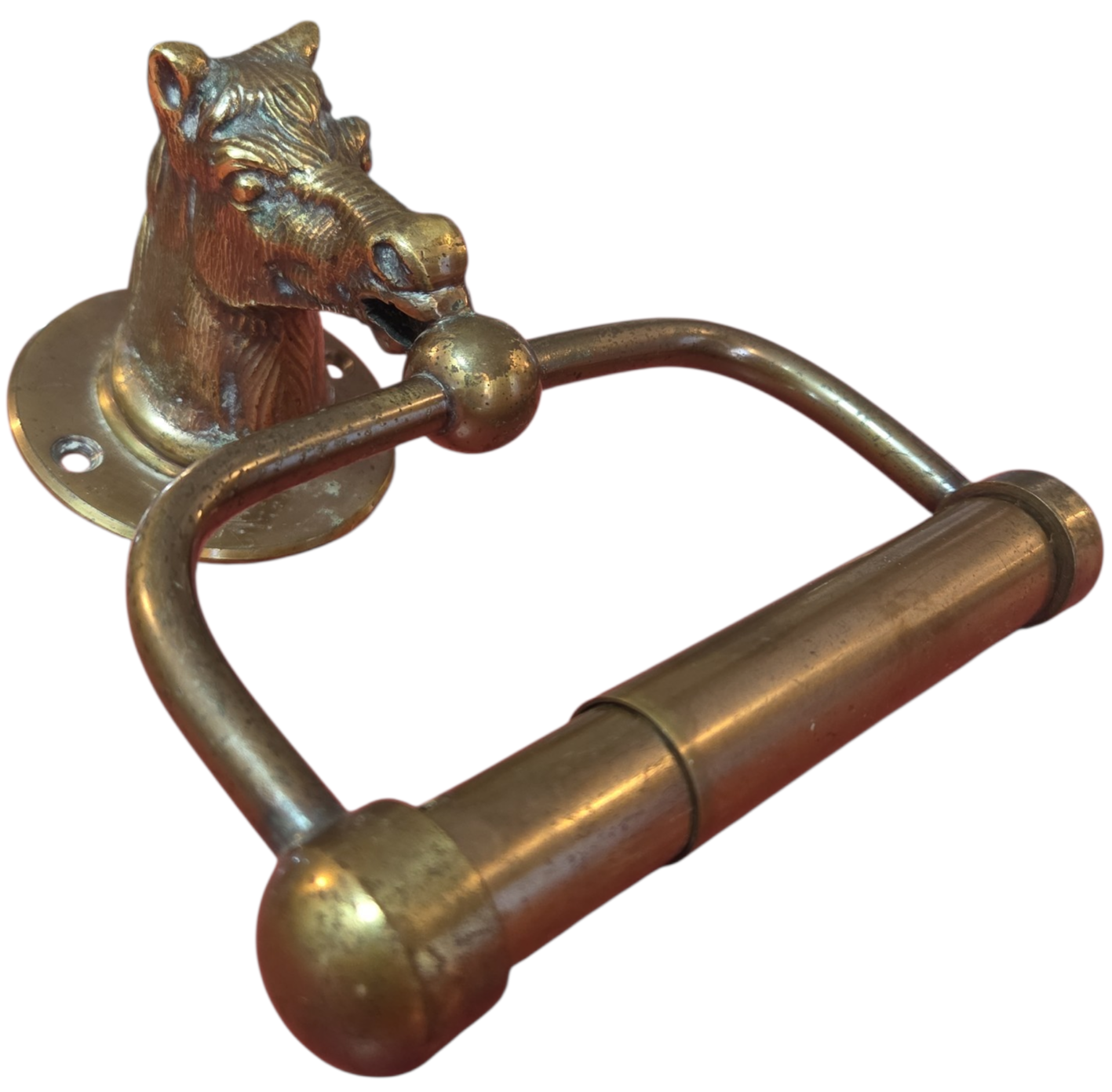 Apresentamos um item de decoração funcional e cheio de personalidade: um suporte para papel higiênico confeccionado inteiramente em bronze maciço. A peça se destaca pelo seu suporte de parede em formato de cabeça de cavalo com acabamento detalhado, conferindo um ar clássico e aristocrático ao ambiente.