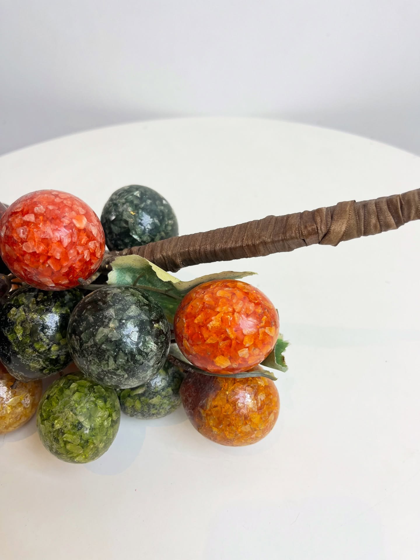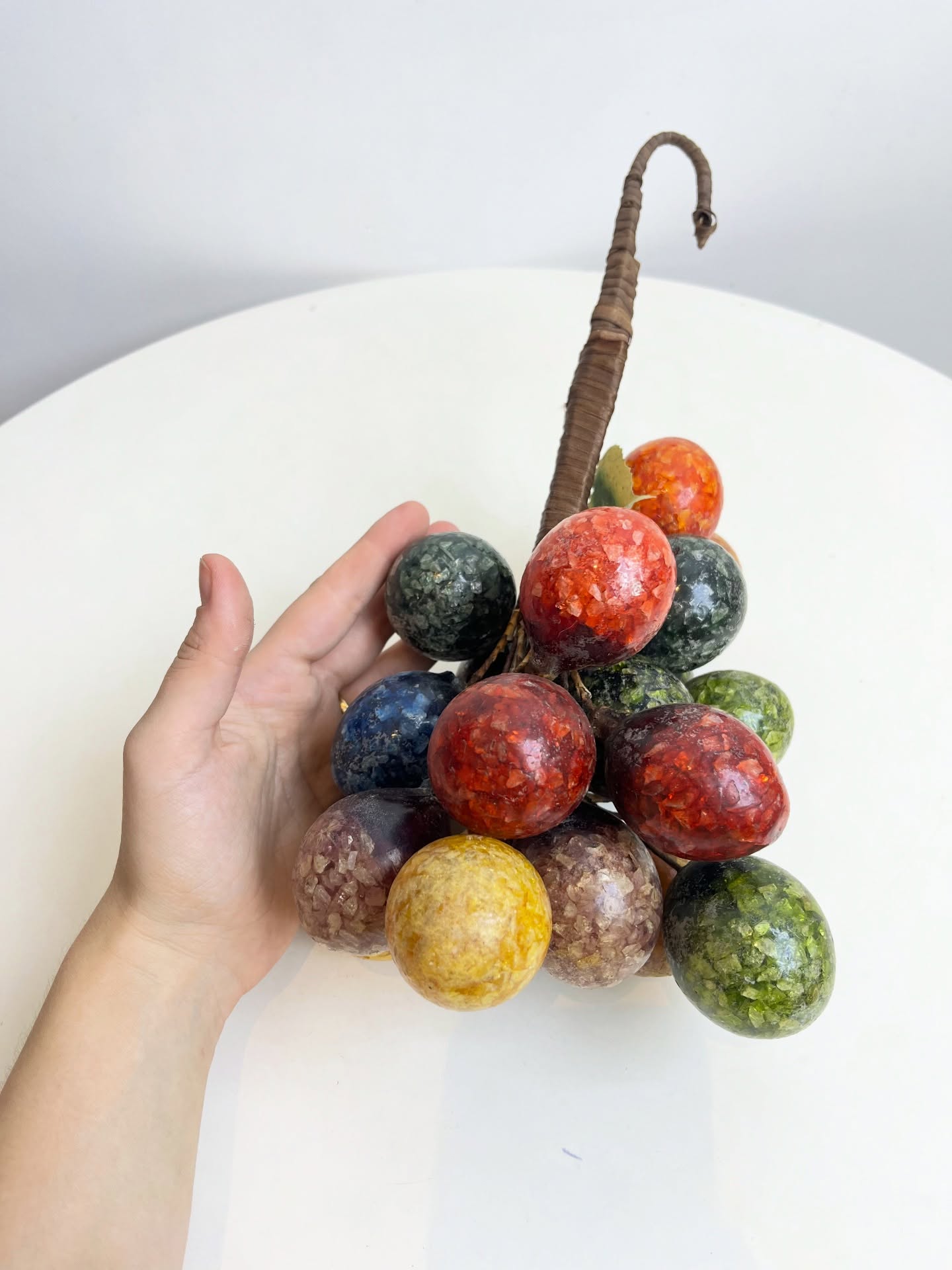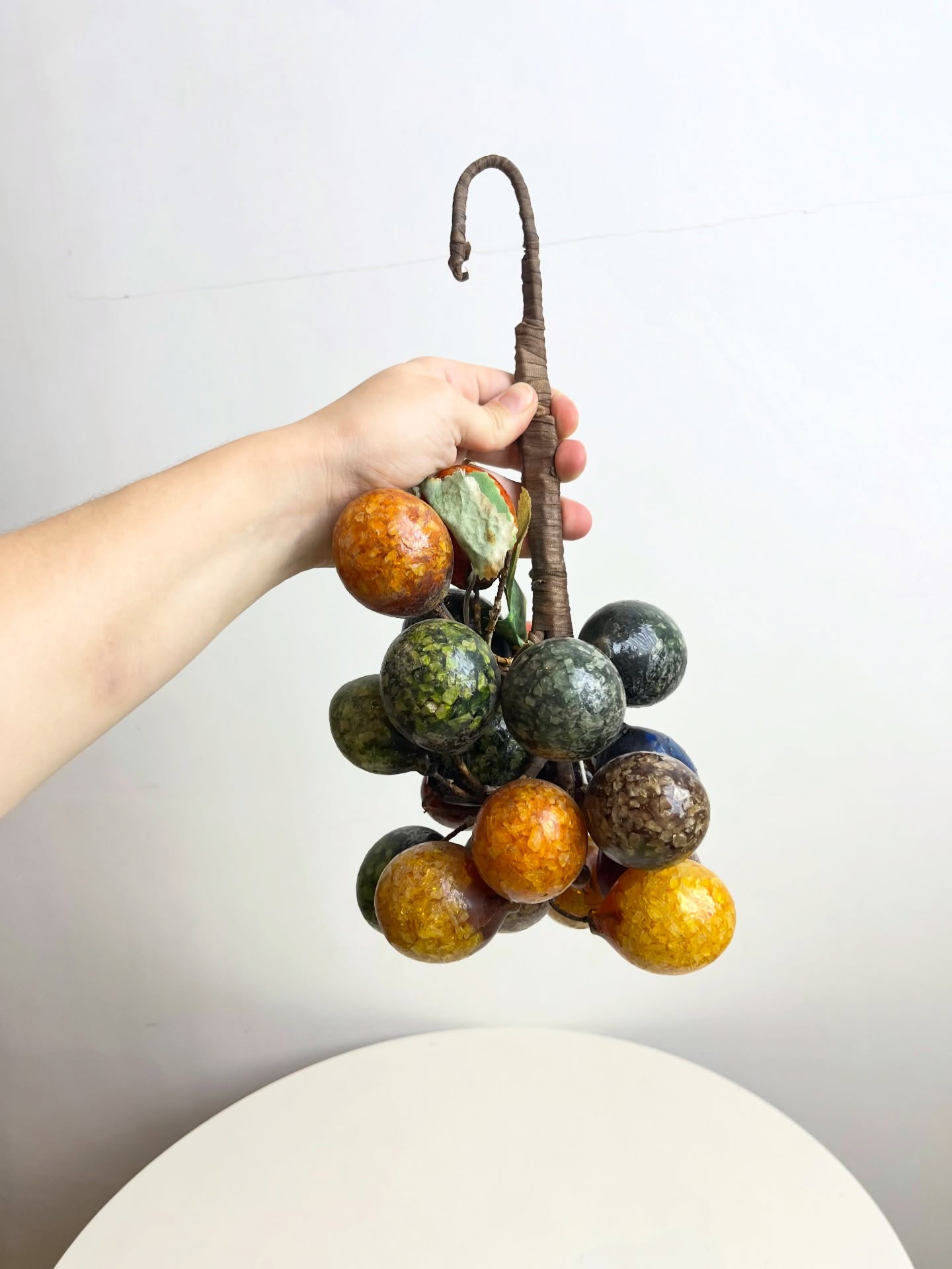 Grande cacho de frutas em resina e metal para pendurar. Possui marcas do tempo e uso como nas fotos.