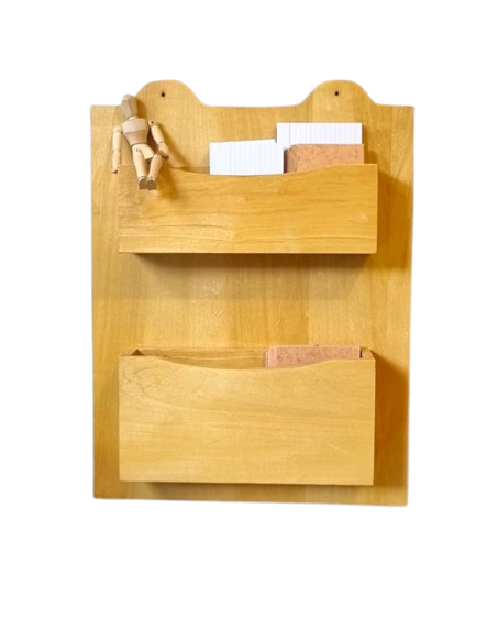Puro charme: organizador de escritório de parede em madeira maciça clara.