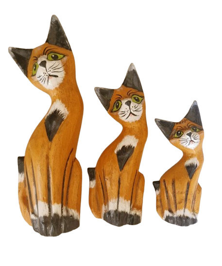 Essas peças são icônicas do artesanato de Bali, na Indonésia. Lá, os gatos são símbolos de independência, proteção e sabedoria, sendo muito utilizados para atrair boas energias para o ambiente doméstico.