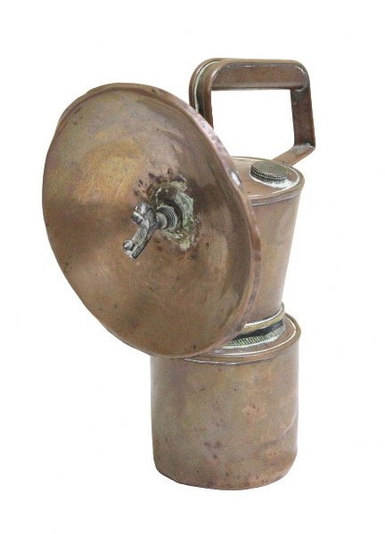 Antiga lanterna lampião carbureto de estação executada em metal cobreado de ótima fundição.